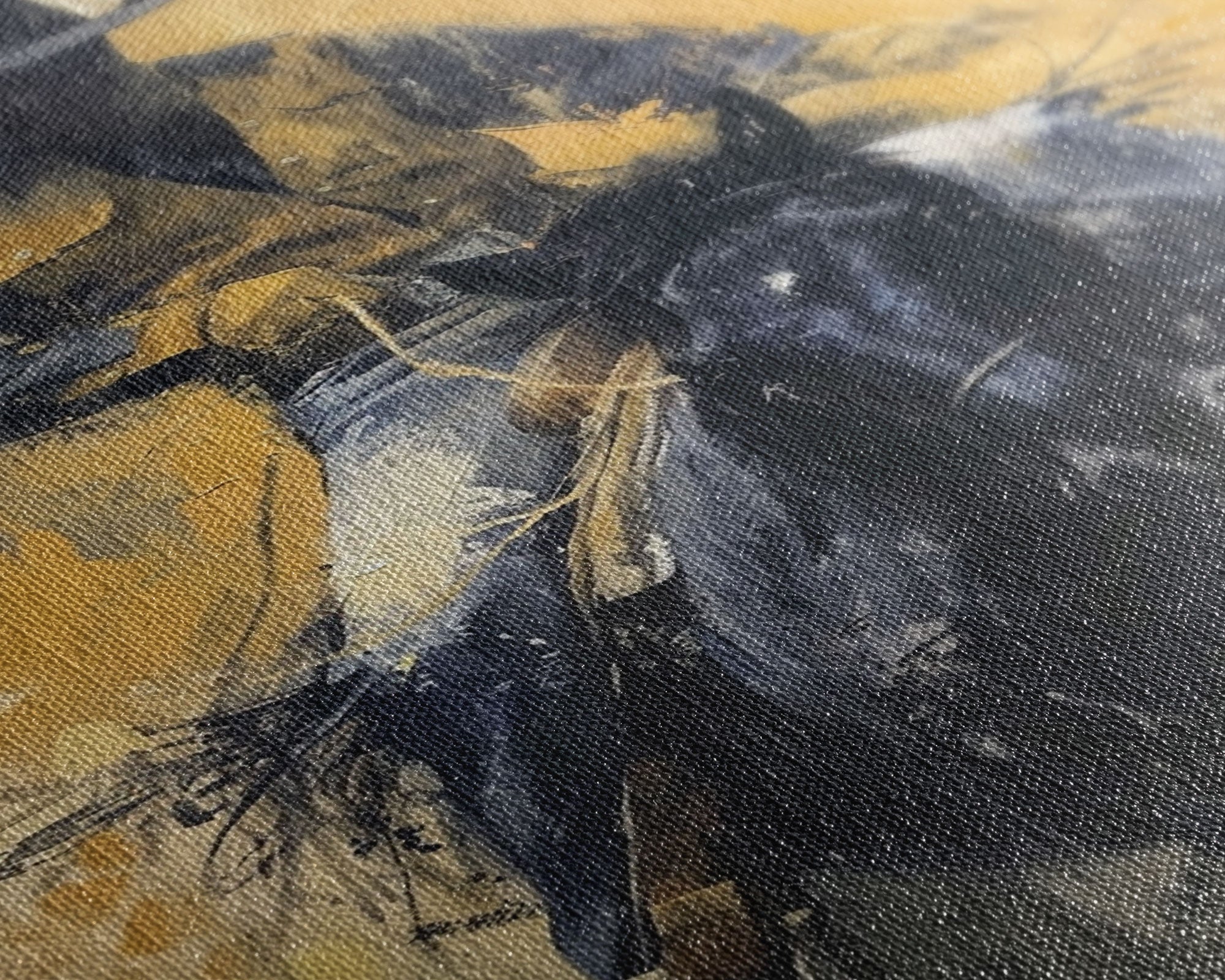 Most of our canvases are made in the USA, with the exception of canvases ordered with the light oak unstained frames, and any large canvases (24x48, 30x60, 16x48 and 20x60) ordered WITH a frame. These are temporarily made in and shipped from Europe, while we try to find a more consistent supplier in the USA.
