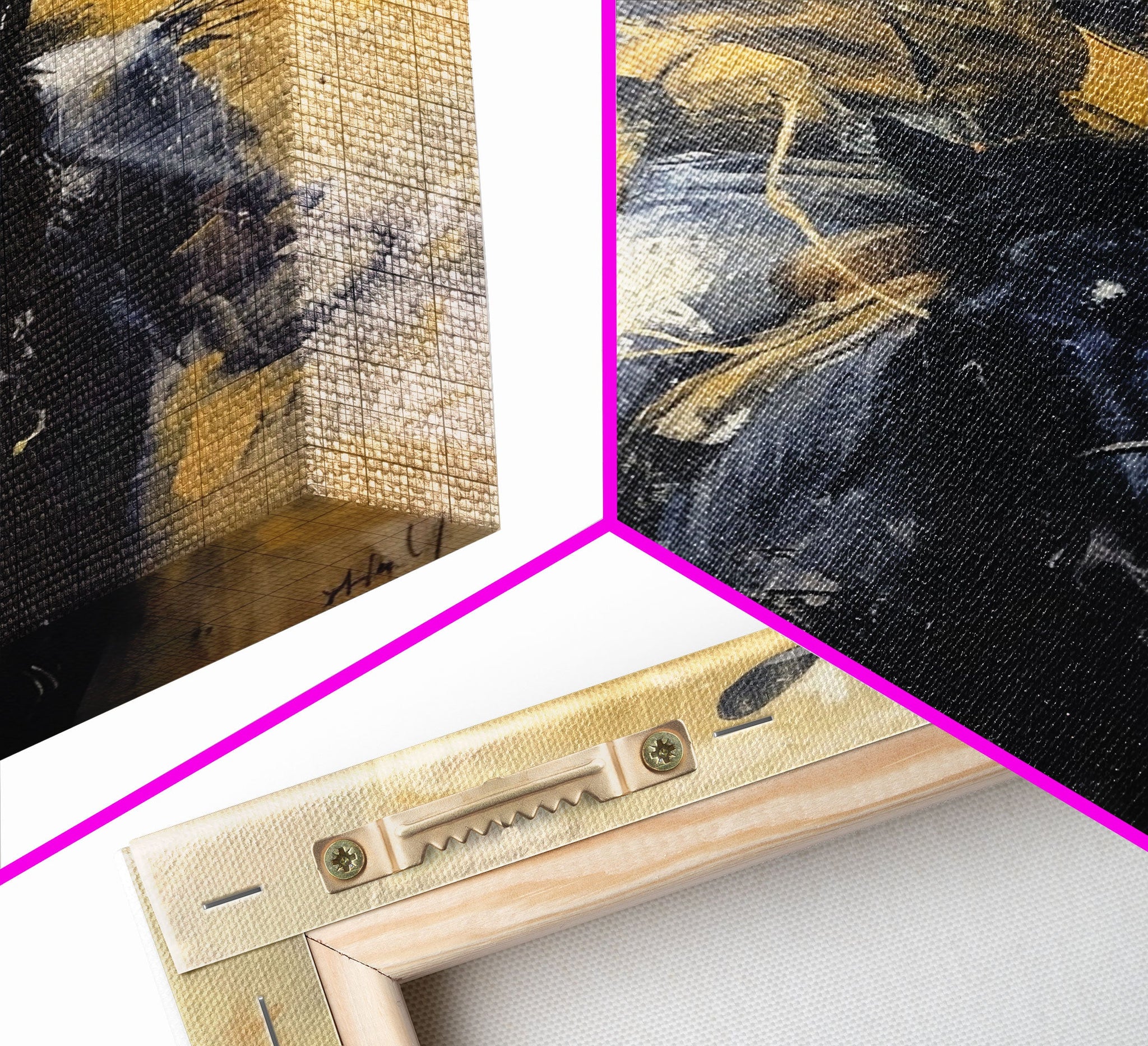 *SHIPPING: Every canvas is carefully wrapped in bubble wrap and foam corner protectors, and shipped fully assembled and ready to hang with sawtooth hangers in a flat box. All you need is a hammer!