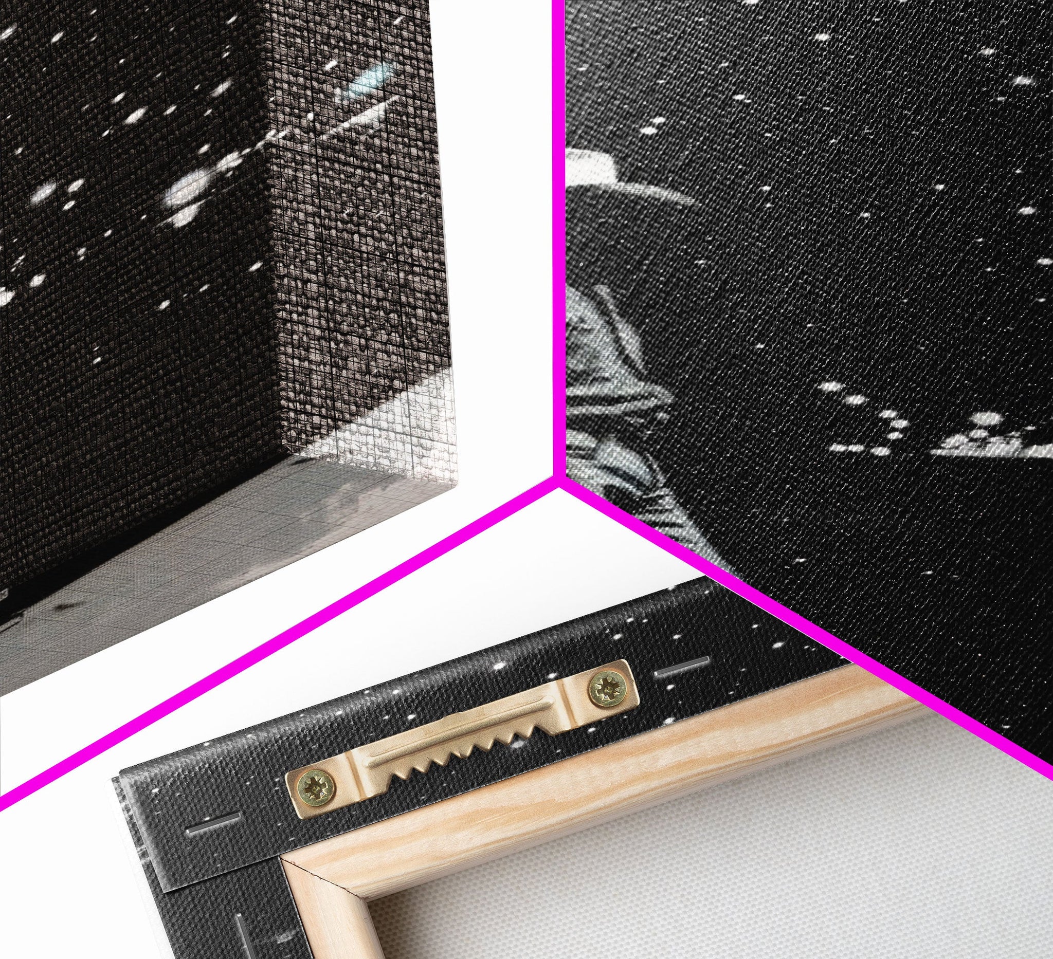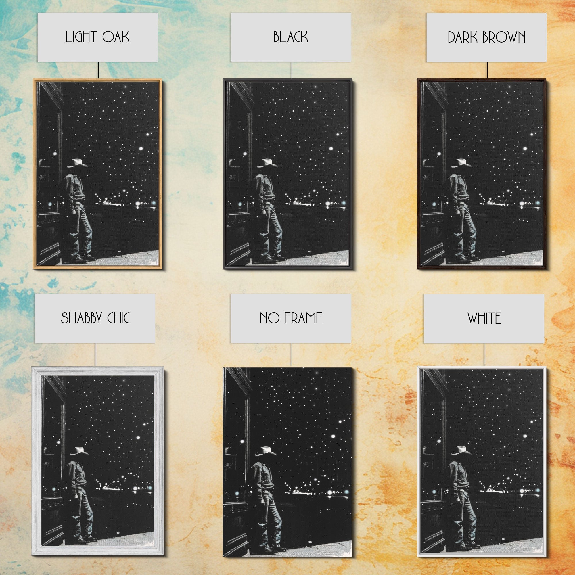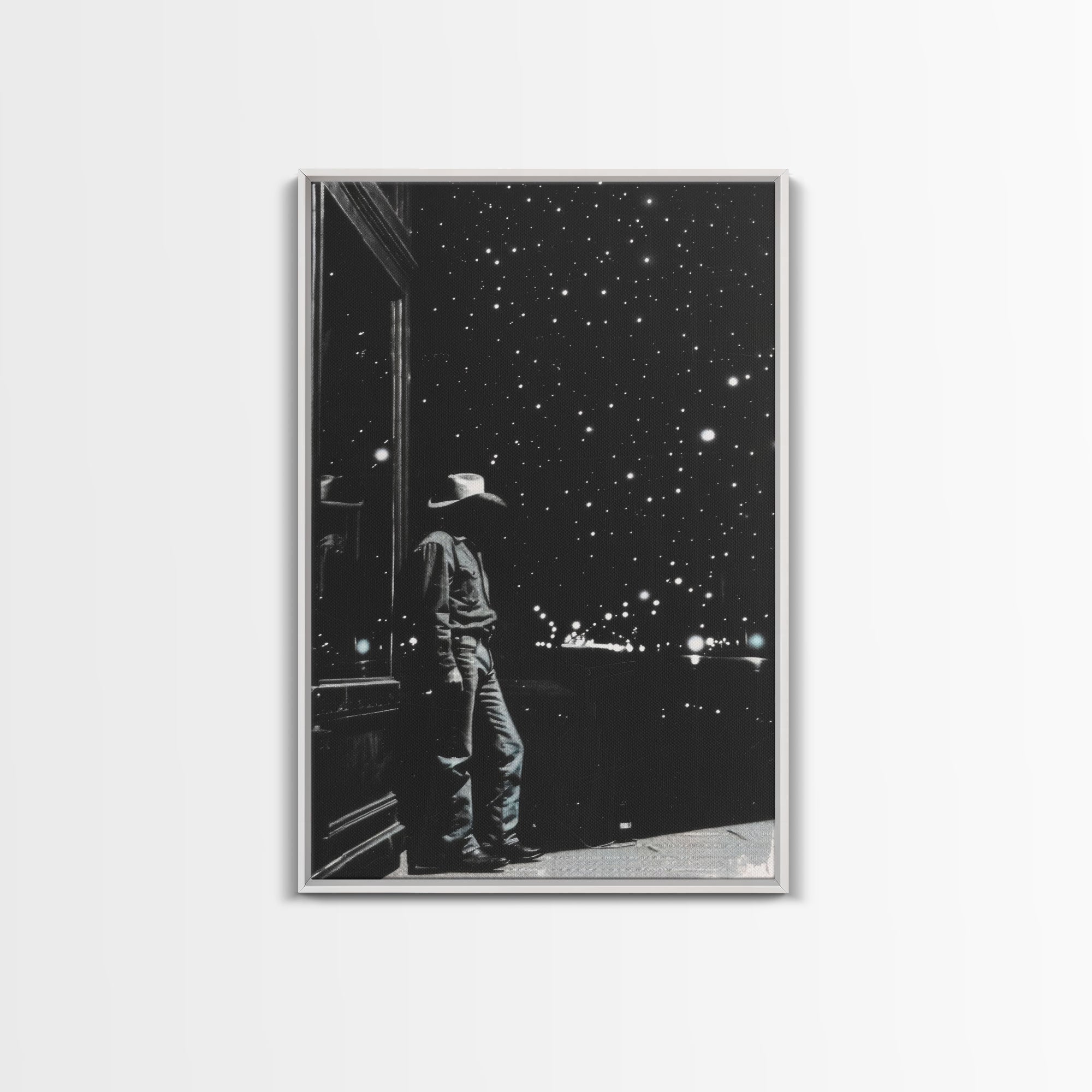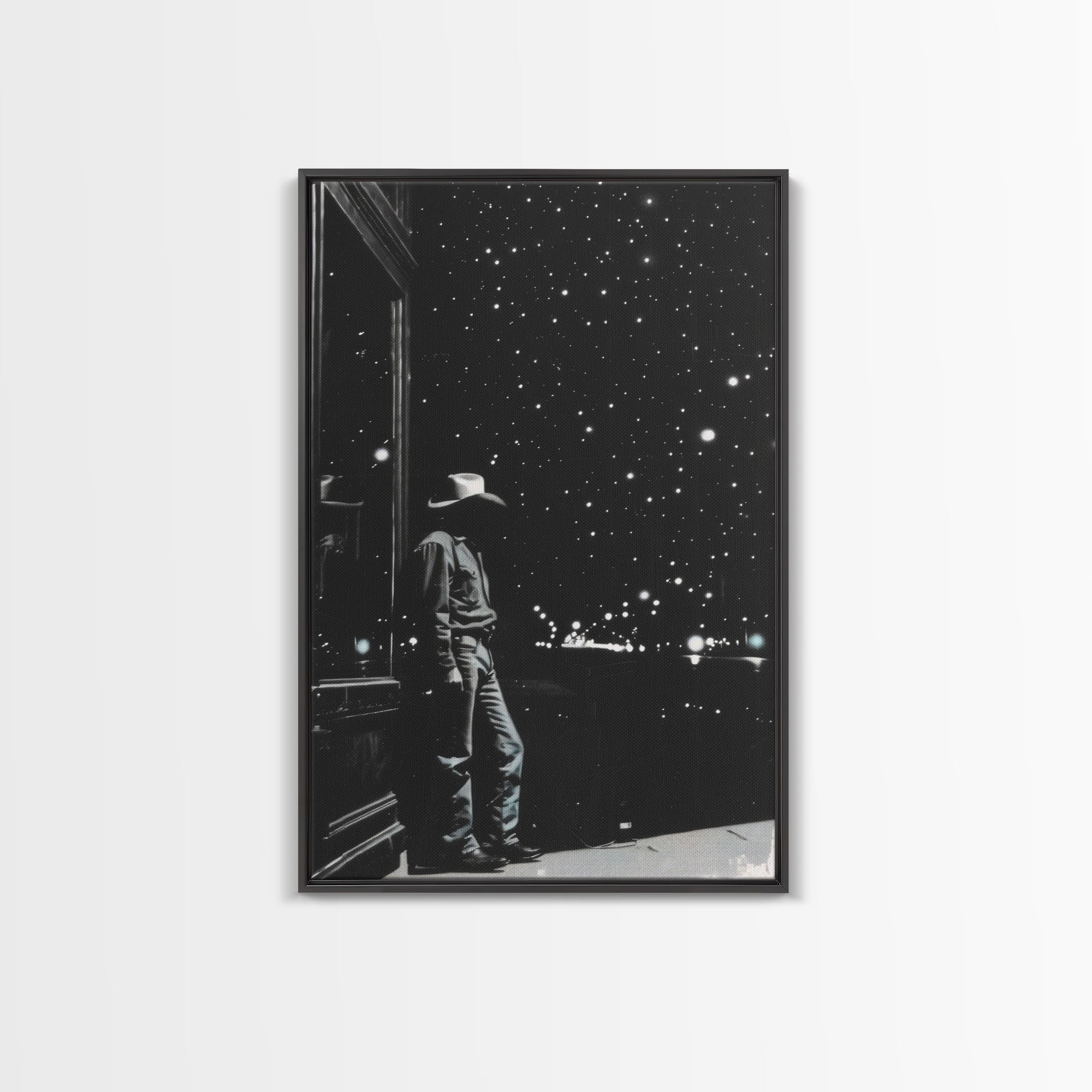 Cowboy in Starry Night Print - Framed Canvas Wall Art, Rustic Western Decor, Starry Sky Cowboy Artwork for Living Room, Night Sky Art
