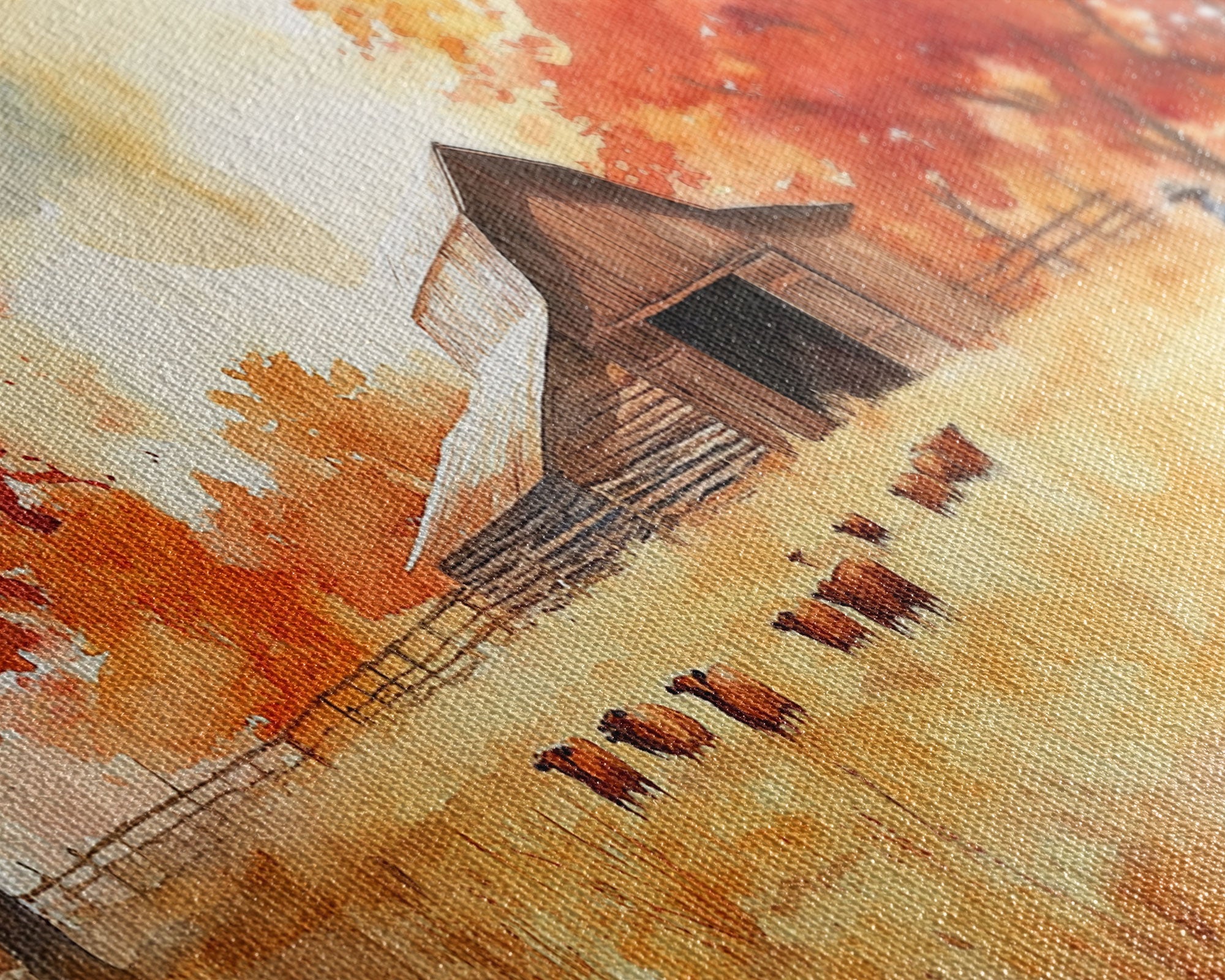 Cowboy on horse in autumn farm scene, framed canvas print, rustic fall decor, farmhouse home decor, cozy autumn landscape art, fall wall art