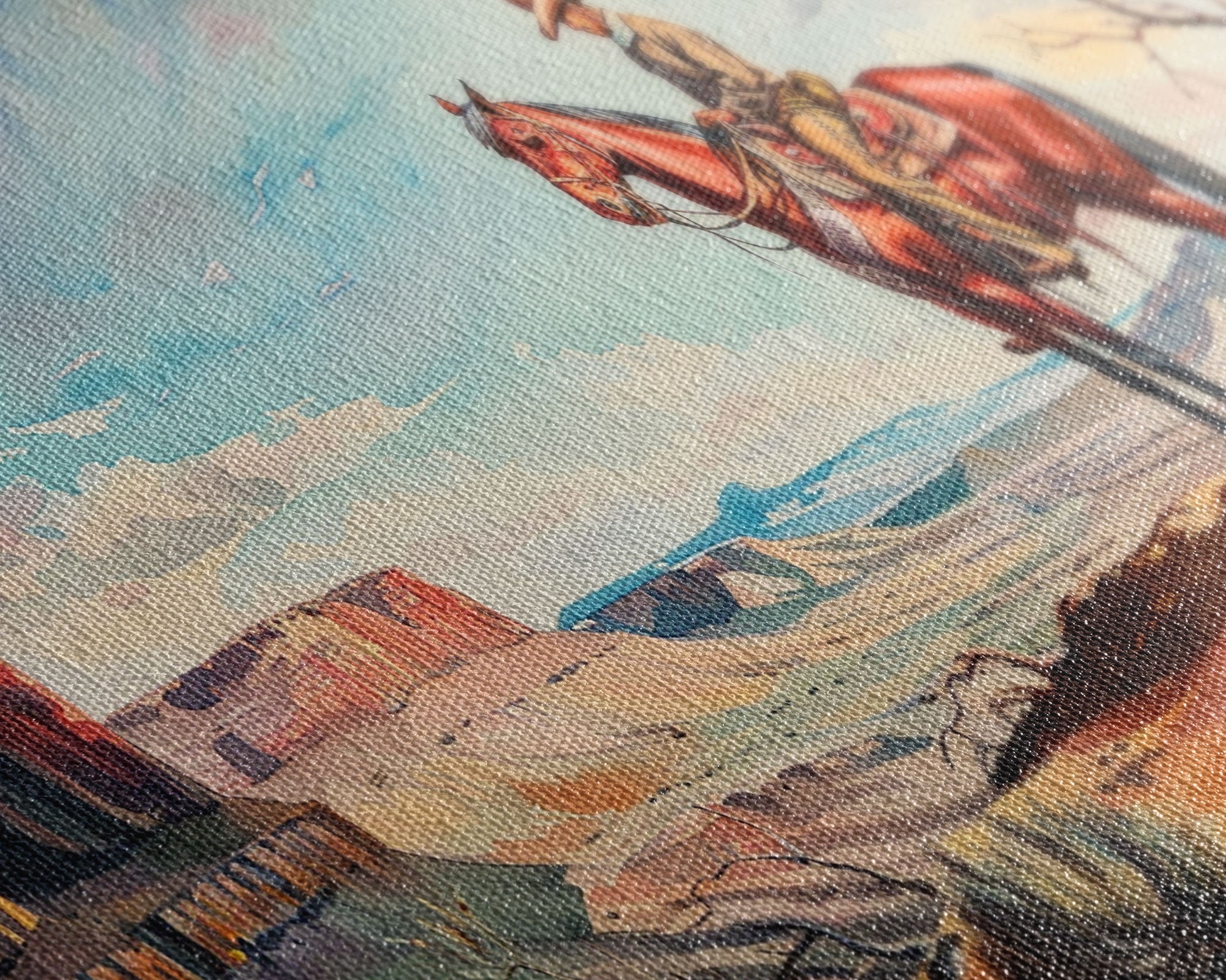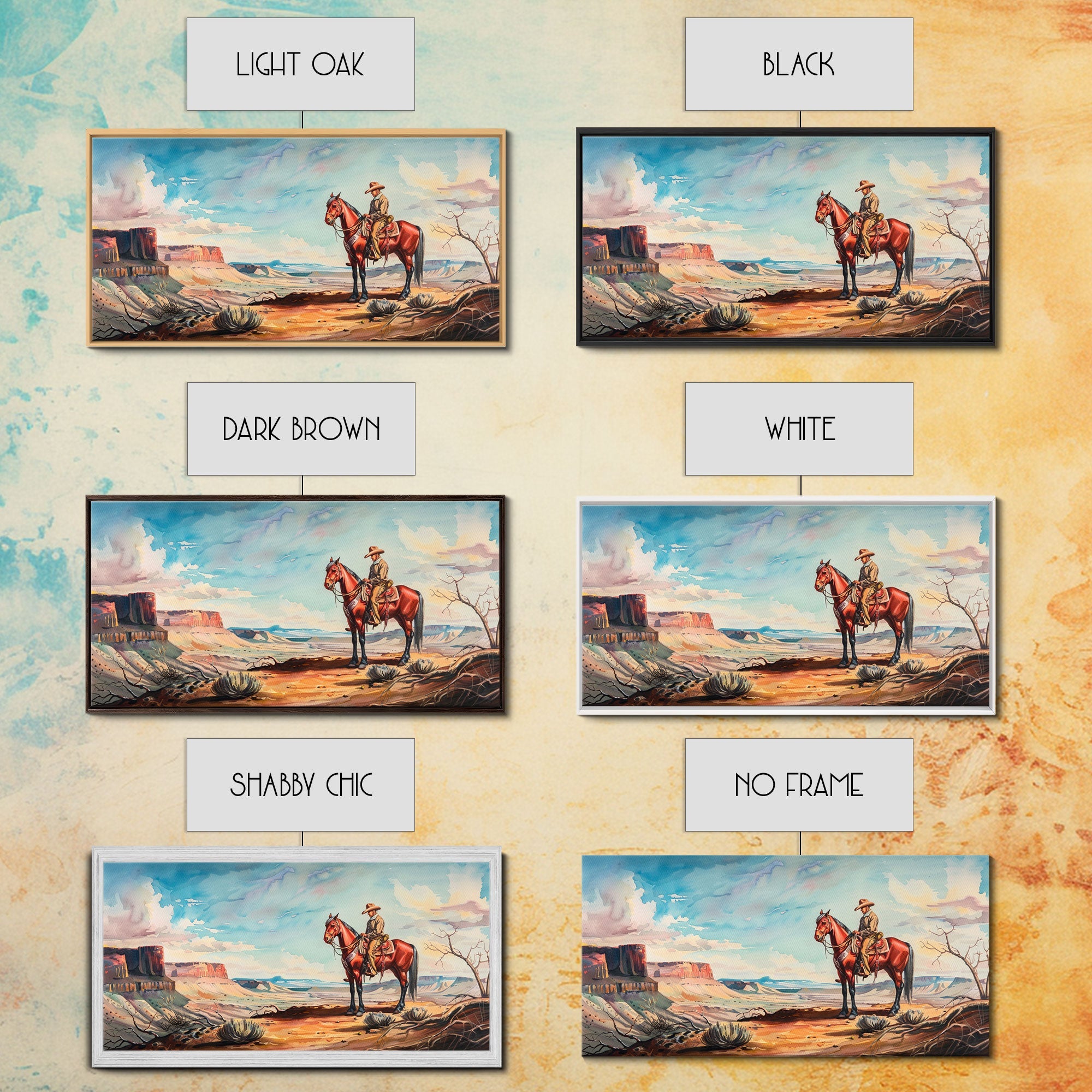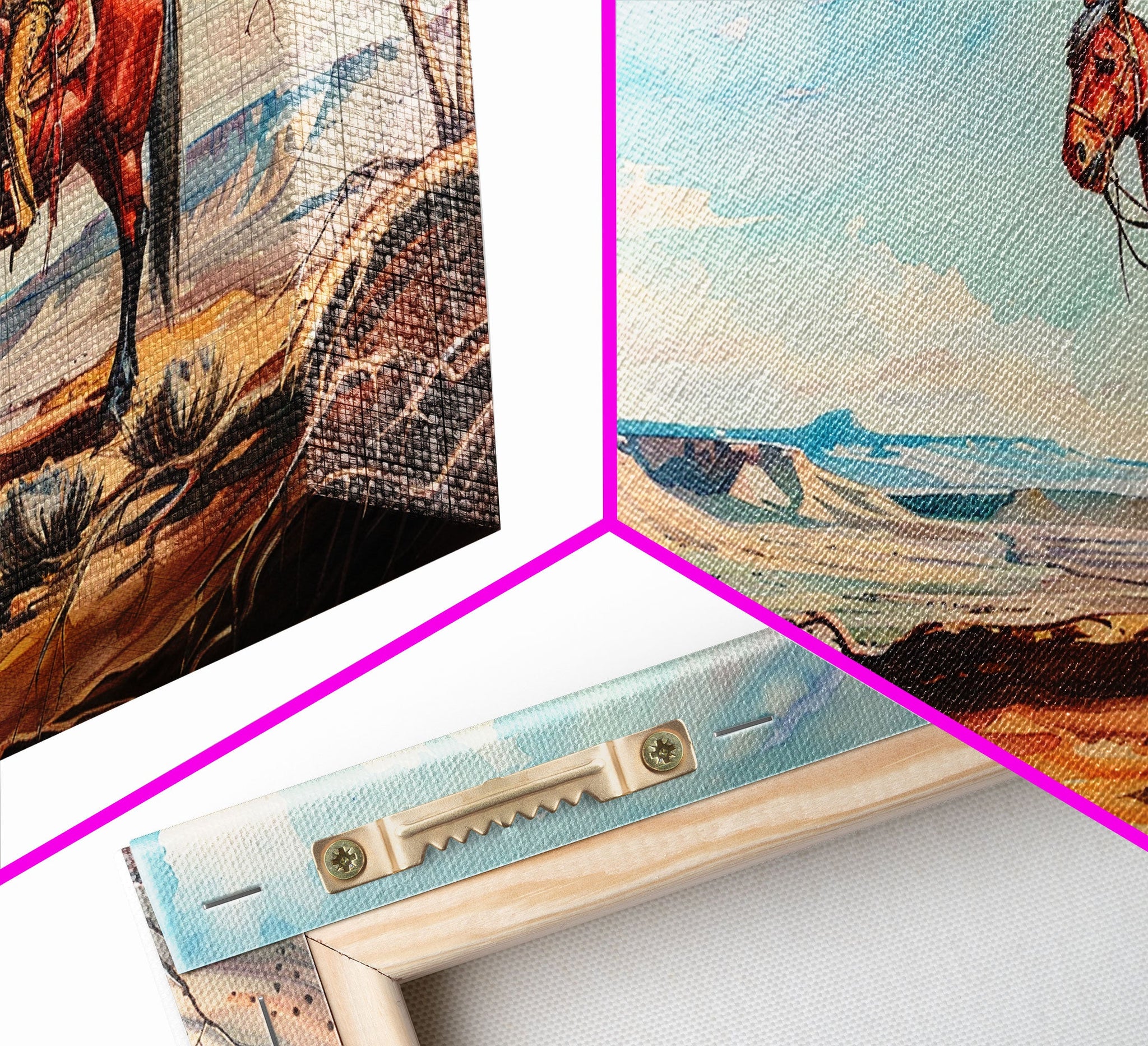 Cowboy on Horse Overlooking Canyon, Majestic Western Art, Framed Canvas Print, Boho Wall Art, Living Room Decor, Home Decoration