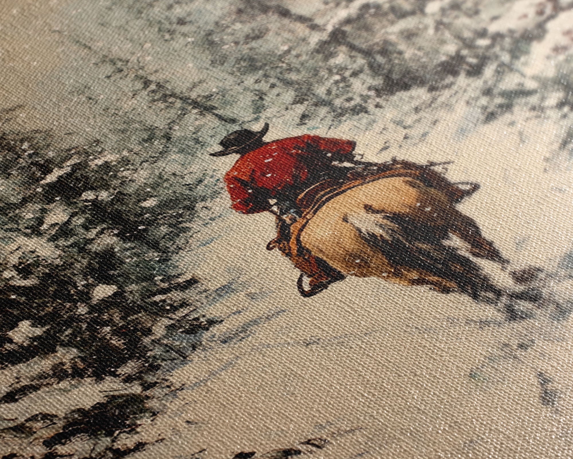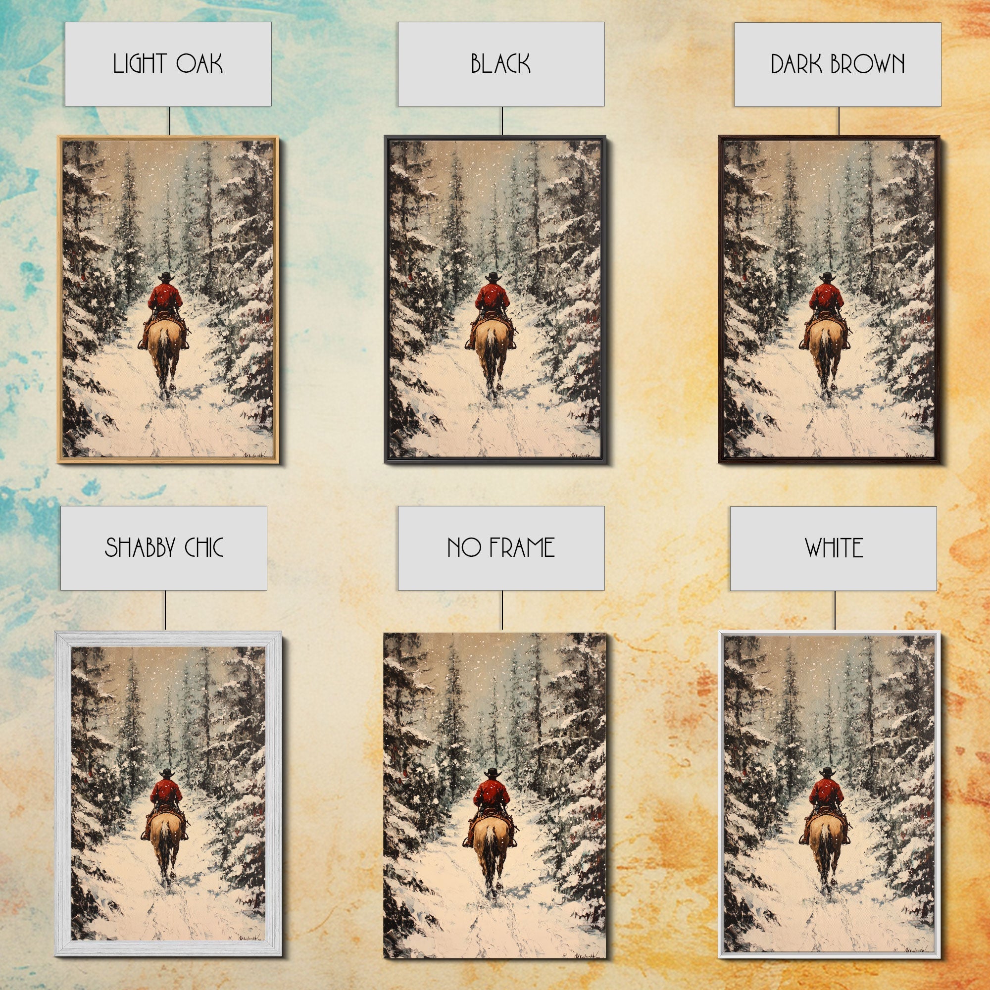 Cowboy on Horseback in Golden Autumn Trees Framed Canvas Print Rustic Christmas Wall Art Fall Decor Country Christmas Gift Seasonal Wall Art