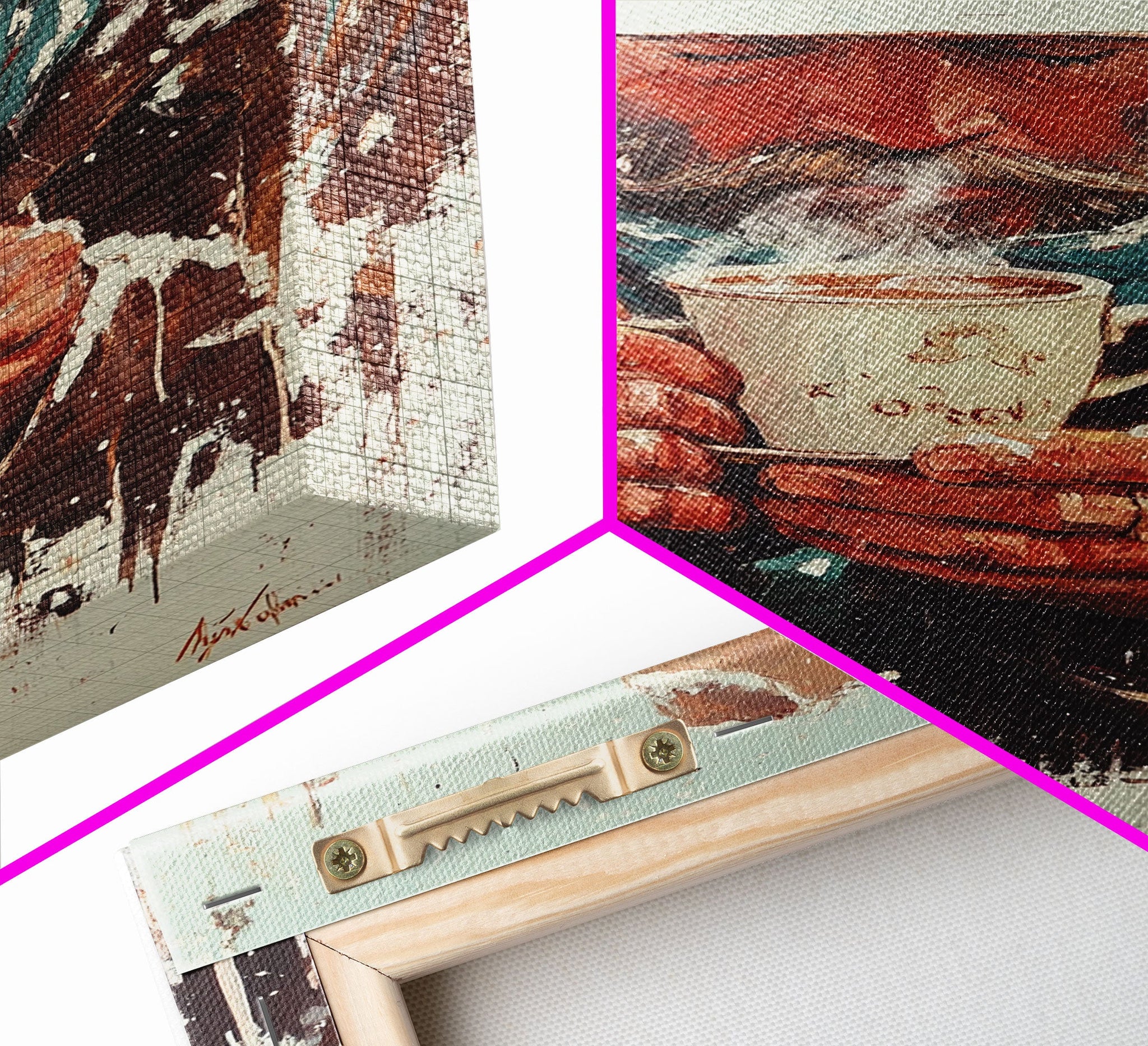 *SHIPPING: Every canvas is carefully wrapped in bubble wrap and foam corner protectors, and shipped fully assembled and ready to hang with sawtooth hangers in a flat box. All you need is a hammer!