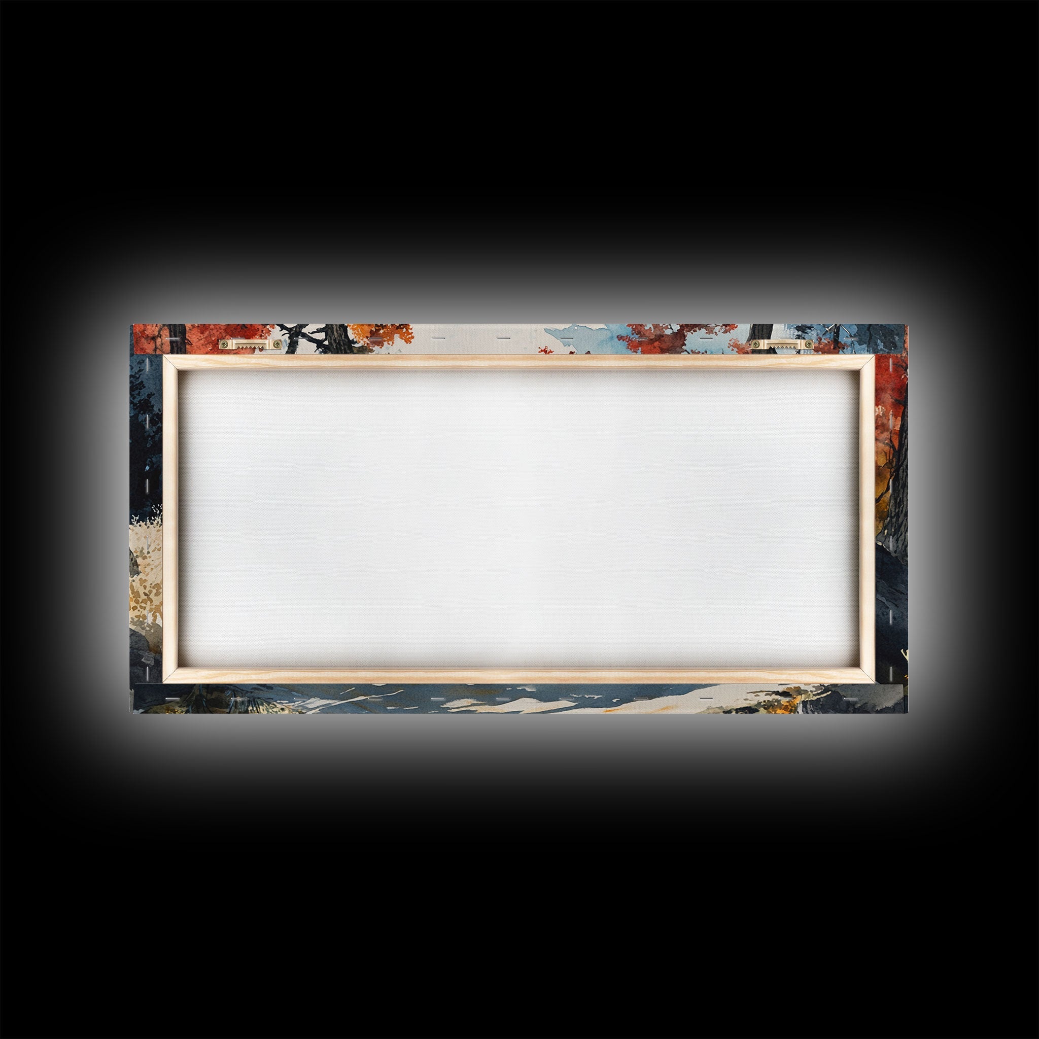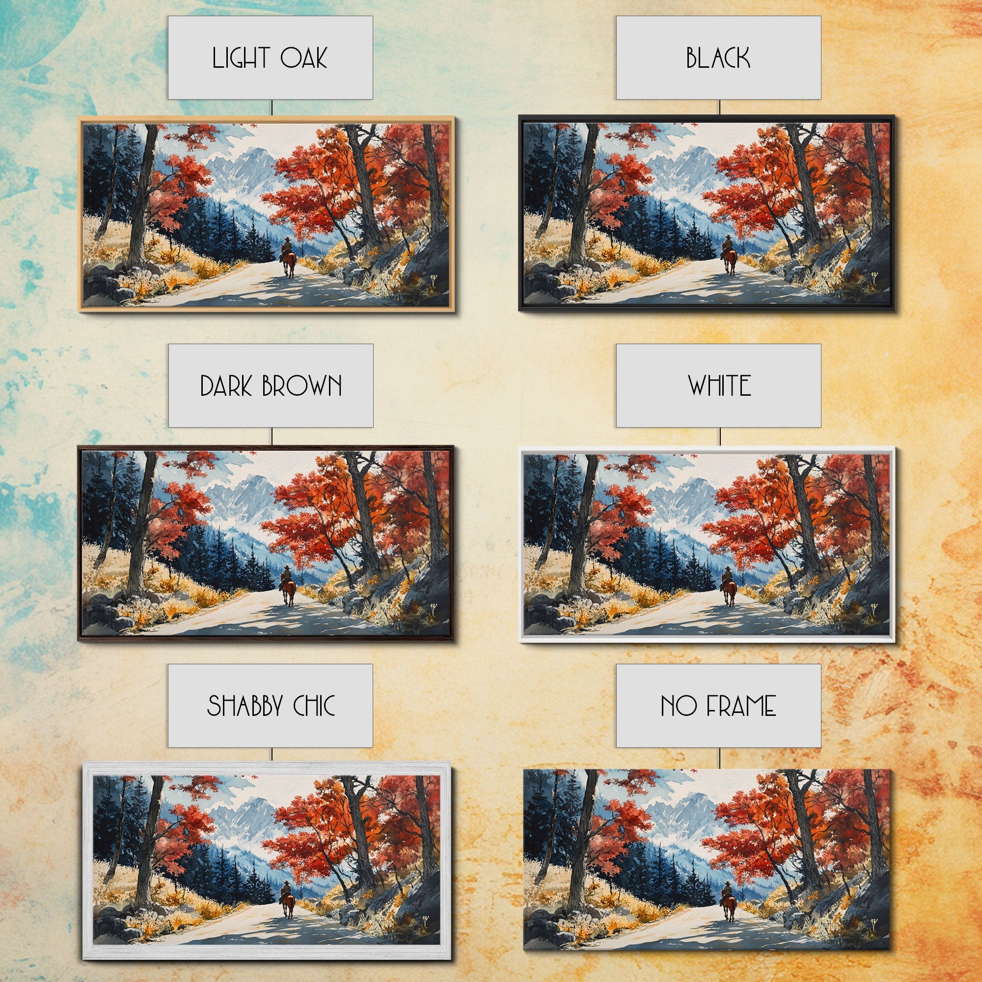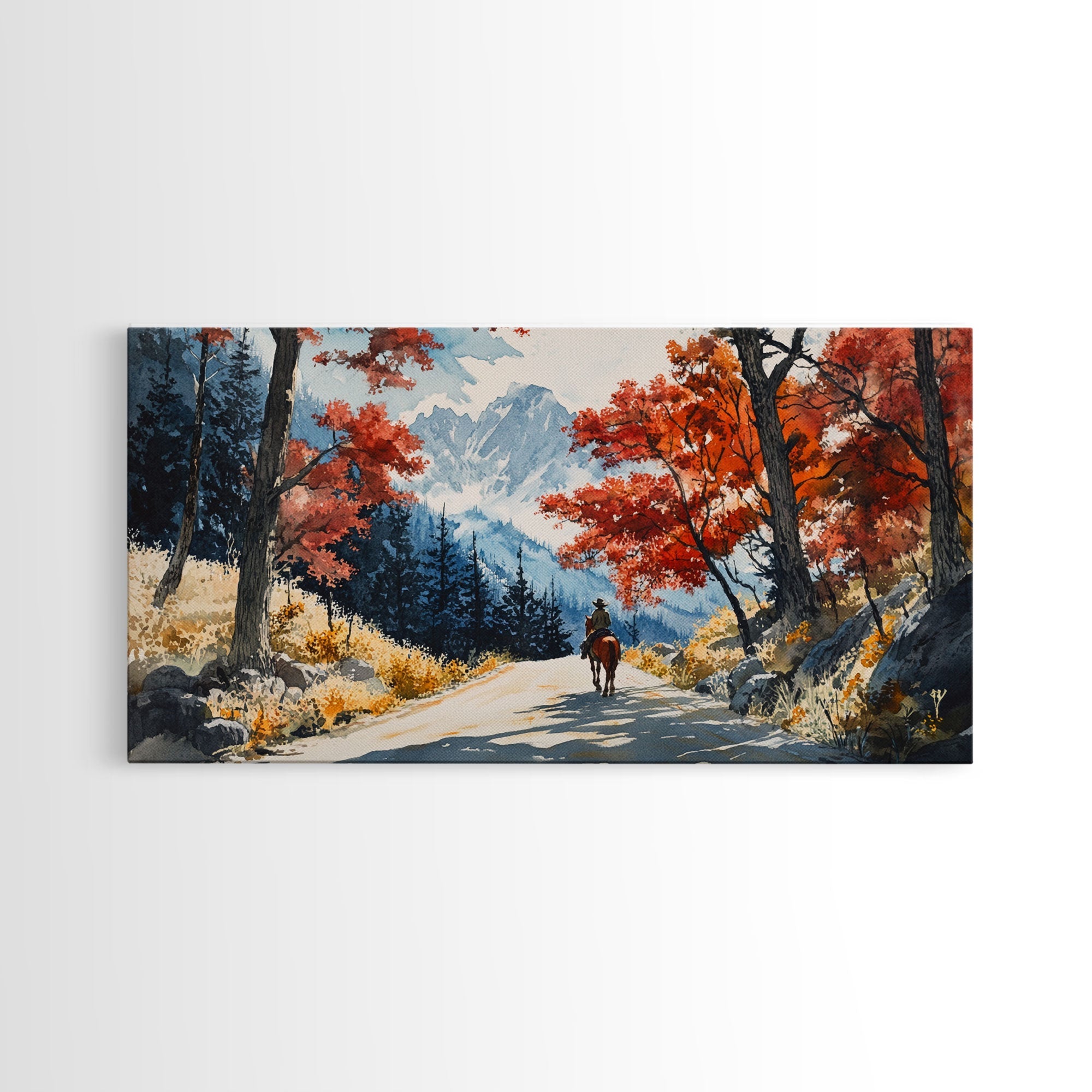 Cowboy Riding In Winter Snow Framed Canvas Print Tall Art Winter Landscape Rustic Christmas Decor Western Home Wall Art Mountain Gift Idea