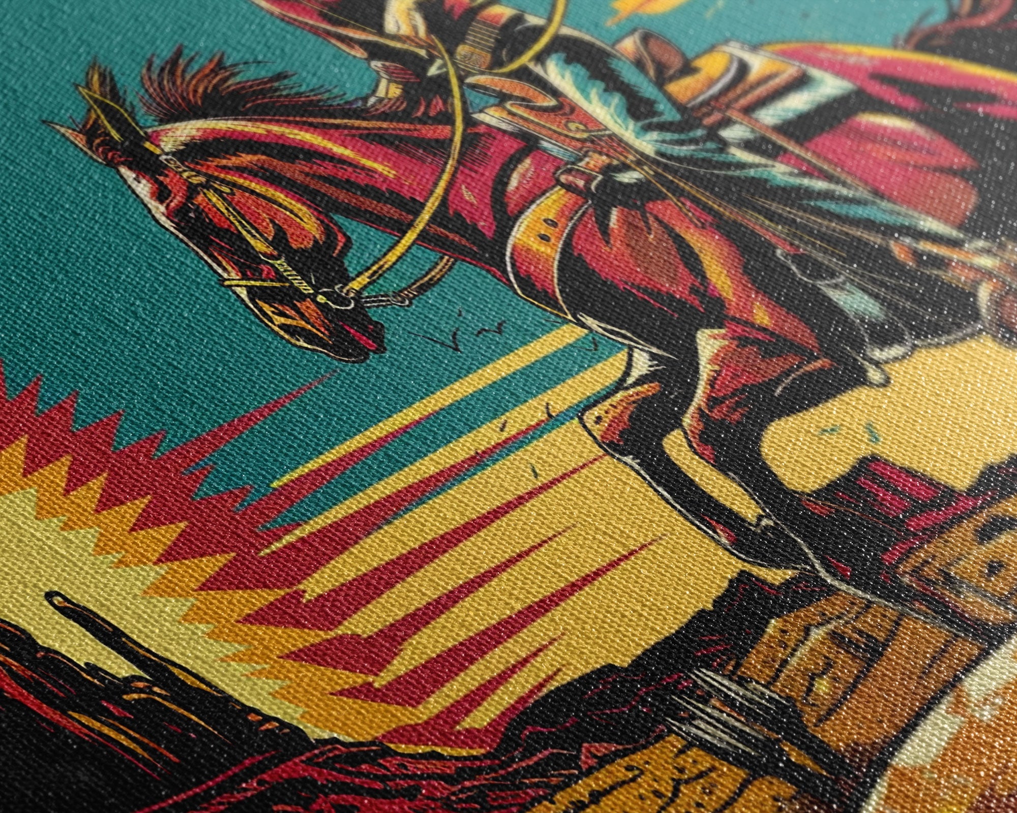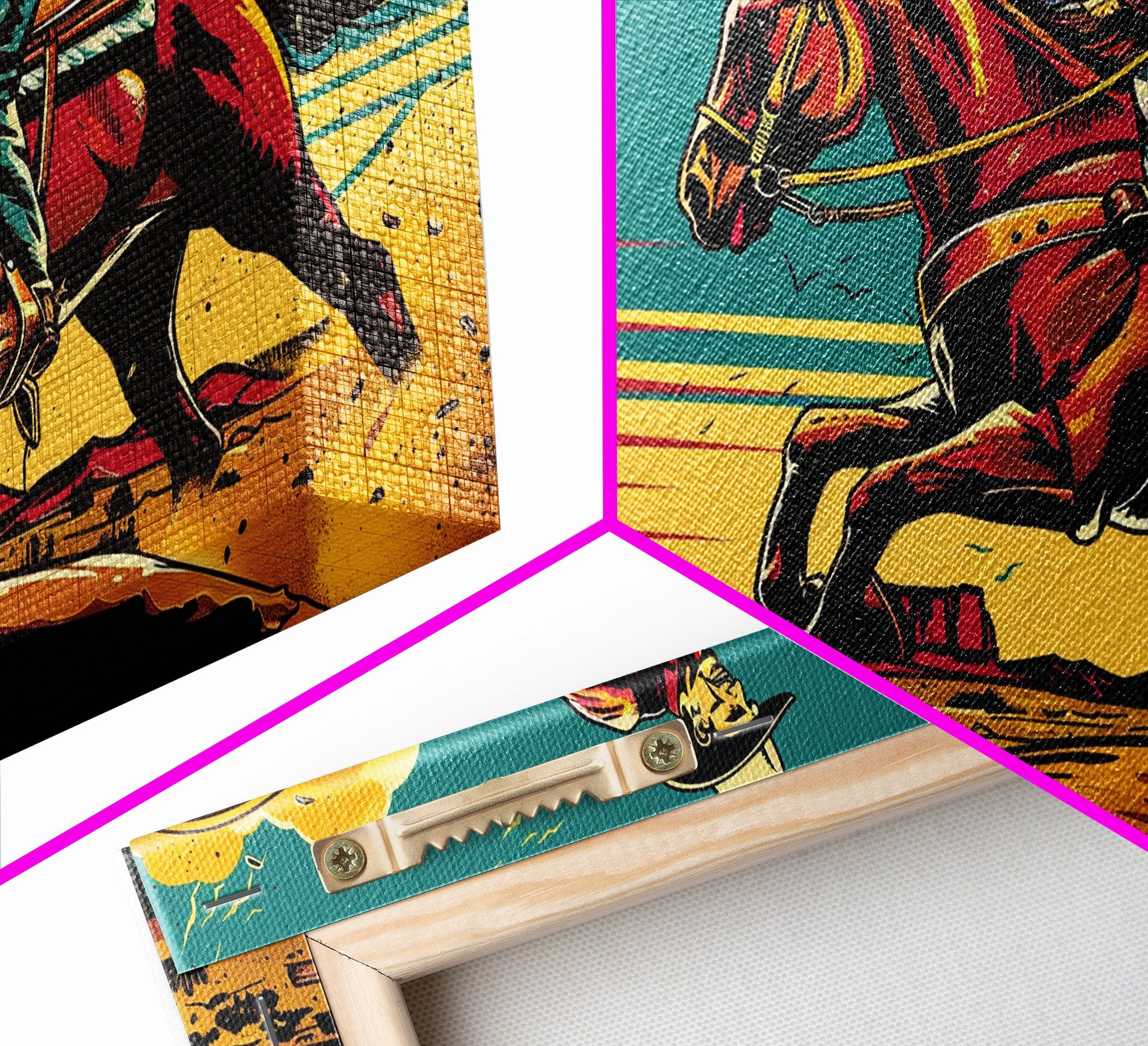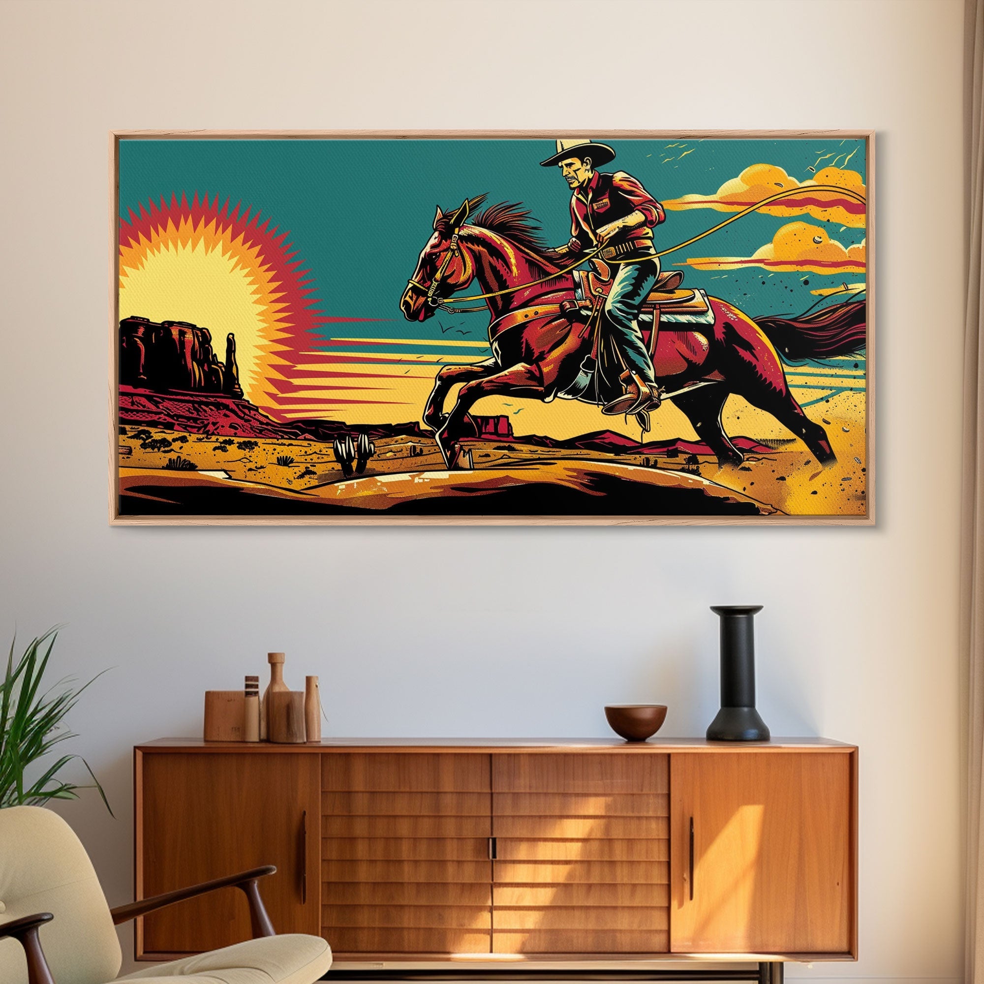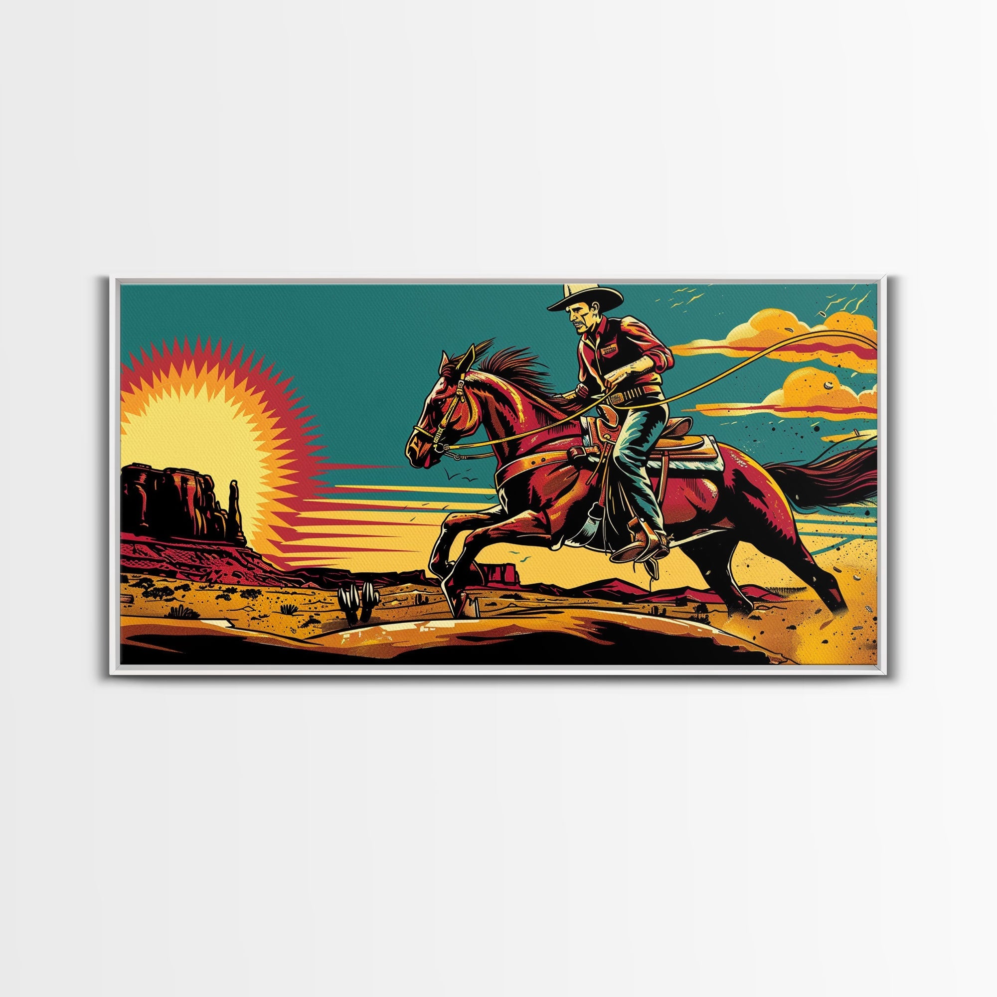 Cowboy Riding Through Desert, Southwestern Landscape Art, Framed Canvas Print, Boho Decor, Desert Art, Rustic Wall Art