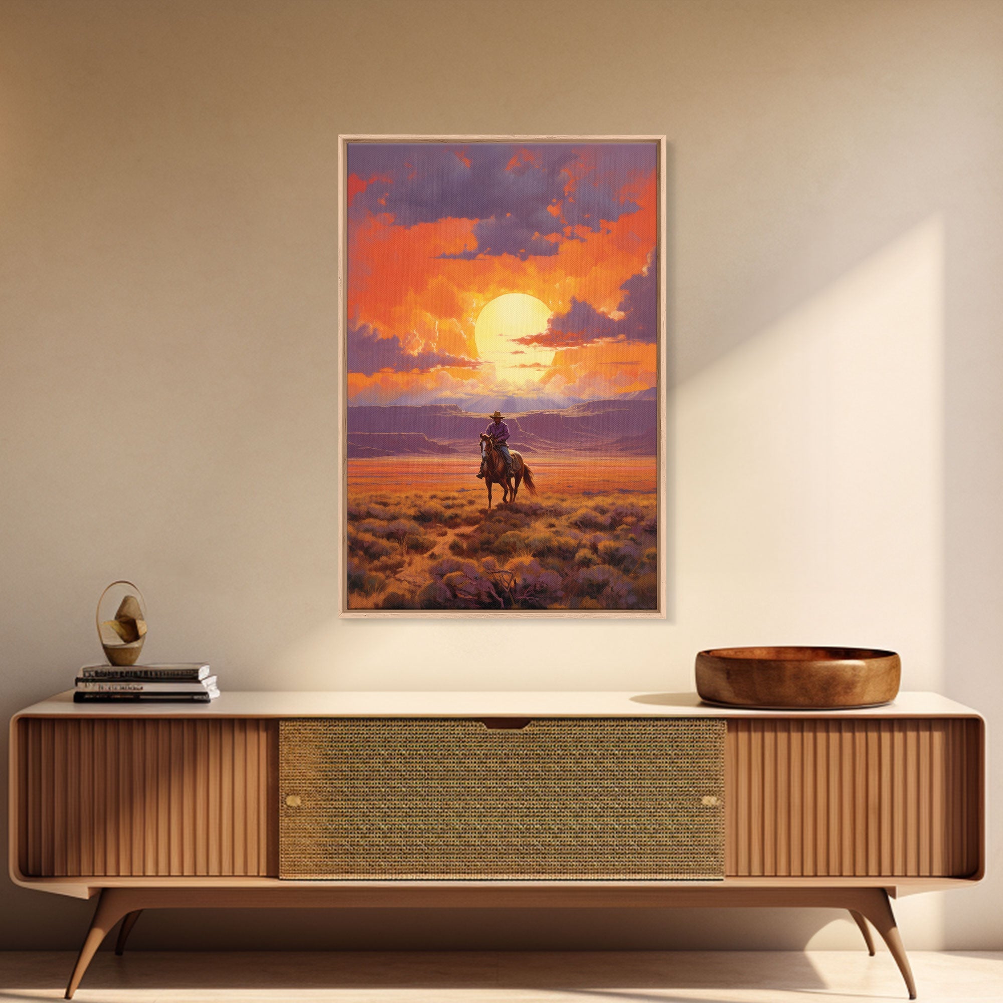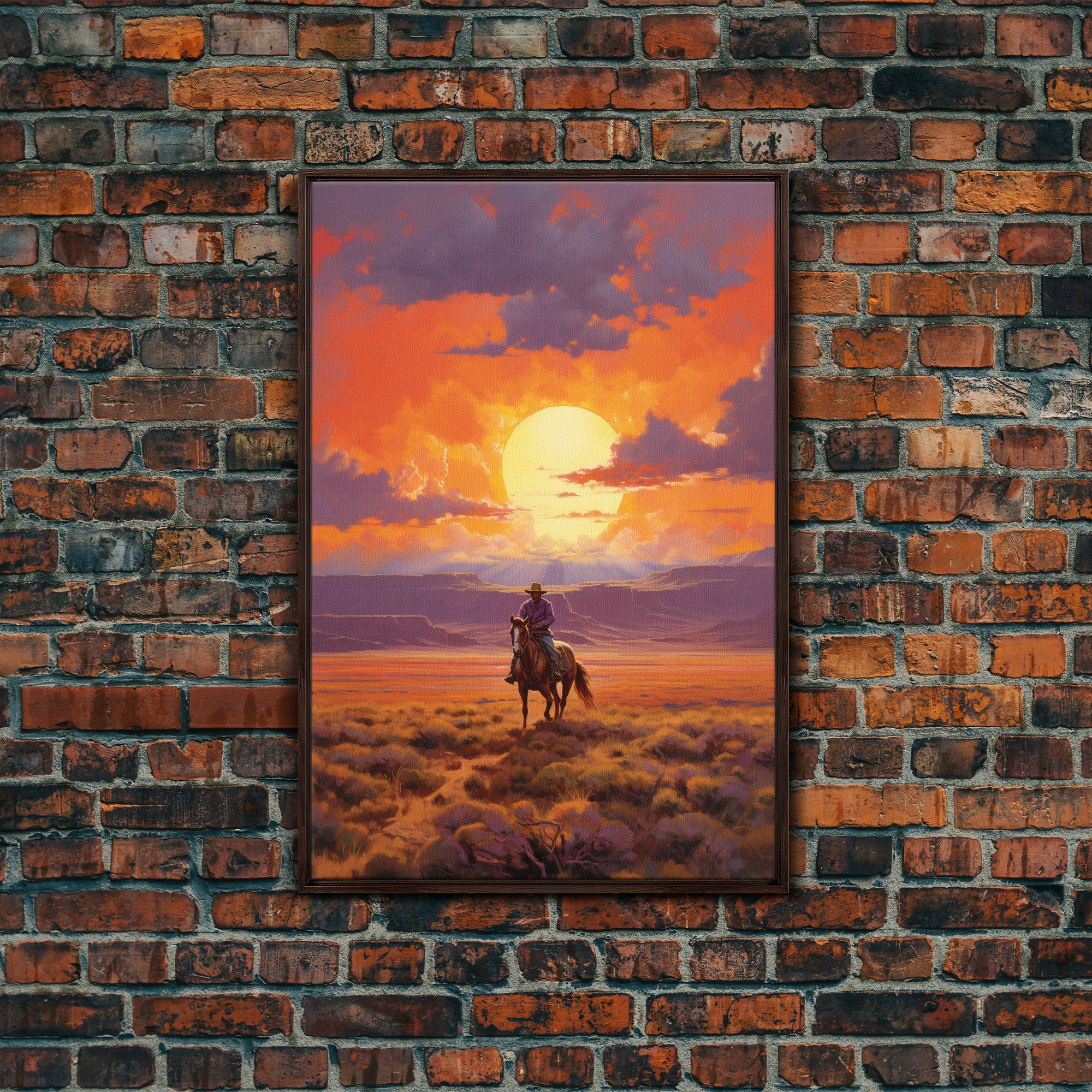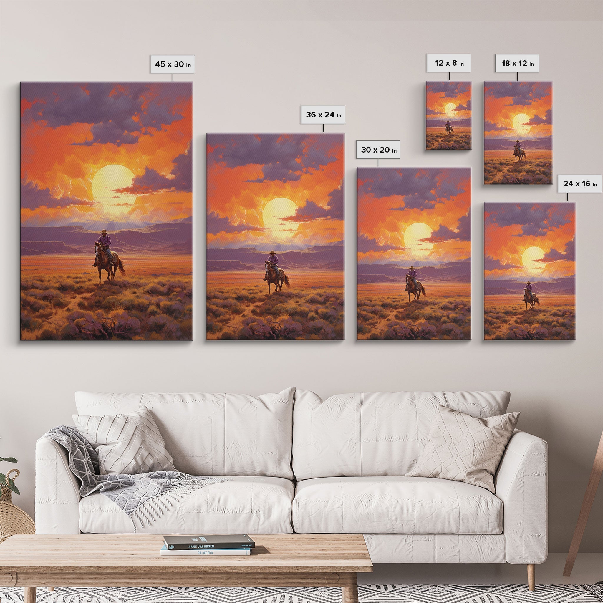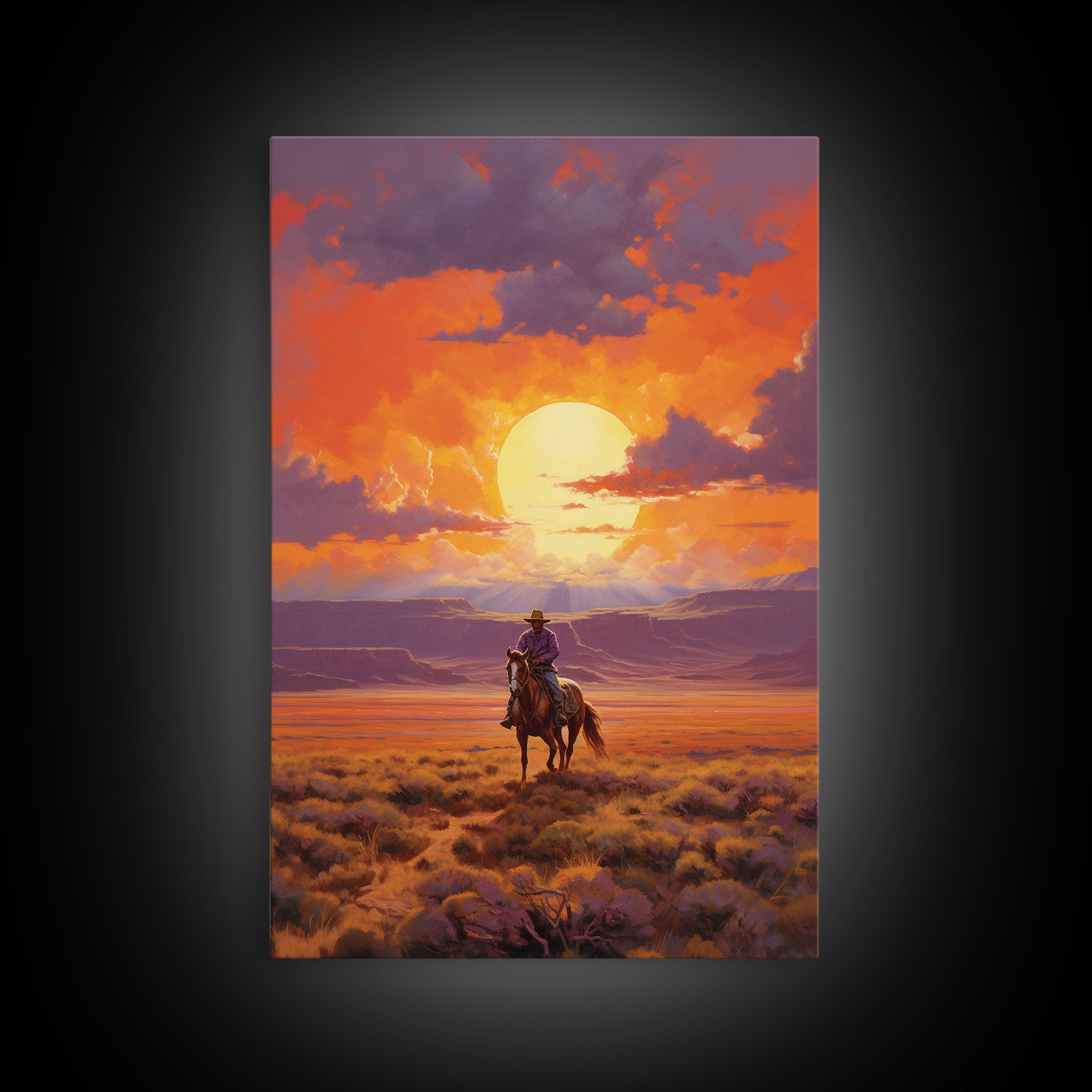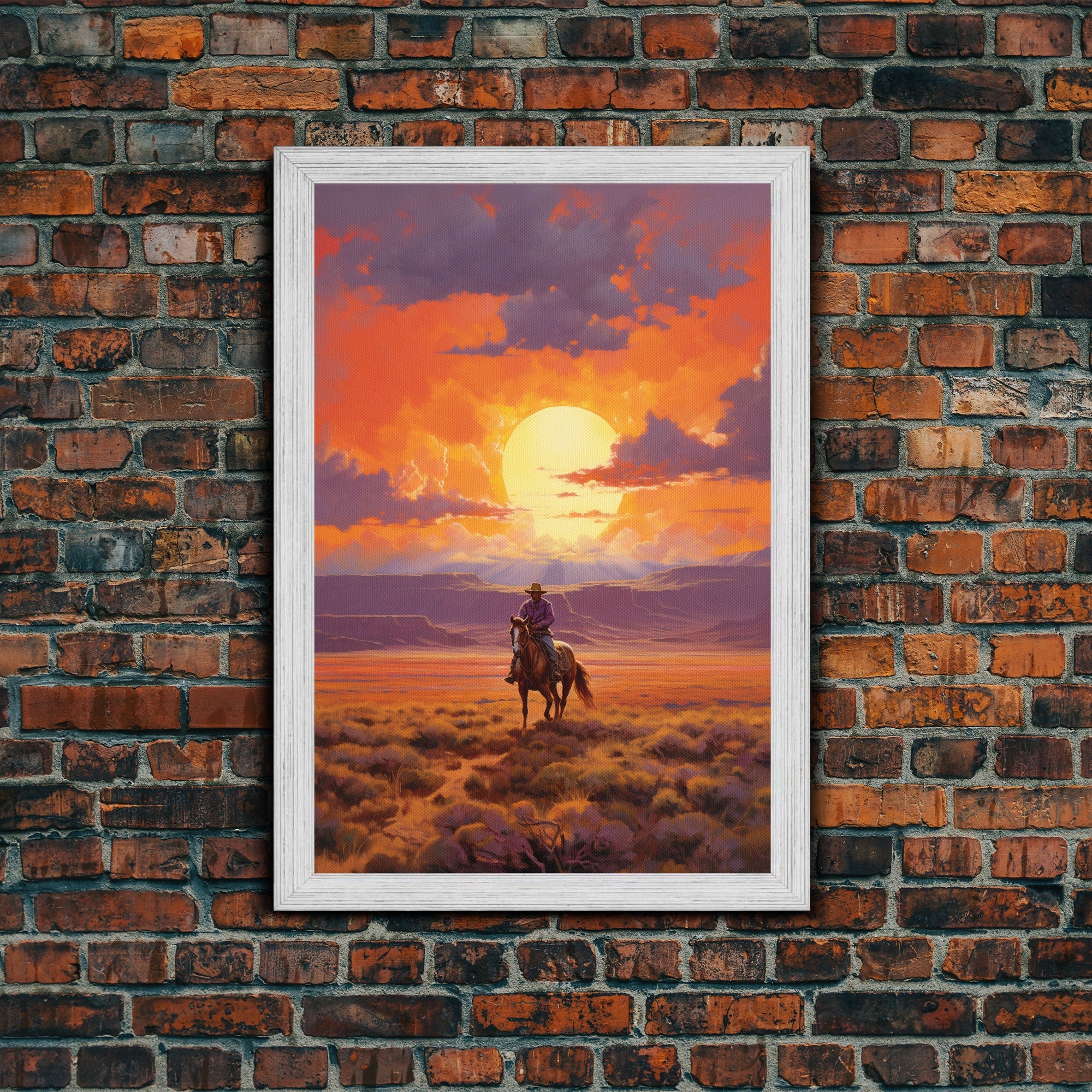 Cowboy Wall Art, Western Decor, Sunset Wall Art, Desert Art, Canvas Print, Wall Art, Vertical Art, Boys Bedroom Decor, Ranch Wall Art