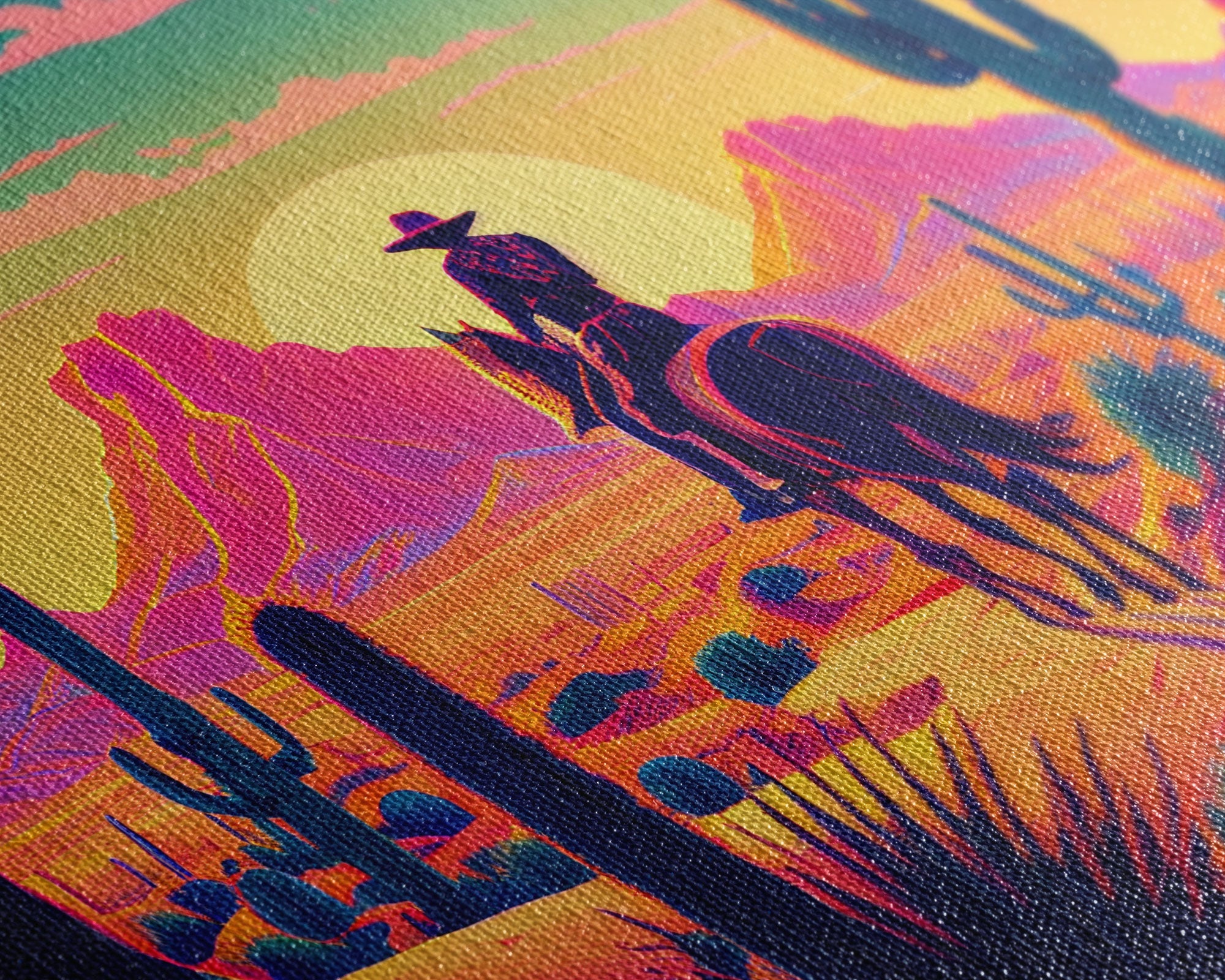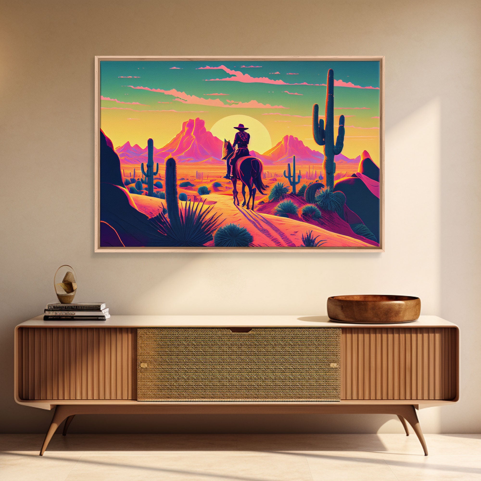 Cowboy Wild West Valley Sunset Mountains Cactus Fine Art Print, Wall Art Print, Wall Poster, Wall Décor