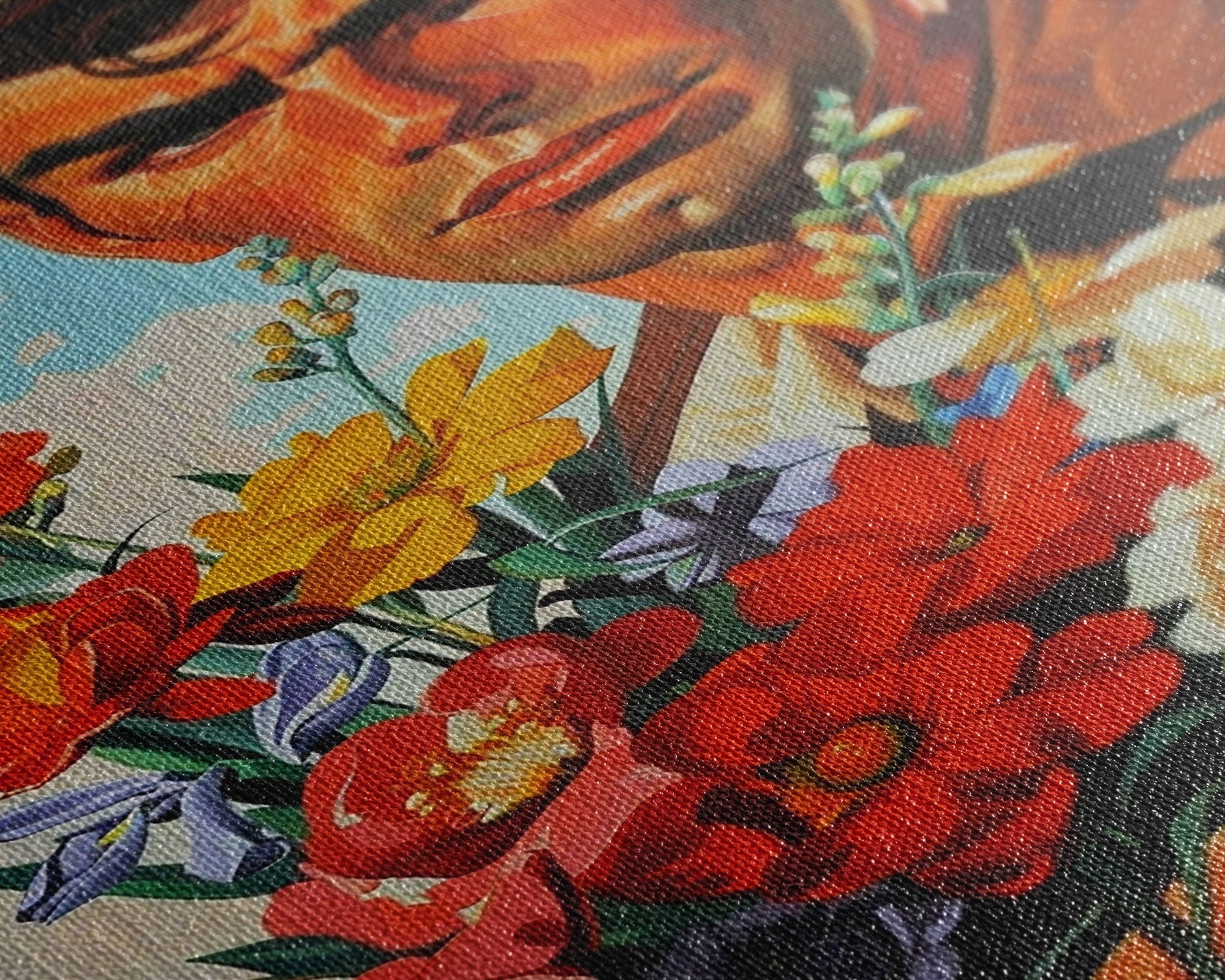 • Load image into Gallery viewer, Cowboy with Bouquet of Flowers - Framed Canvas Print, Western Living Room Art, Rustic Bedroom Decor, Americana Art, Wall Art