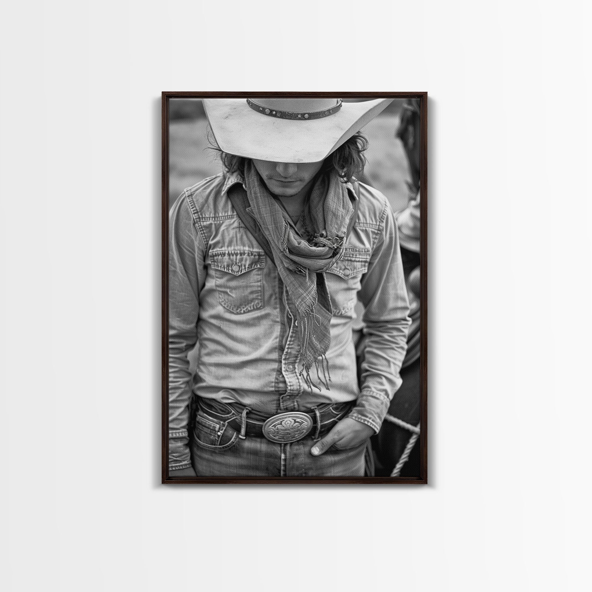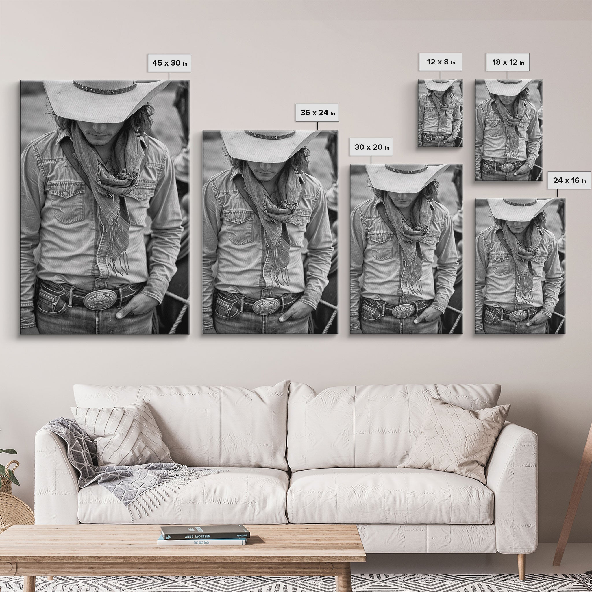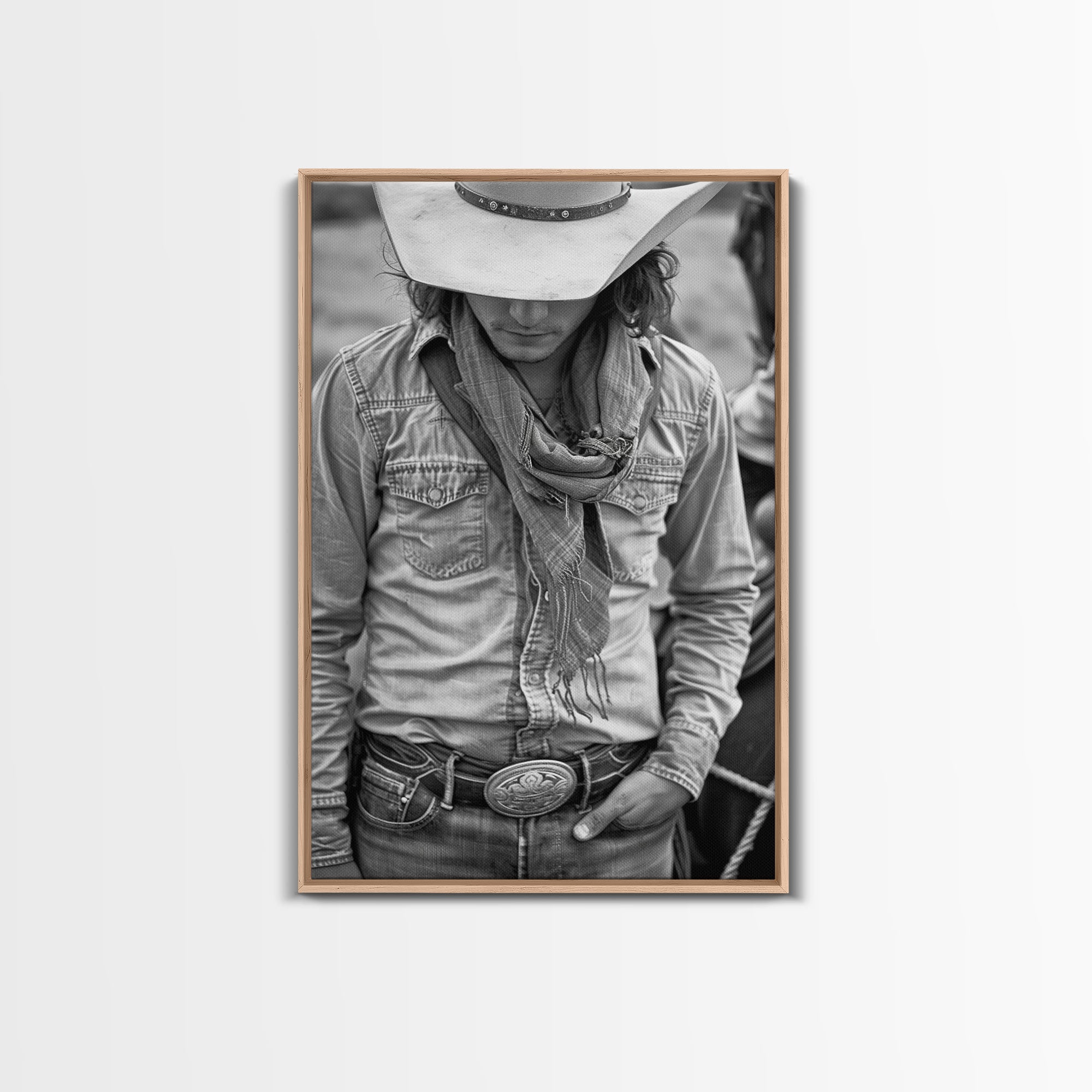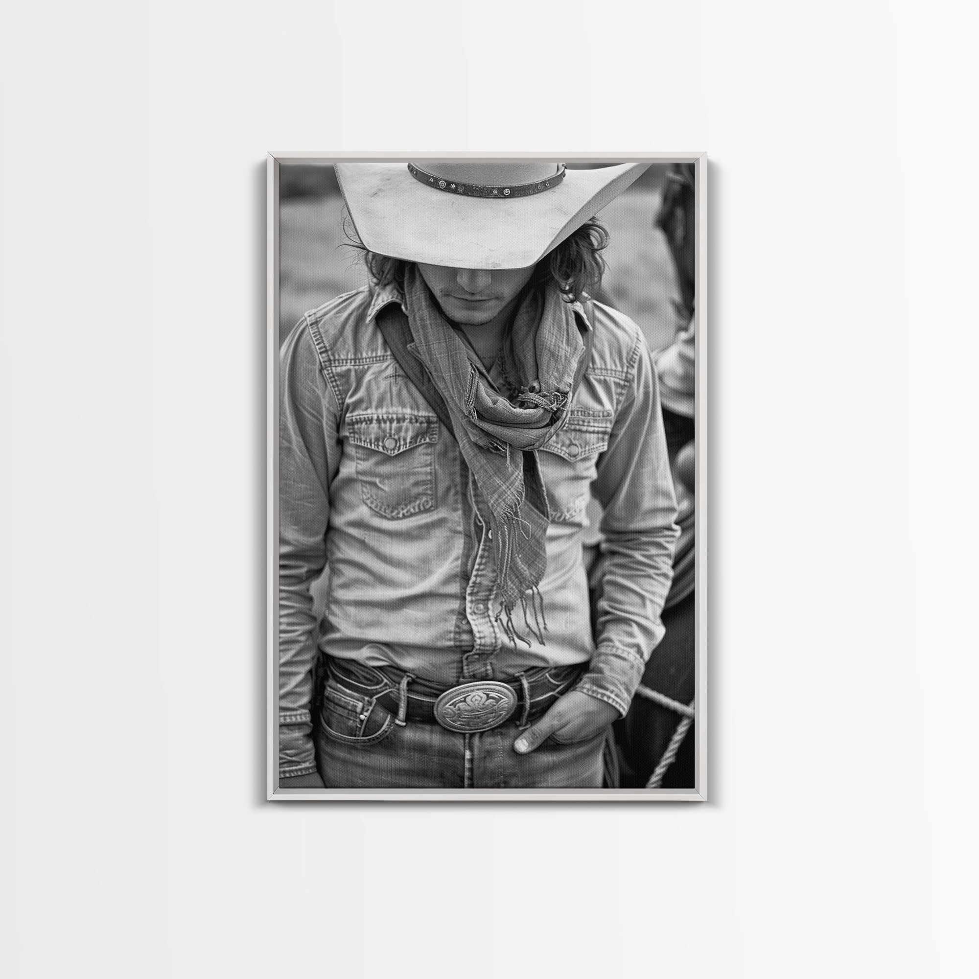 Cowboy with Hat and Scarf Looking Down in Black and White for Western Wall Art, Canvas Prints, Home Decor, Living Room Art, Bedroom Art
