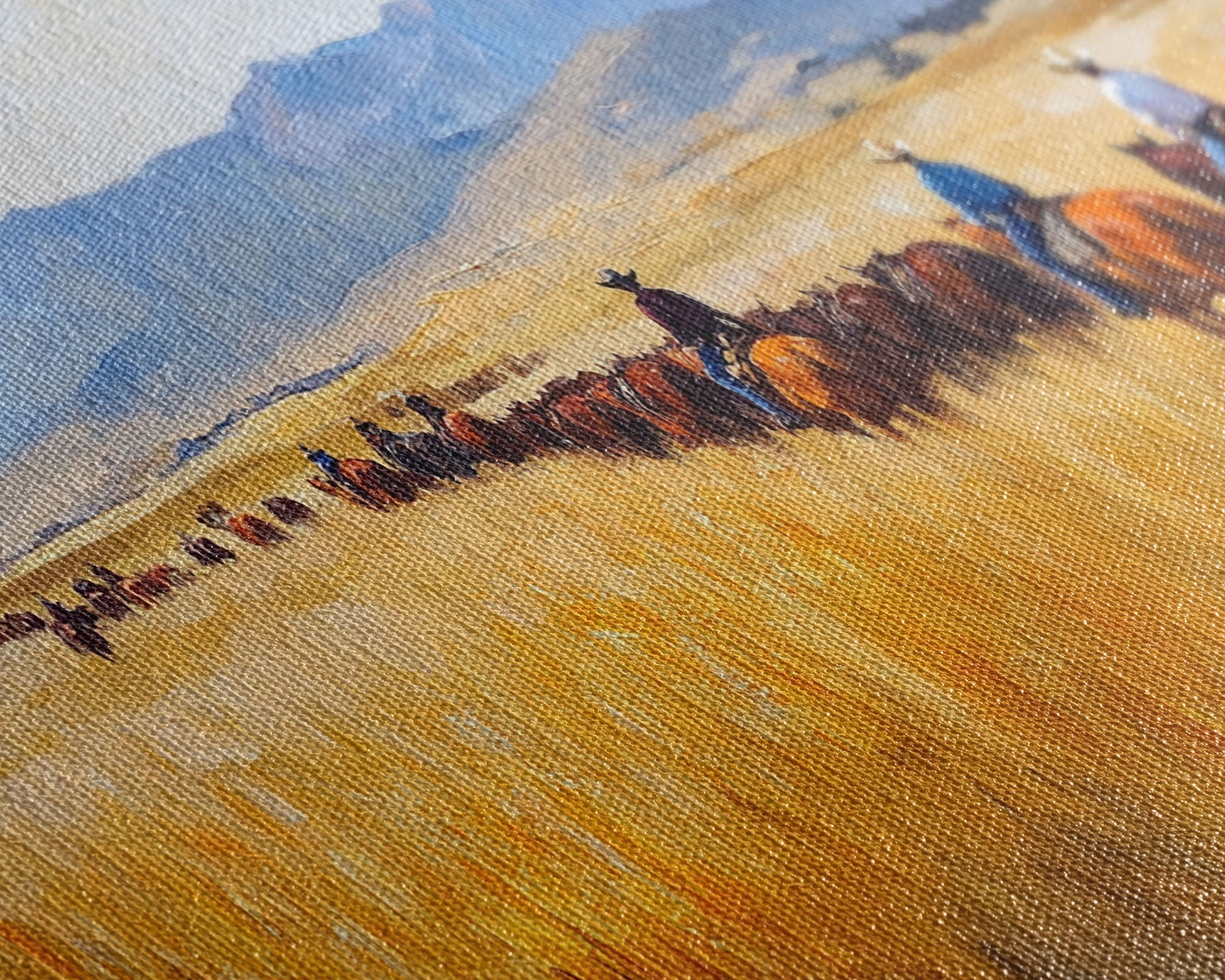 Most of our canvases are made in the USA, with the exception of canvases ordered with the light oak unstained frames, and any large canvases (24x48, 30x60, 16x48 and 20x60) ordered WITH a frame. These are temporarily made in and shipped from Europe, while we try to find a more consistent supplier in the USA.