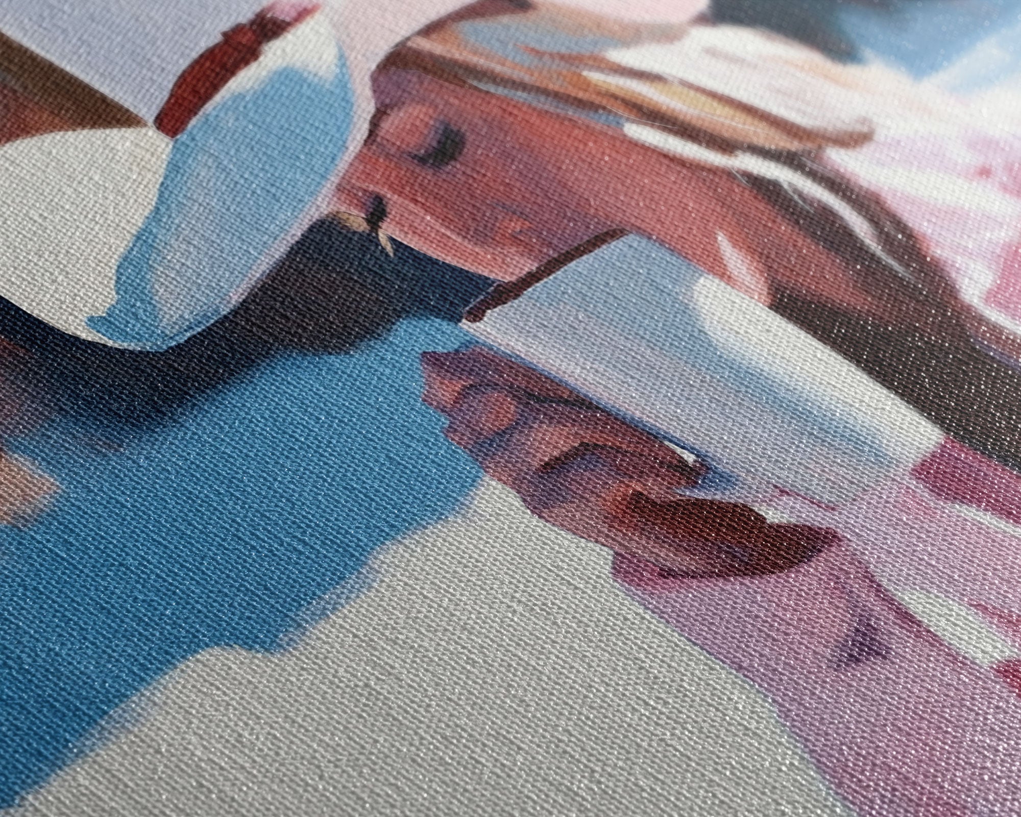 Most of our canvases are made in the USA, with the exception of canvases ordered with the light oak unstained frames, and any large canvases (24x48, 30x60, 16x48 and 20x60) ordered WITH a frame. These are temporarily made in and shipped from Europe, while we try to find a more consistent supplier in the USA.
