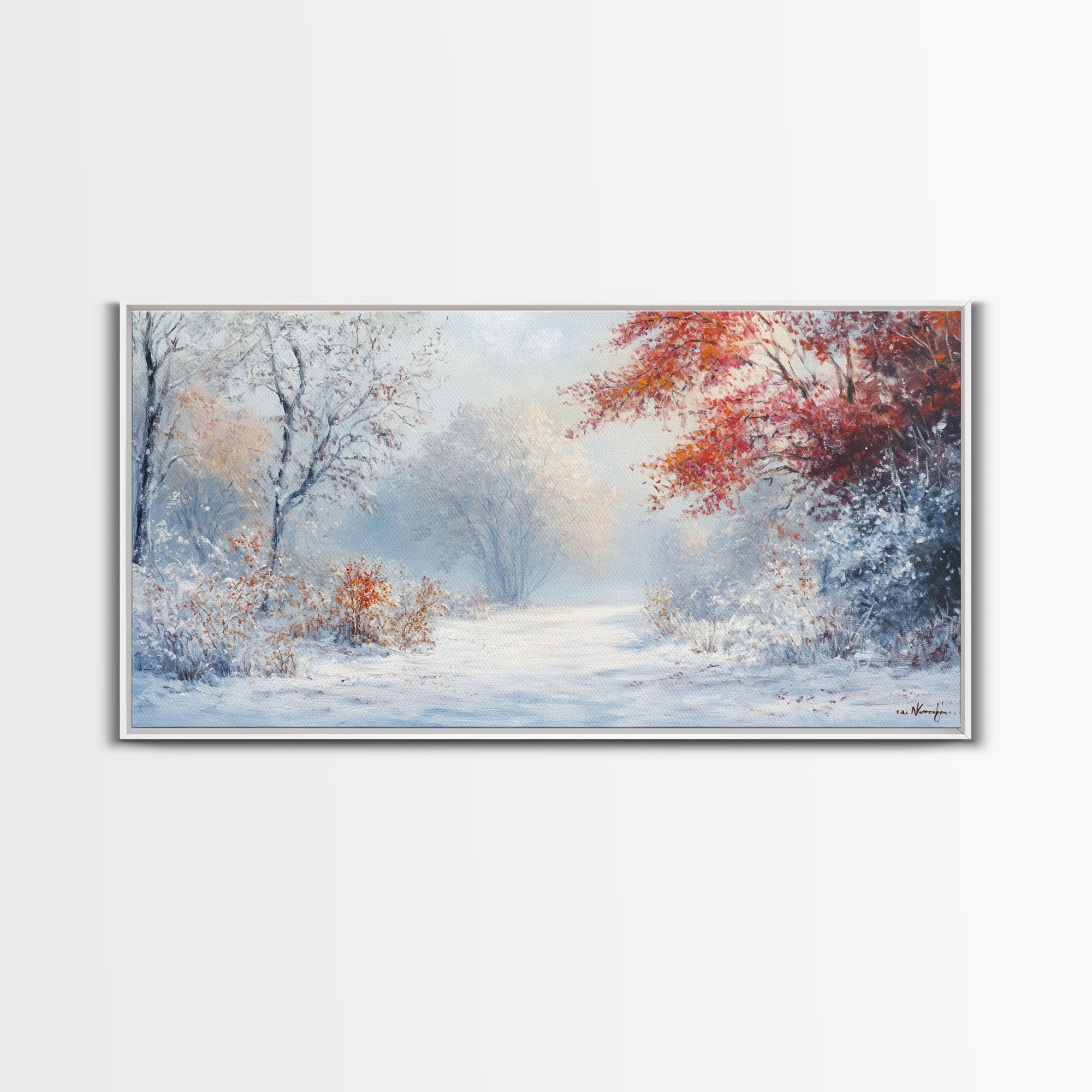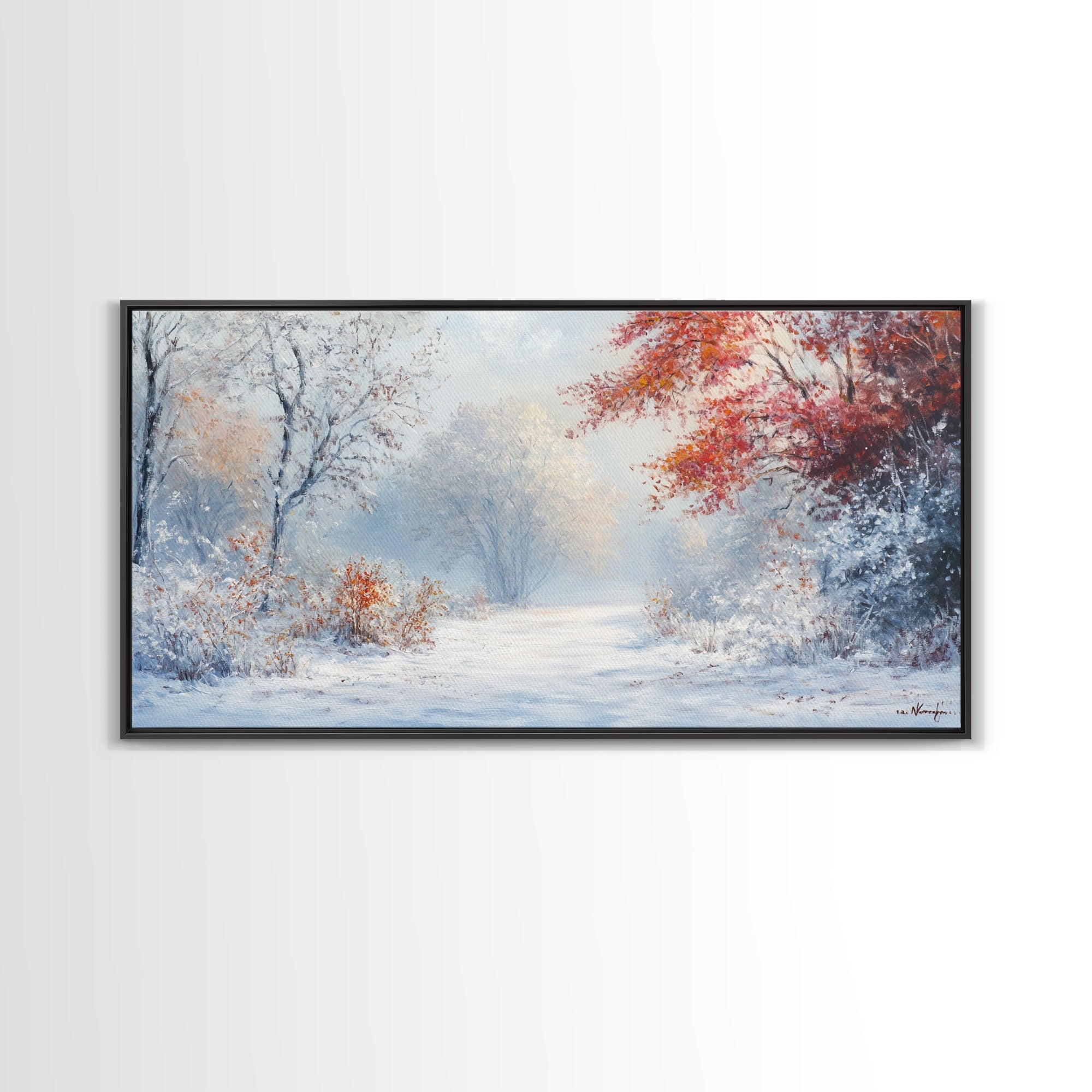Cozy Cabin in the Snow Framed Canvas Print, Ideal Christmas Holiday Wall Art for Winter Wonderland Decor and Festive Home Interiors