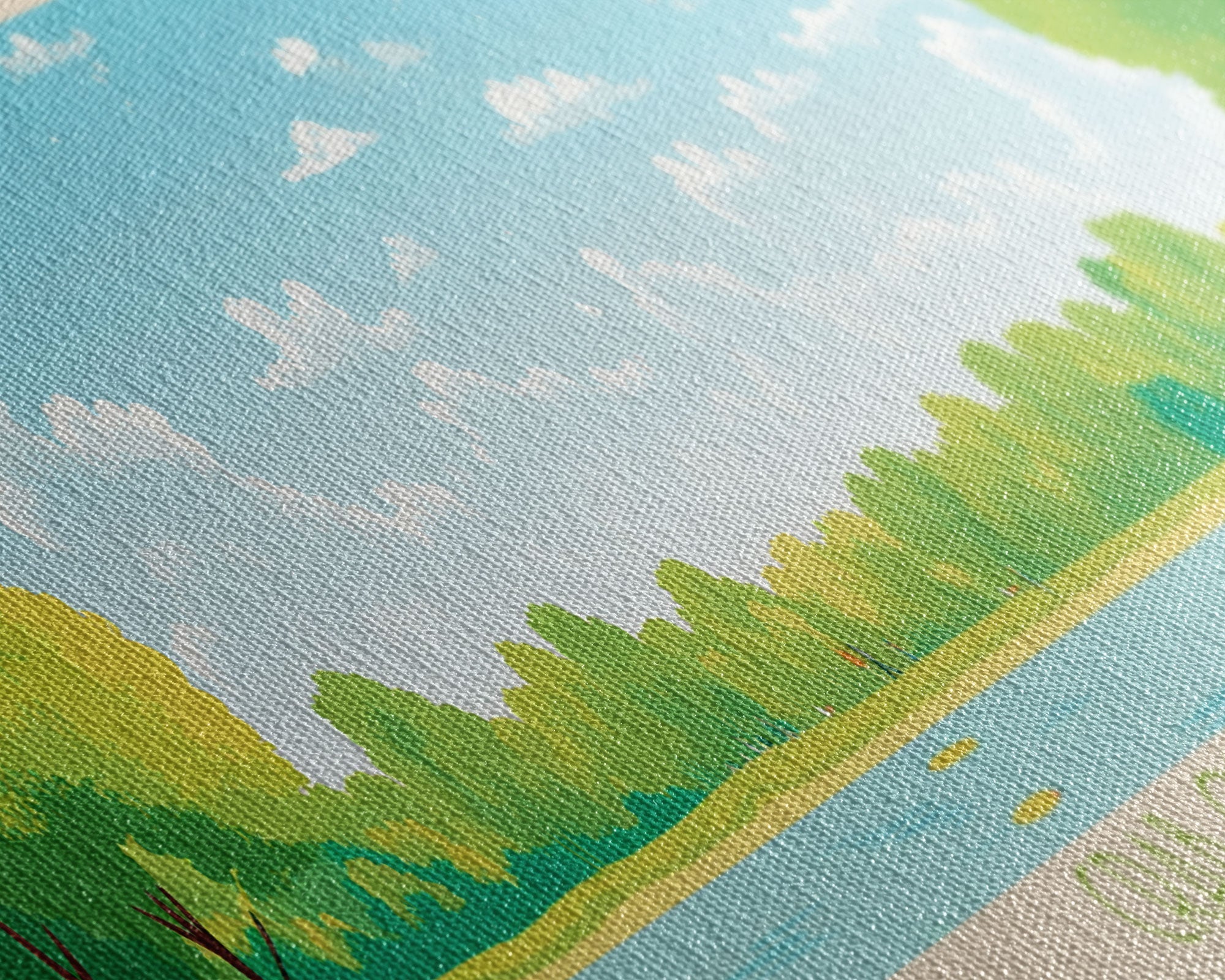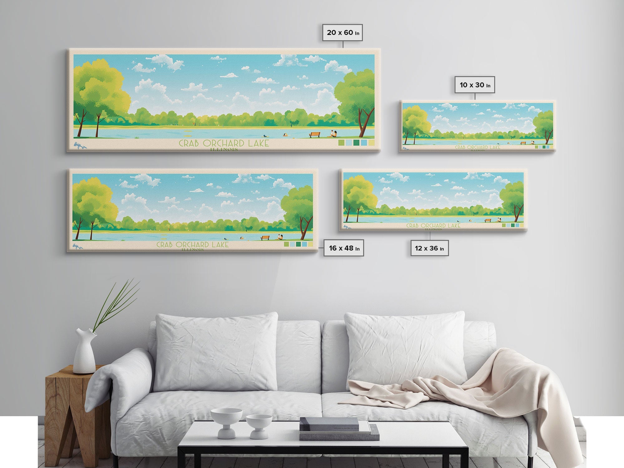 Crab Orchard Lake Illinois Framed Canvas Print, Midcentury Modern Panoramic Wall Art, Living Room Decor, Pop Art, Travel Poster Art, Scenic Nature Painting, Lake House Decor