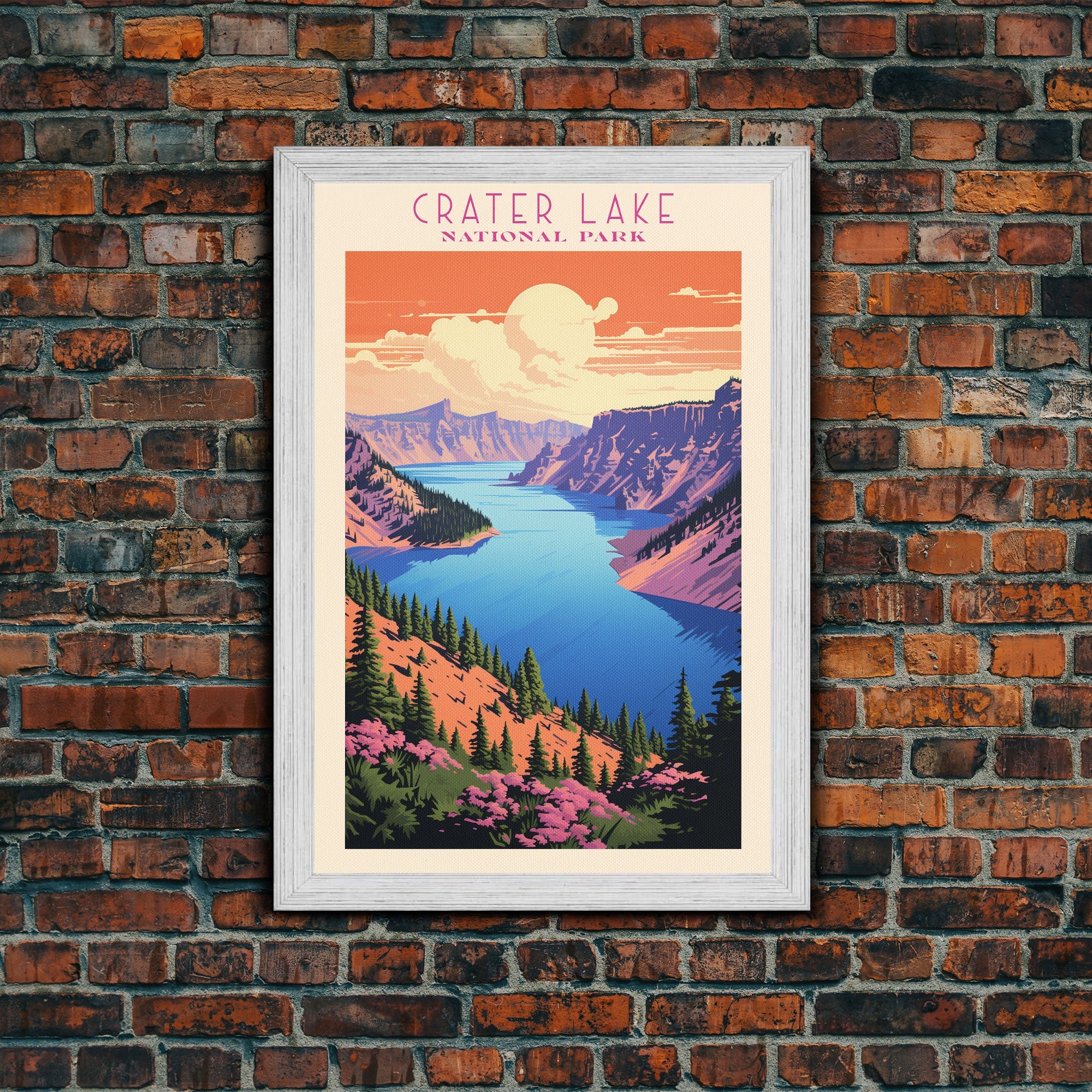 Crater Lake National Park Travel Poster Print, Canvas Print Wall Art, Oregon Travel Art, Midcentury Modern Travel Decor