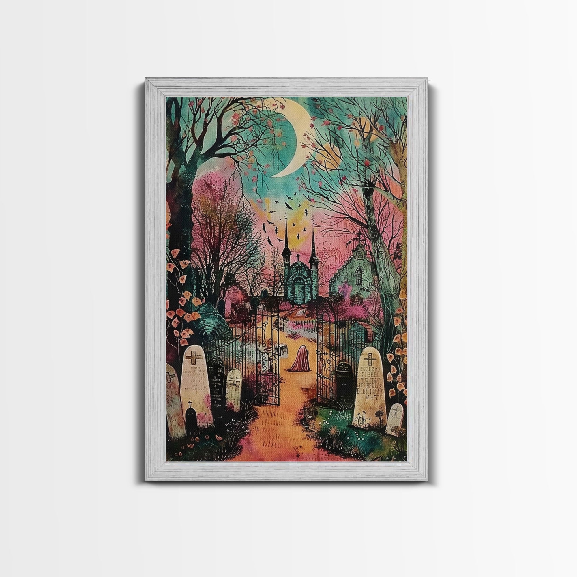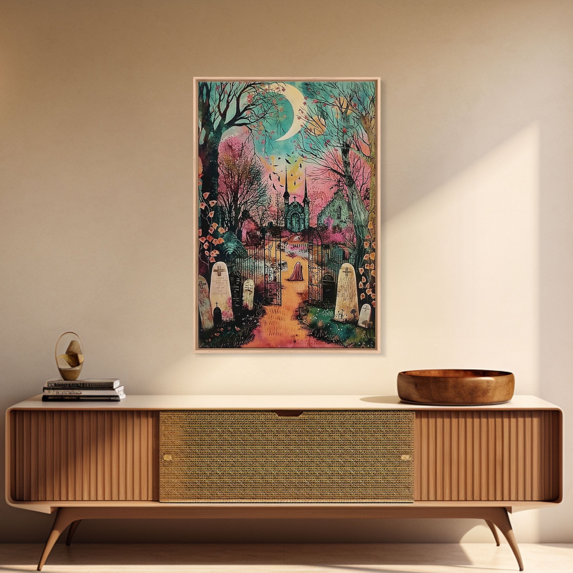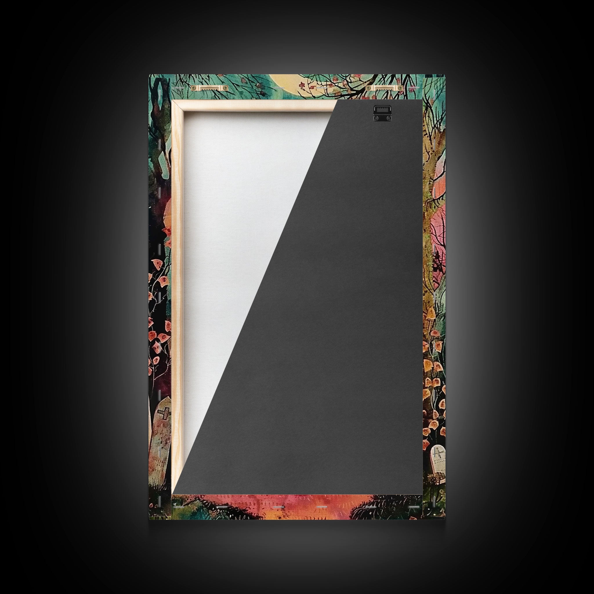 Creepy Moonlit Trees Framed Canvas Print, Haunted Forest Art, Halloween Night Scene, Eerie Woods Decor, Spooky Artwork, Framed Canvas Print