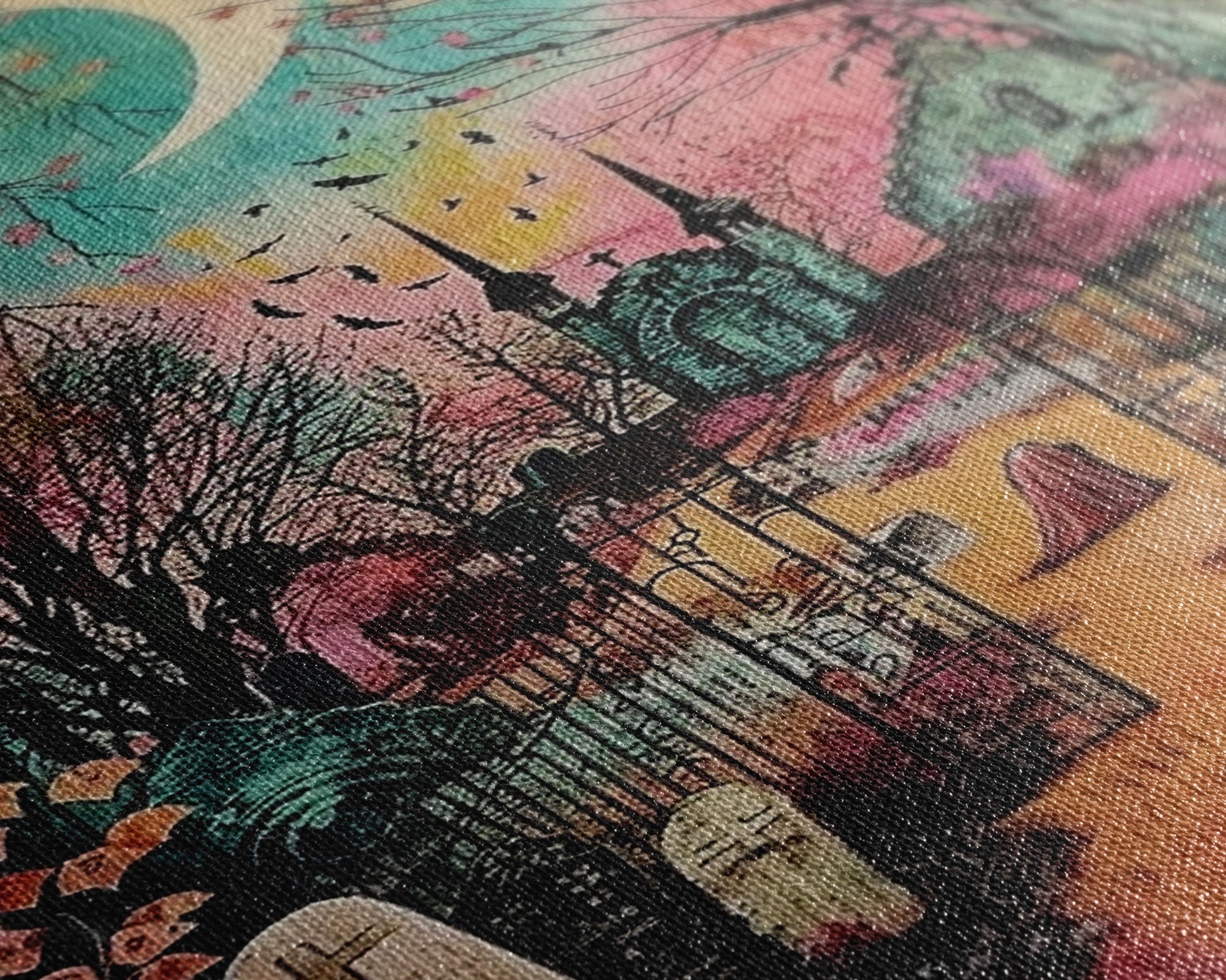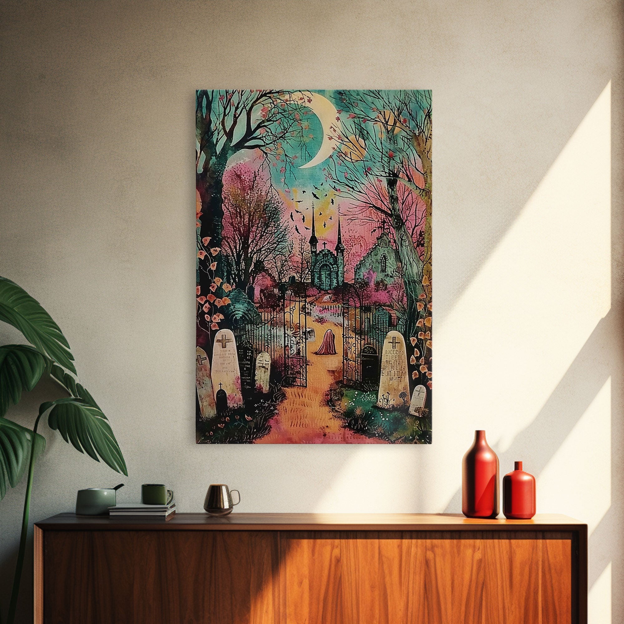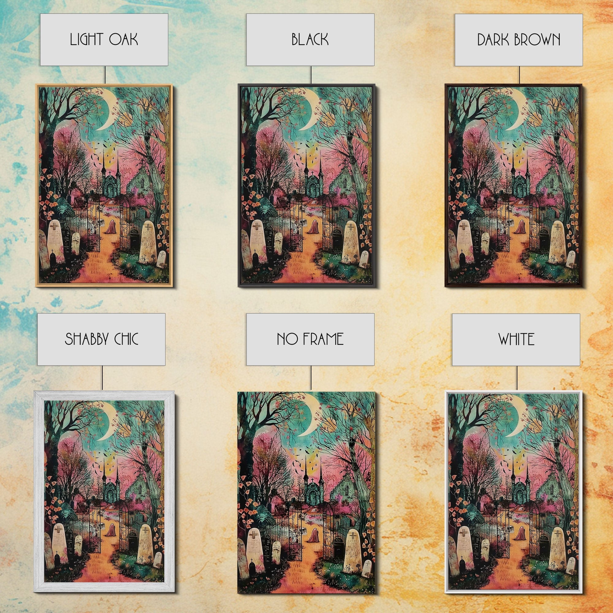 Creepy Moonlit Trees Framed Canvas Print, Haunted Forest Art, Halloween Night Scene, Eerie Woods Decor, Spooky Artwork, Framed Canvas Print