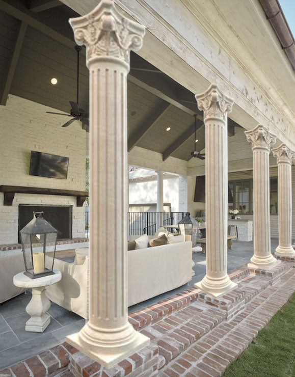 Crema Marfil Marble Corinthian Greek Hand-carved Column (W)20" (L)20" (H)108" is carved from 100% Natural stone beige marble.