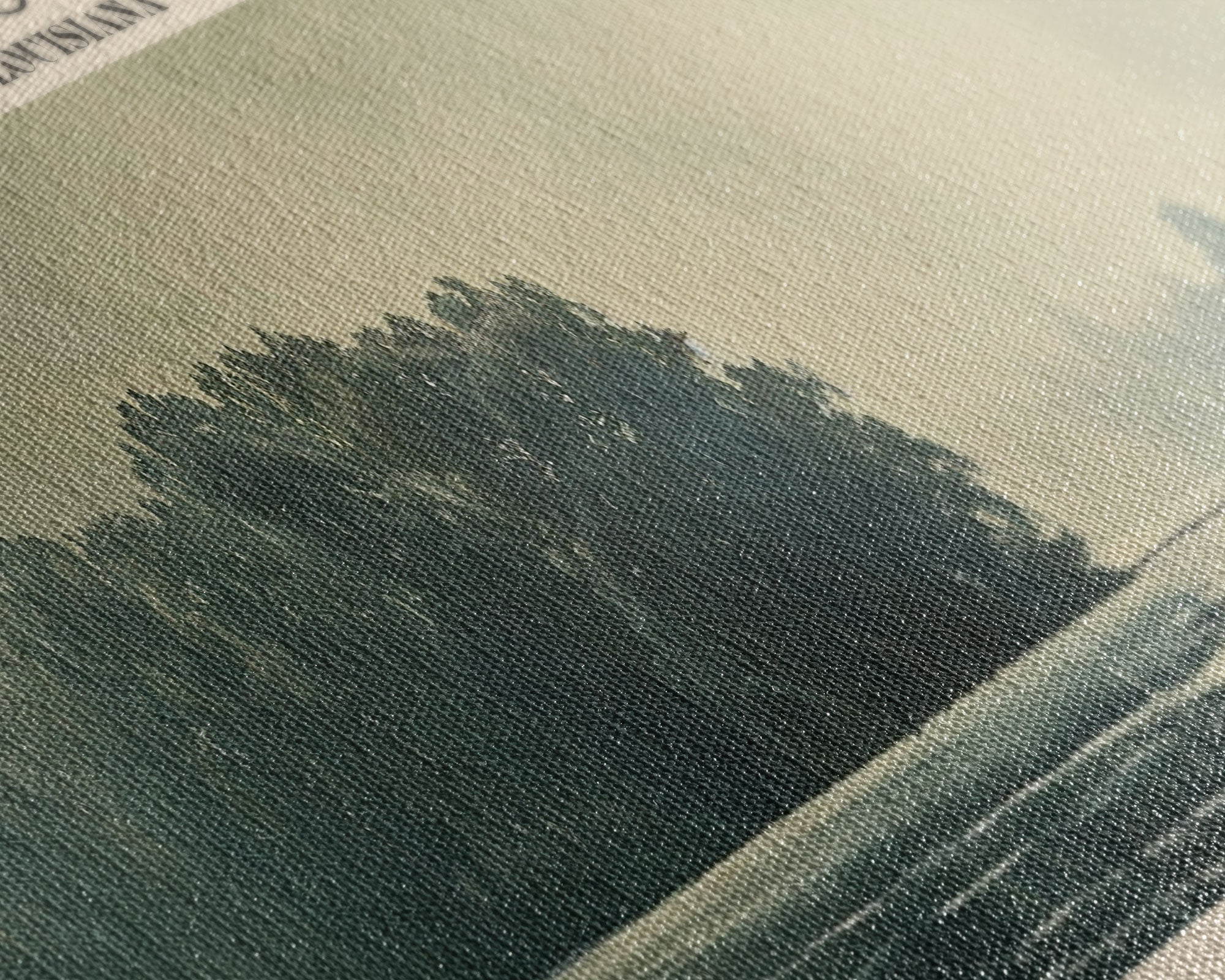 Most of our canvases are made in the USA, with the exception of canvases ordered with the light oak unstained frames, and any large canvases (24x48, 30x60, 16x48 and 20x60) ordered WITH a frame. These are temporarily made in and shipped from Europe, while we try to find a more consistent supplier in the USA.
