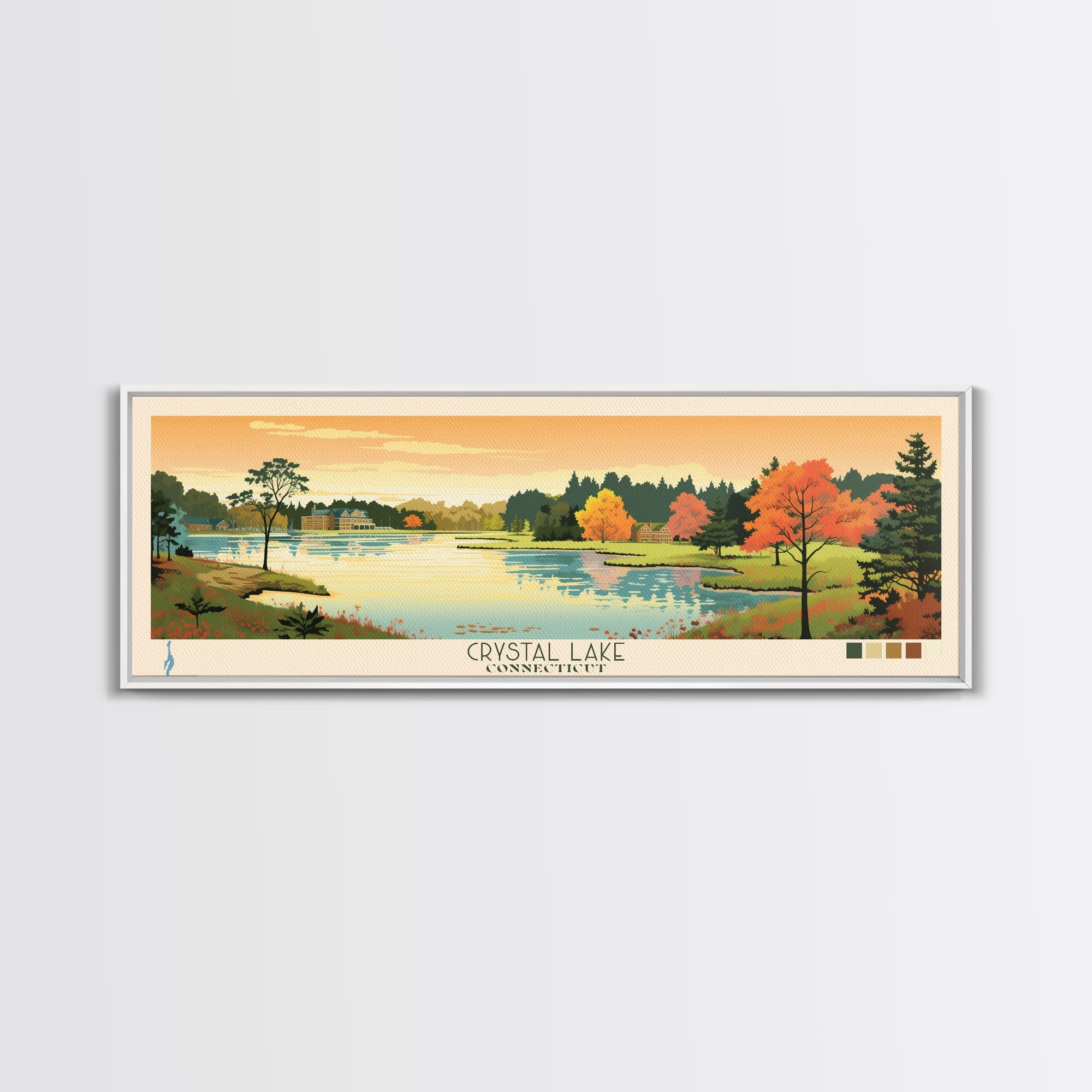 Crystal Lake Connecticut Framed Canvas Print, Pop Art Panoramic Travel Poster, Midcentury Modern, Wall Art, Scenic Nature Painting, Bedroom Decor, Living Room Art