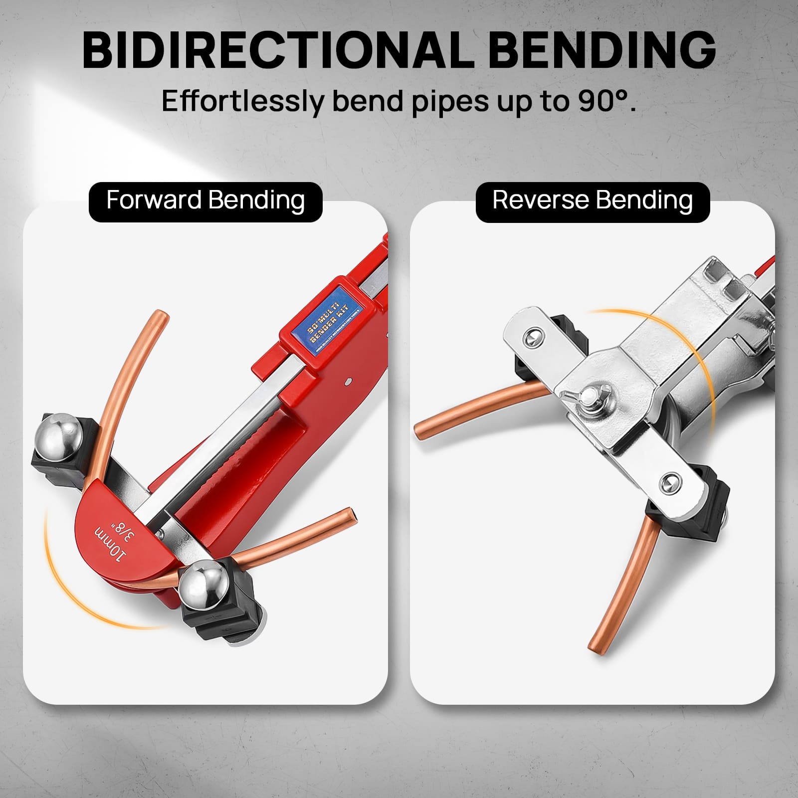 - Dual-Direction Bending: Features a ratchet mechanism for effortless single-handed operation; includes a reverse bending tool for both forward and reverse bends up to 90°