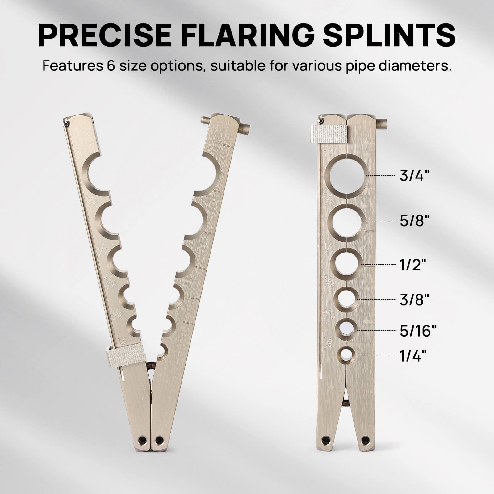 - User-Friendly Design: The splint features size marker lines and recessed holes; works with the positioning ball to ensure accurate tube placement for precise flaring results; the clutch on the top knob automatically disengages after flaring