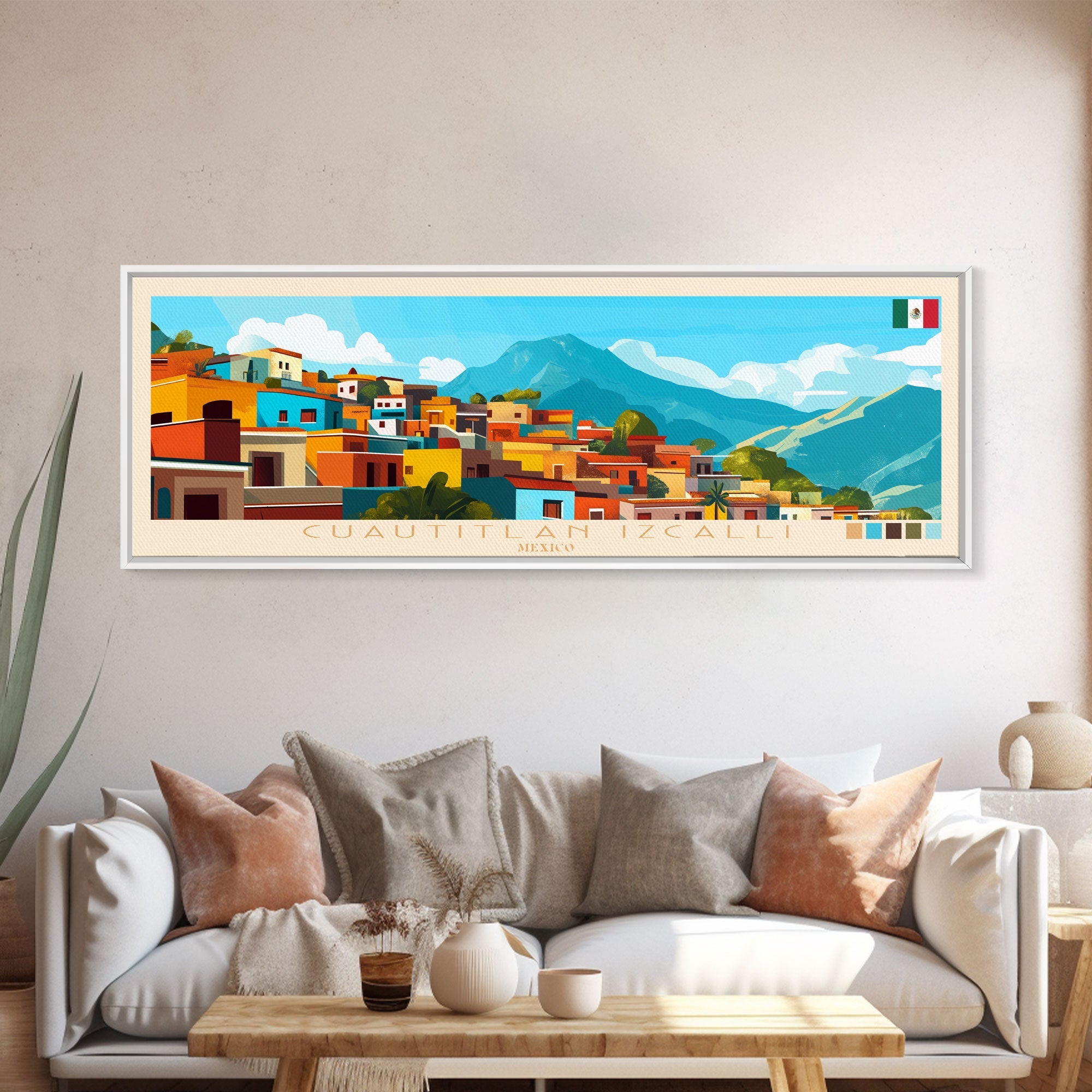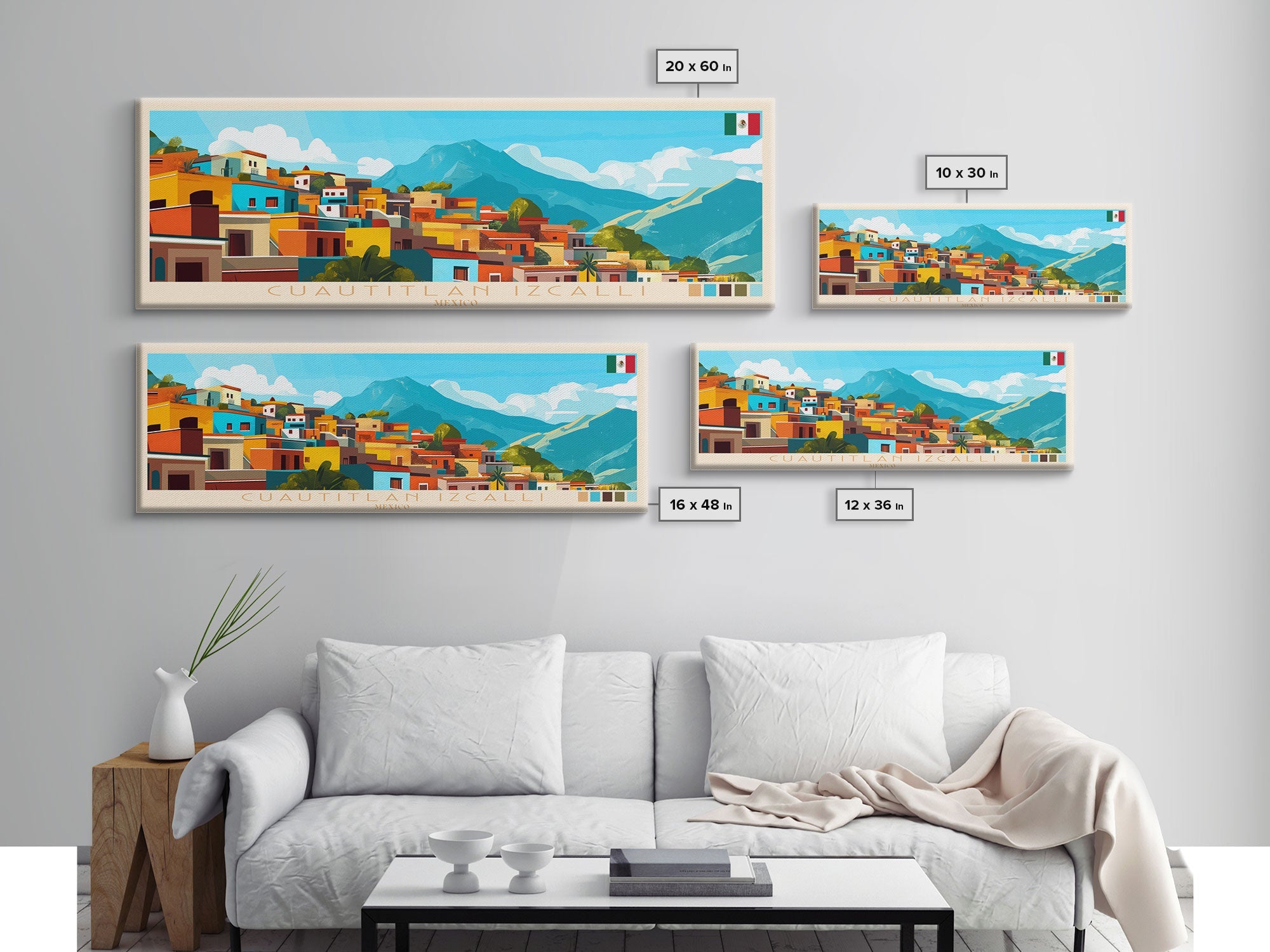 Cuautitlan Izcalli, Mexico Panoramic Travel Poster Canvas Print, Cuautitlan Izcalli, Mexico Painting, Mexico Art, Cuautitlan Izcalli Panoramic Travel Art, Travel Painting