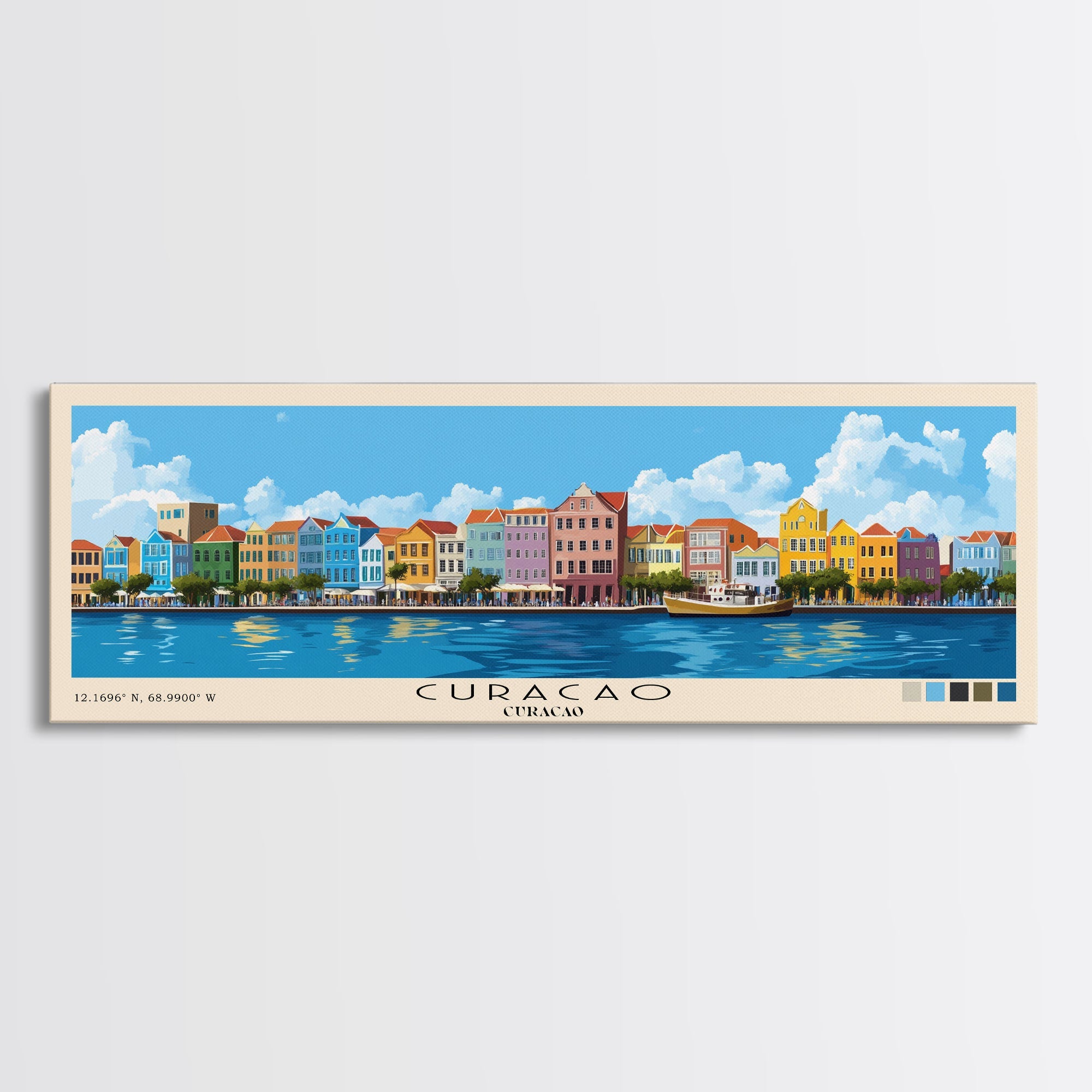 Curacao, Curacao Panoramic Print, Vacation Gift, Curacao Wall Art, Beach Painting, Beach Decor, Beach Or Lakehouse Art