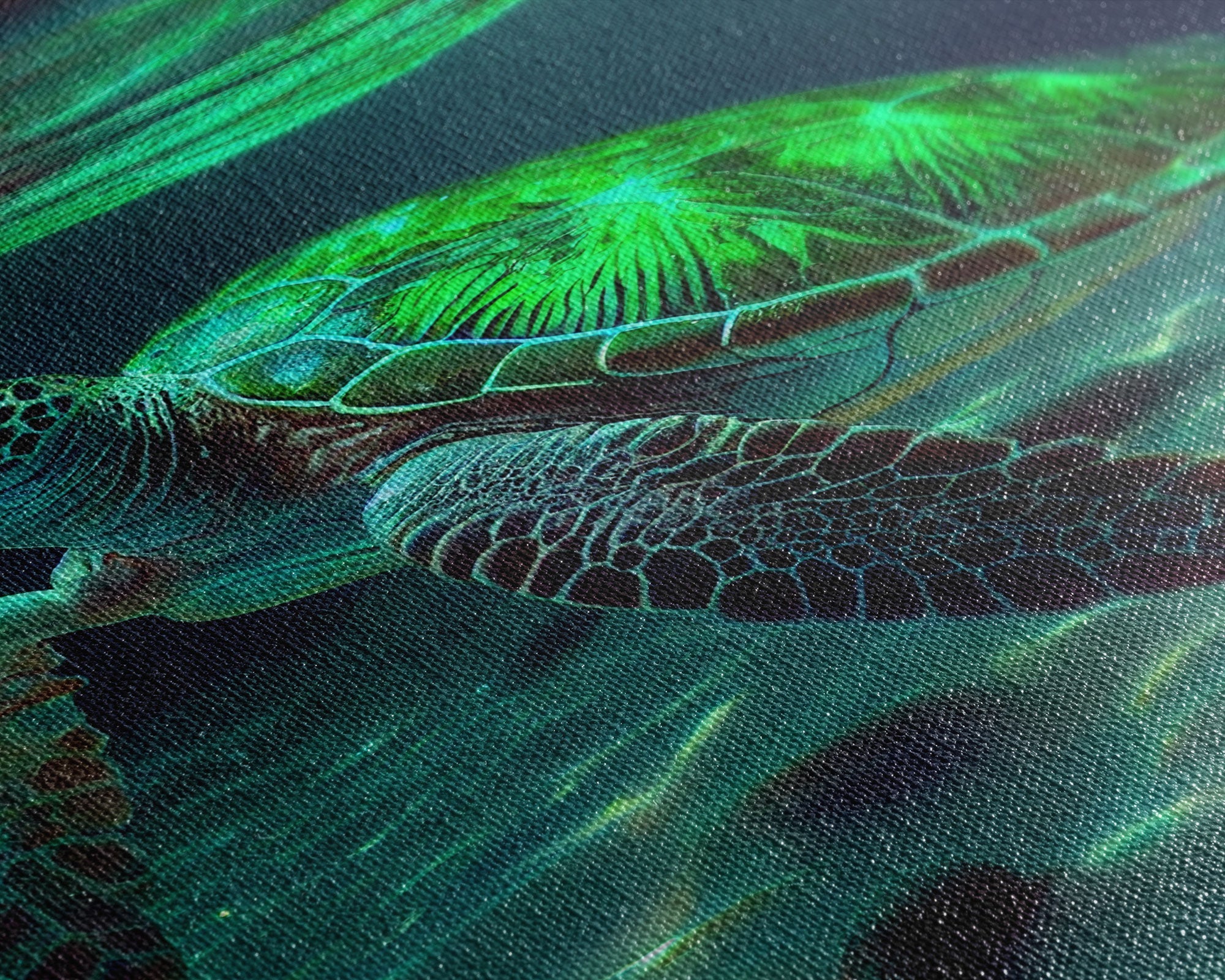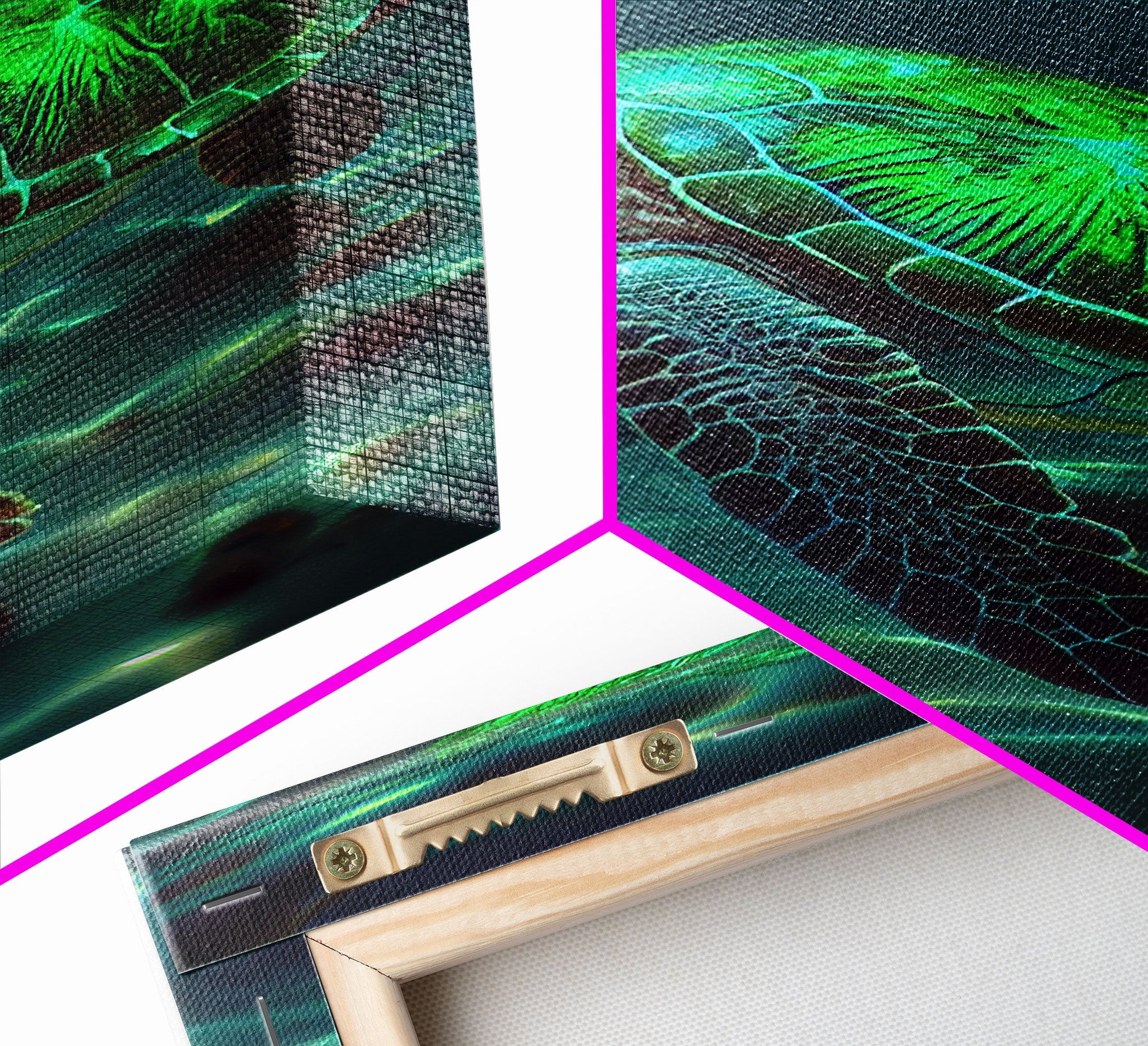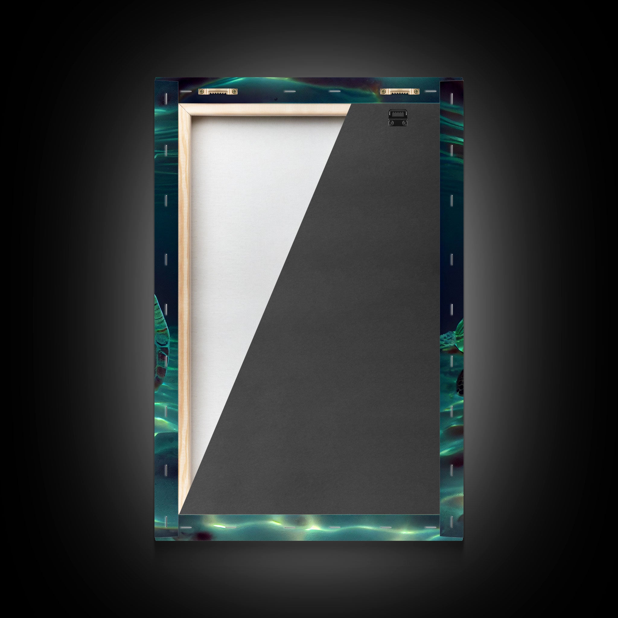 Cute Sea Turtles swimming in the ocean, sea turtle wall decor, framed canvas print