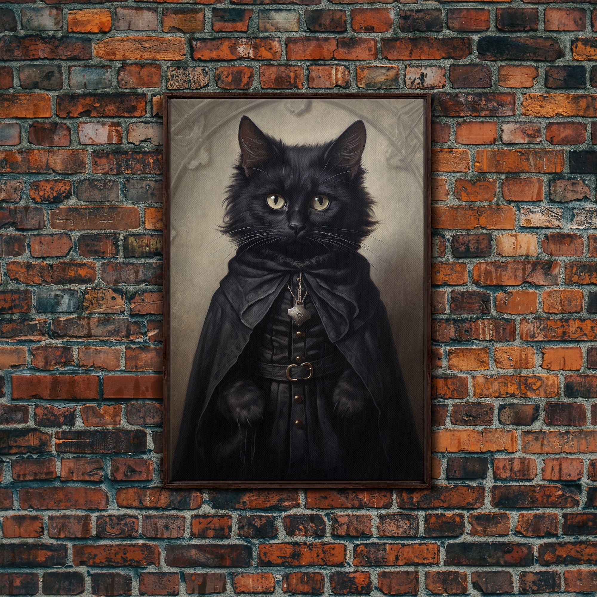Cute Victorian Cat Portrait, Halloween Decor, Oil Painting Of A Gothic Victorian Cat, Halloween Wall Art, Framed Canvas Print