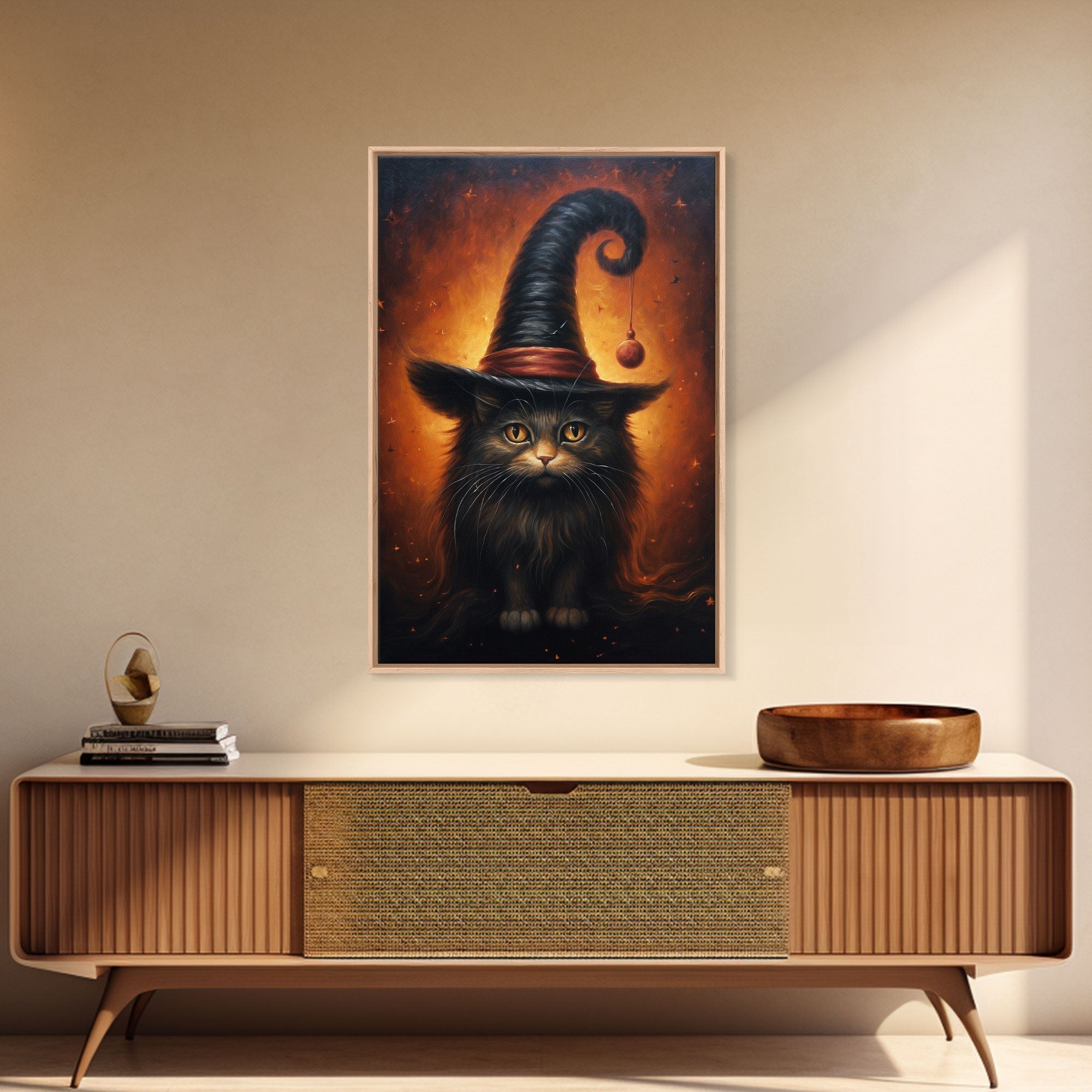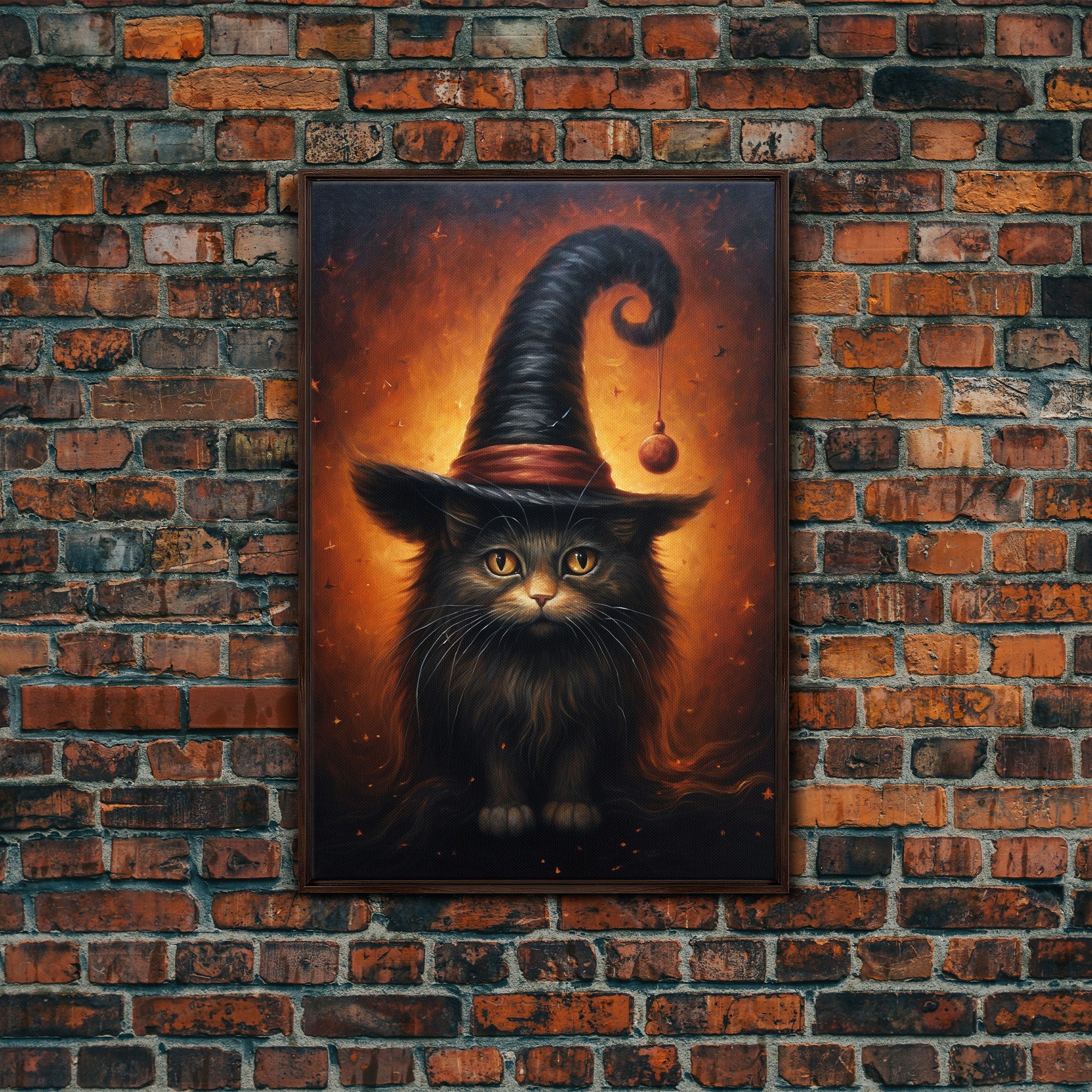 Cute Witch's Familiar Cat Halloween Art, Cat Witch, Cat Painting, Cute Cat Print, Halloween Decor