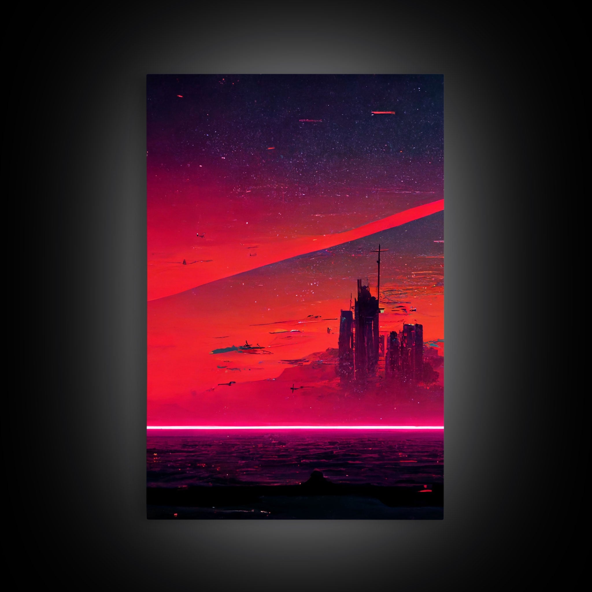 Cyber punk City At Sunset, Outrun, 3 Piece Wall Art, Ready To Hang Canvas Print, Cool Unique Mancave wall Art Decor