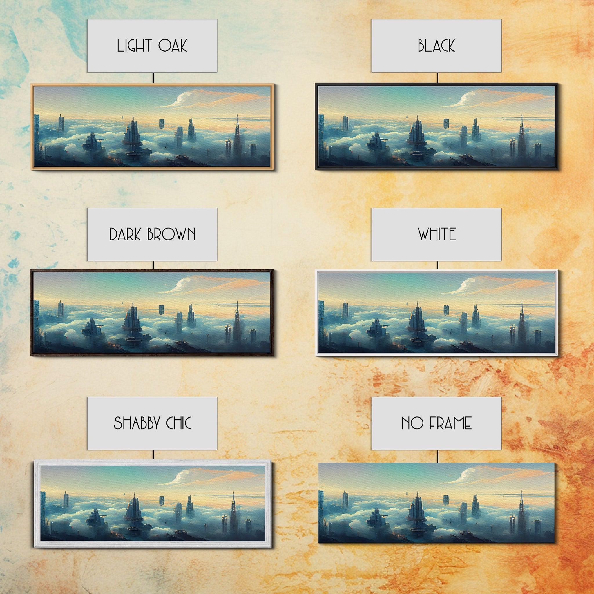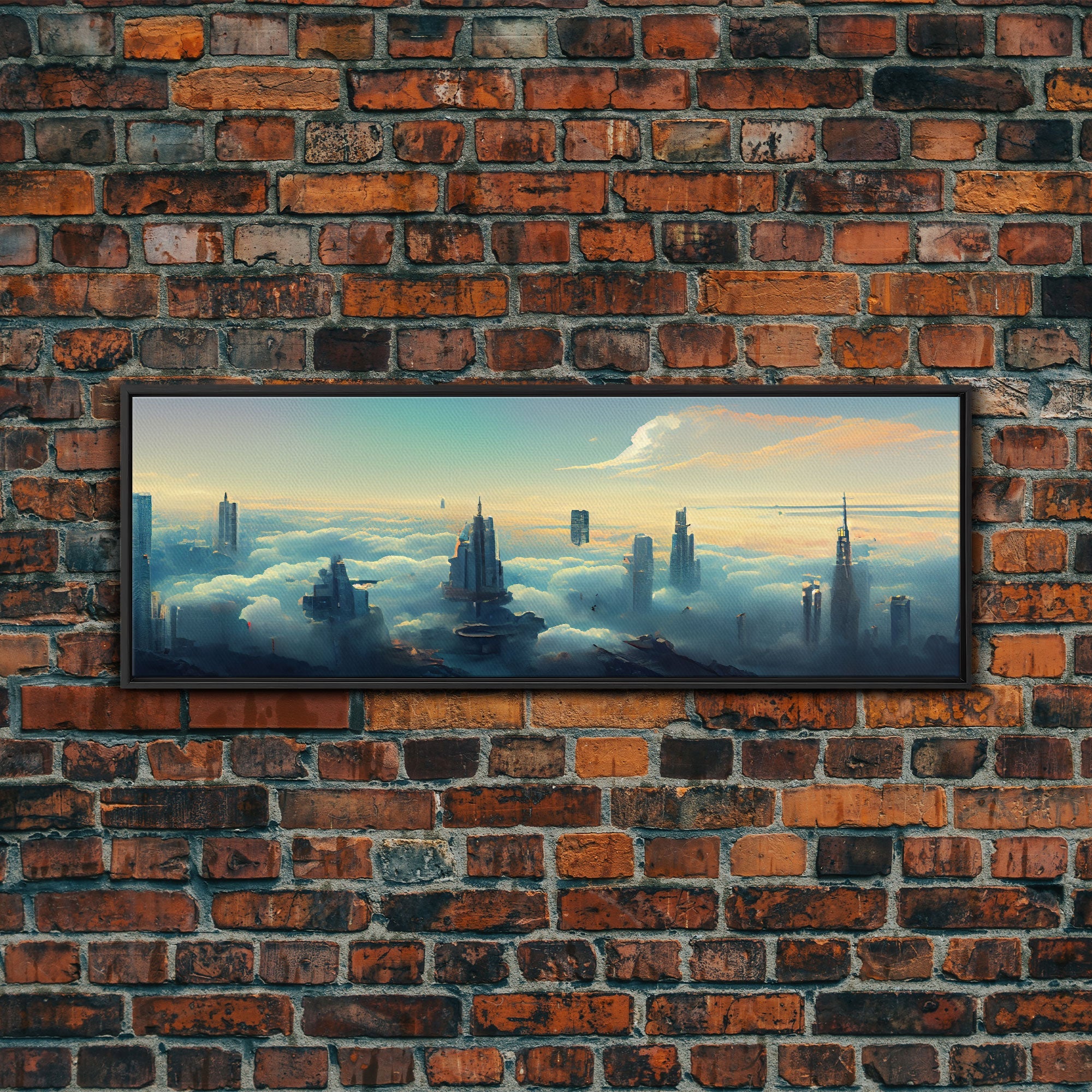 Cyberpunk City Above The Clouds, Futuristic Metropolis, Extra Large Wall Art, Framed Panoramic Canvas Print, Framed Wall Decor