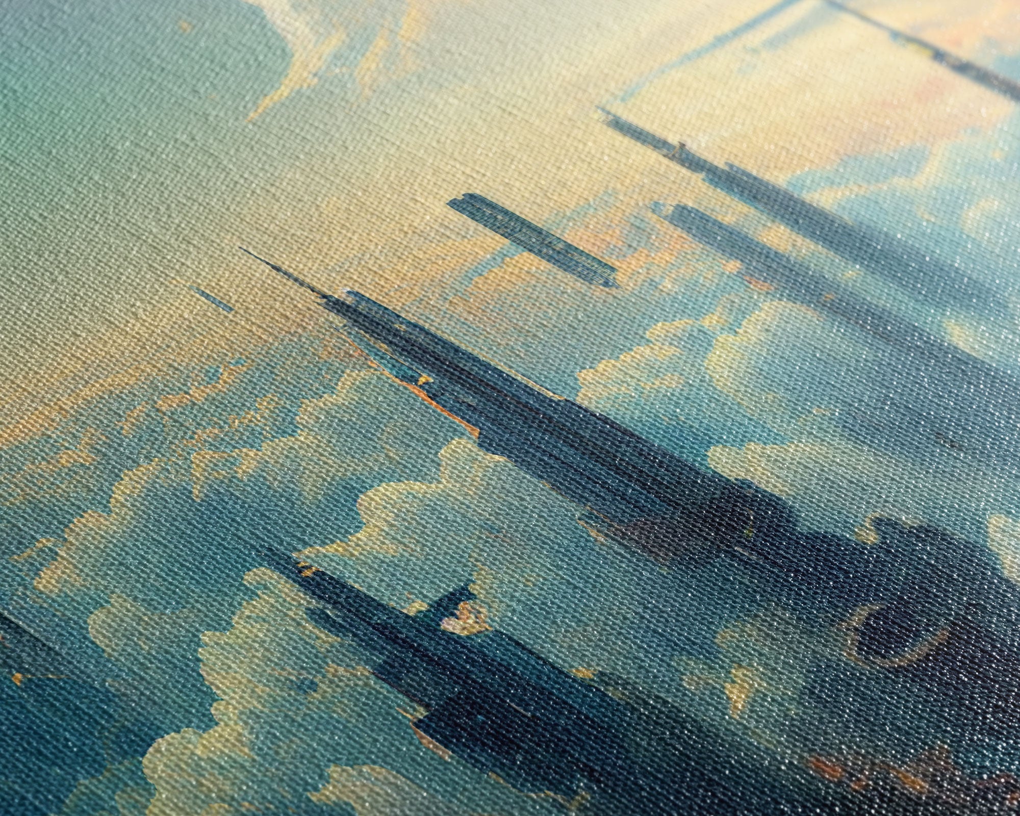 Most of our canvases are made in the USA, with the exception of canvases ordered with the light oak unstained frames, and any large canvases (24x48, 30x60, 16x48 and 20x60) ordered WITH a frame. These are temporarily made in and shipped from Europe, while we try to find a more consistent supplier in the USA.