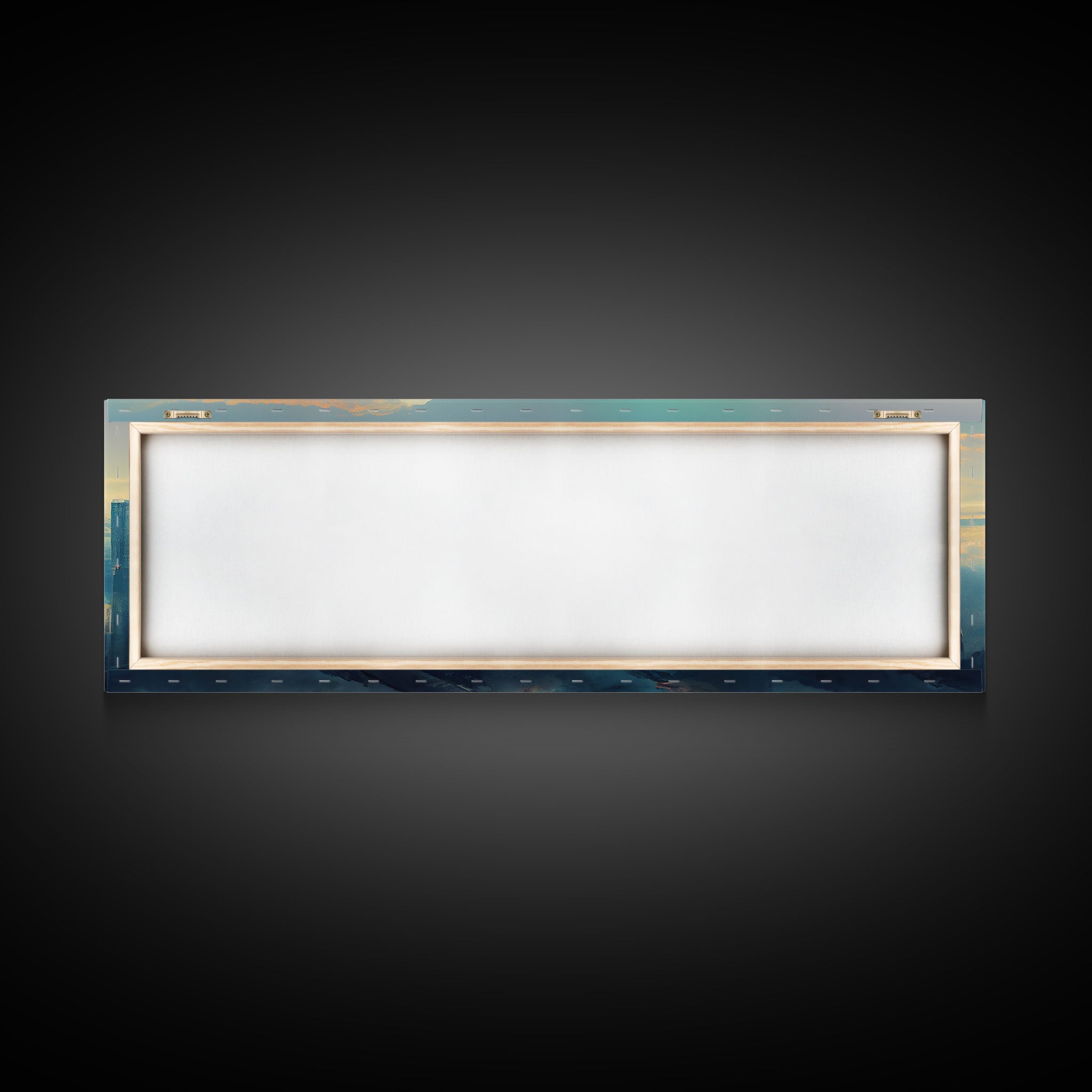 • Load image into Gallery viewer, Cyberpunk City Above The Clouds, Futuristic Metropolis, Extra Large Wall Art, Framed Panoramic Canvas Print, Framed Wall Decor