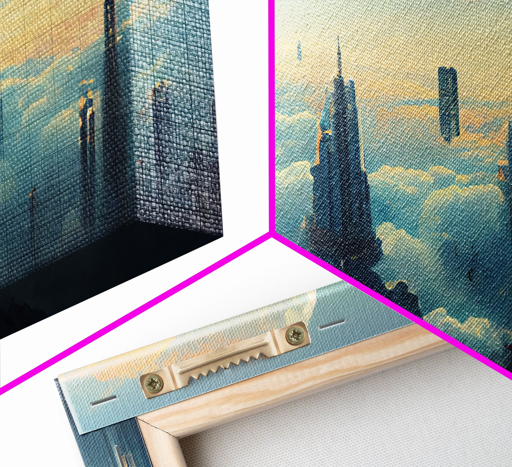 *SHIPPING: Every canvas is carefully wrapped in bubble wrap and foam corner protectors, and shipped fully assembled and ready to hang with sawtooth hangers in a flat box. All you need is a hammer!