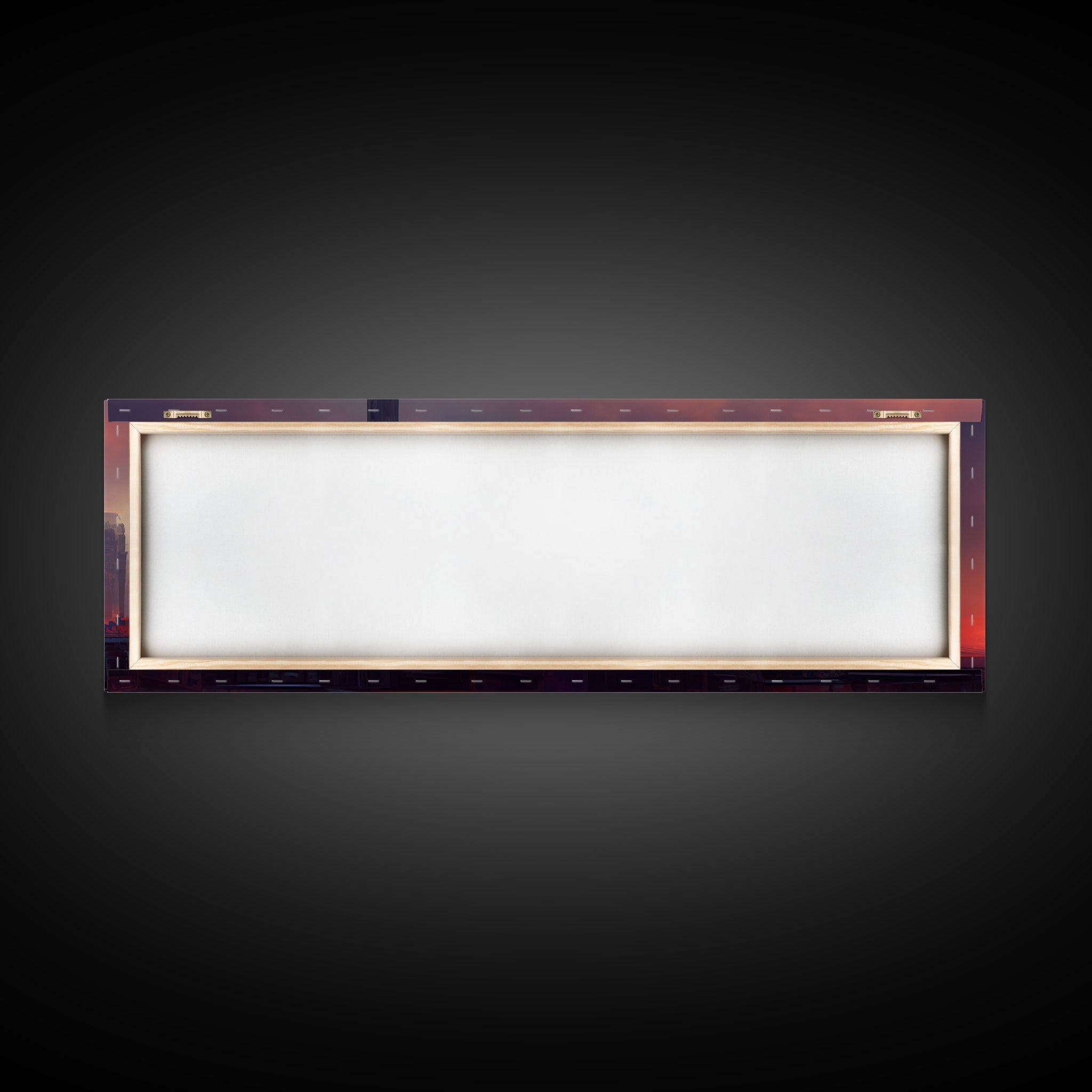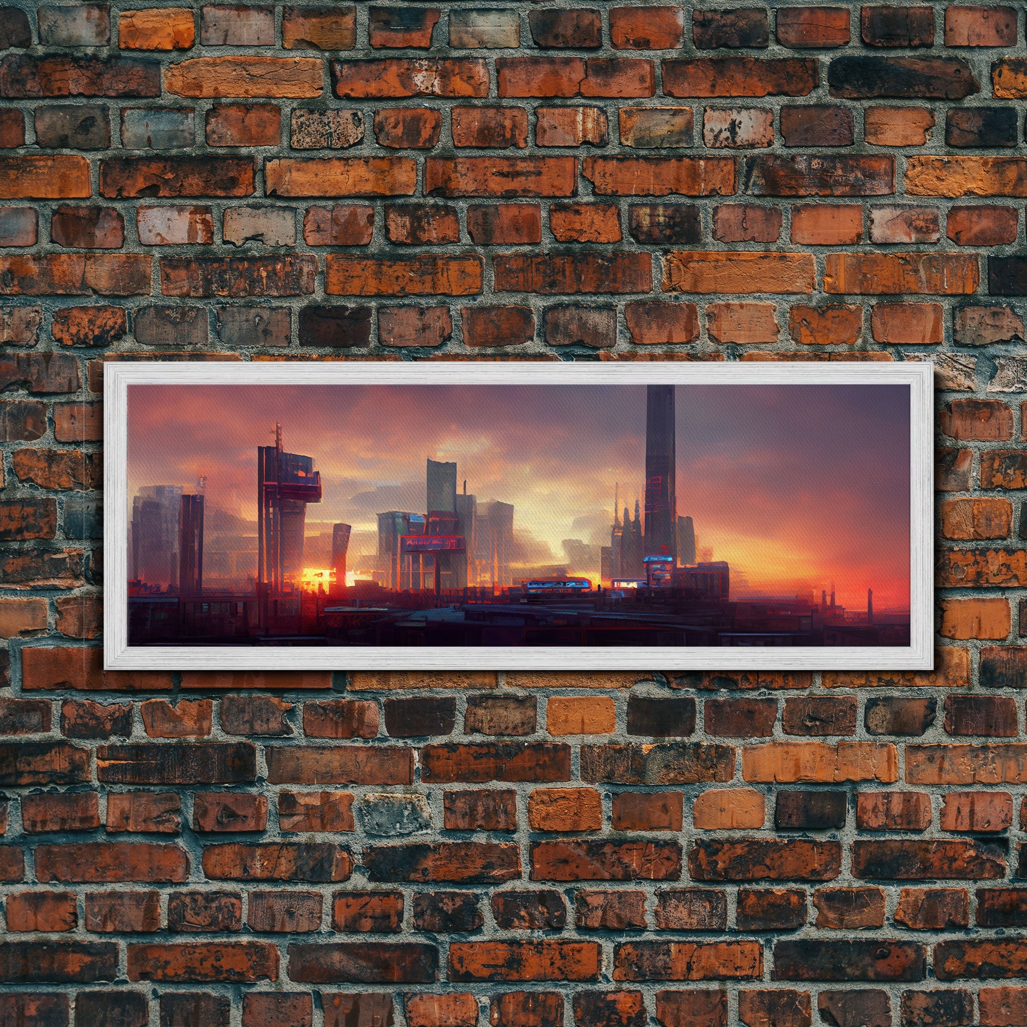 Cyberpunk Cityscape, Metropolis Art, Ready To Hang Canvas Print, Panoramic, Night City Watercolor Concept Art