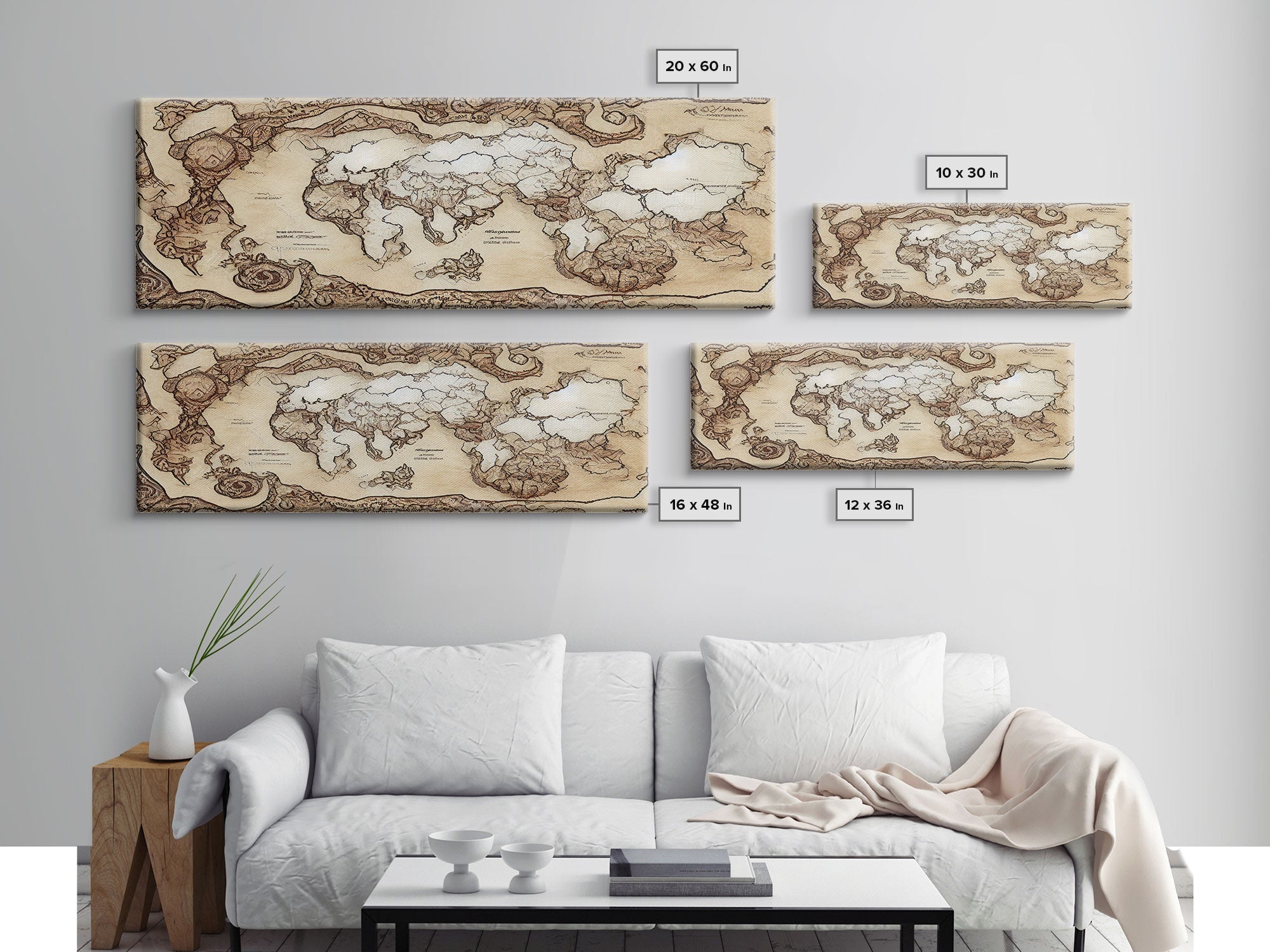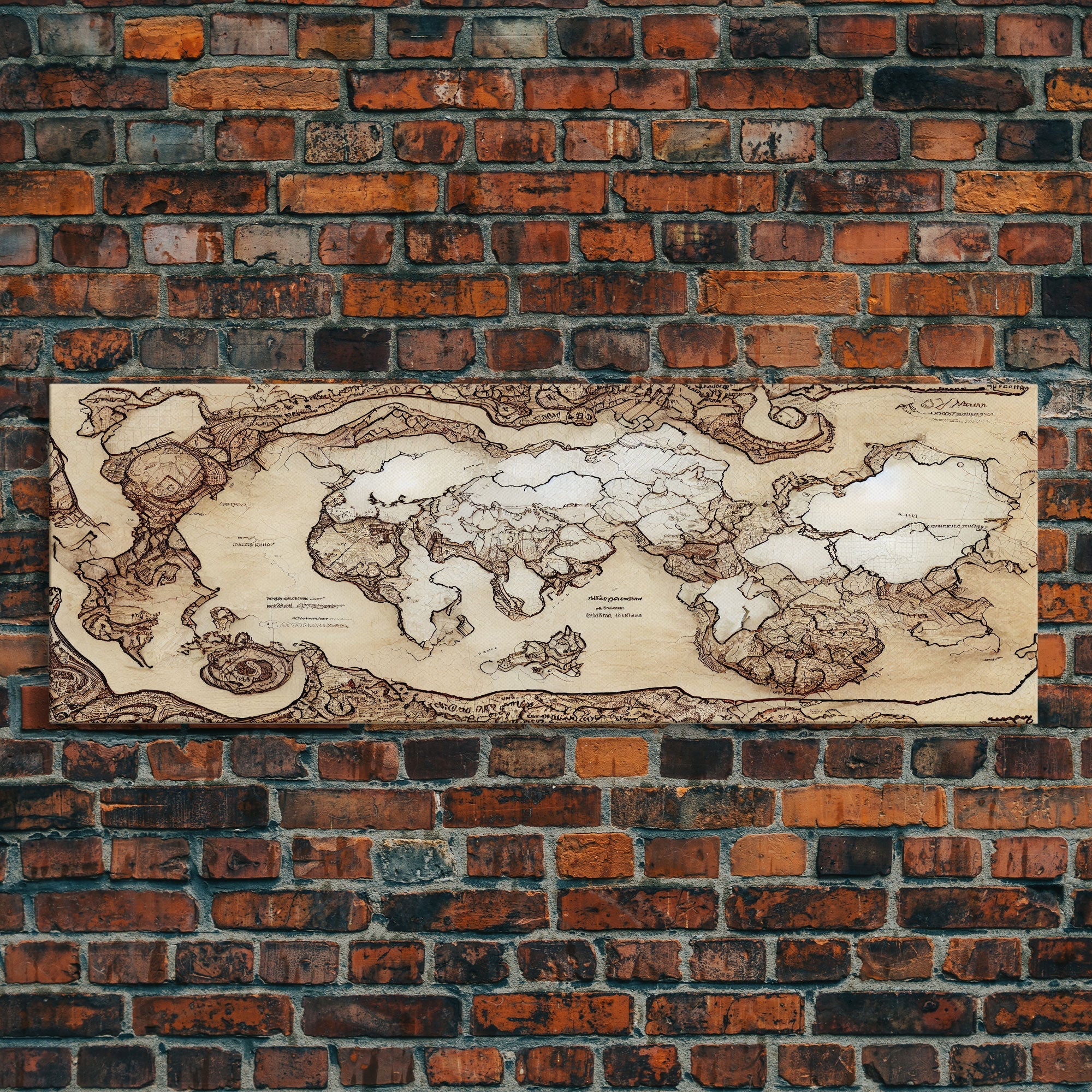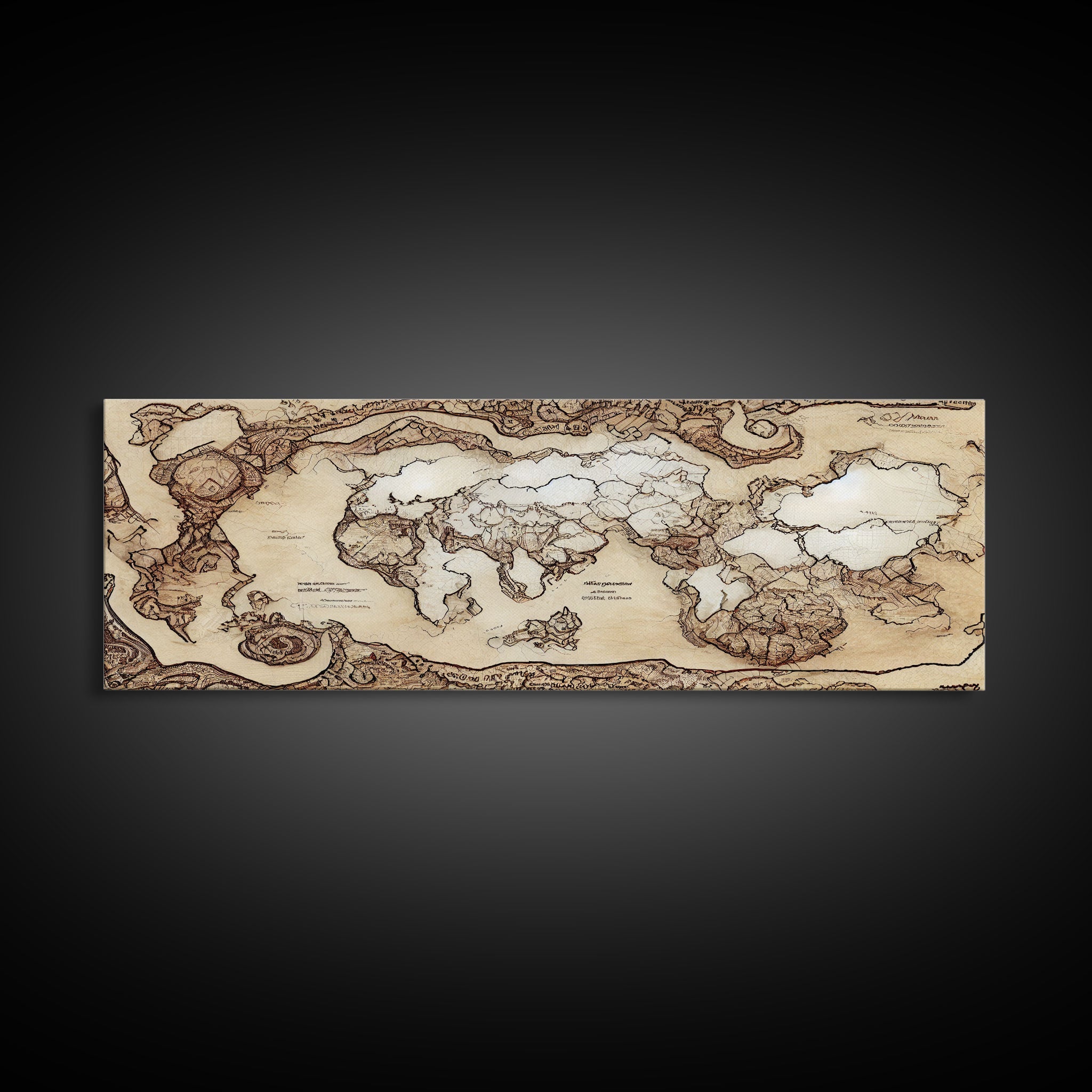 D&D RPG World Map Concept Art, Ready To Hang Canvas Print, Panoramic Art, Extra Wide Wall Decor, Cool Mancave Art, DND