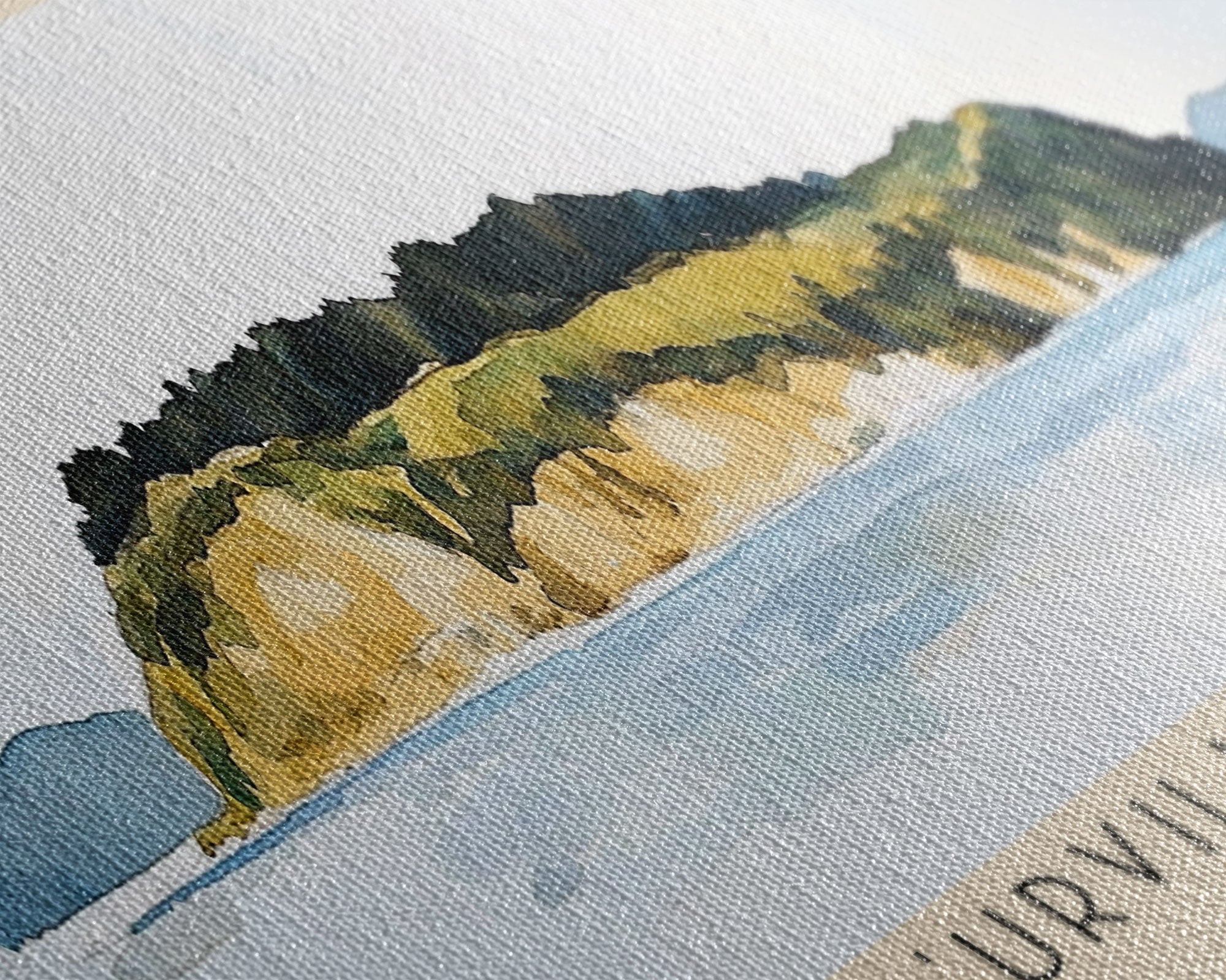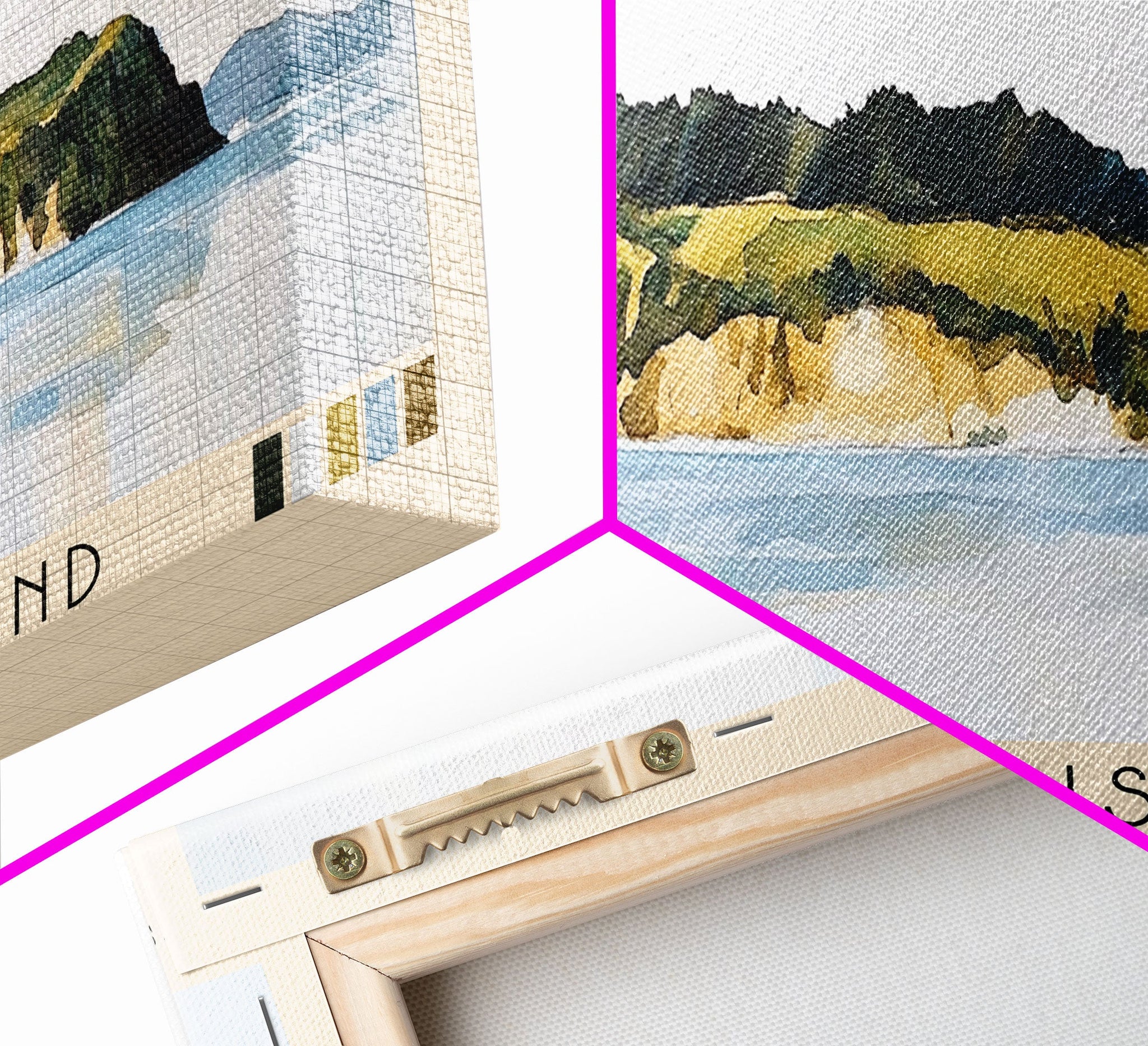 D’Urville Island, New Zealand Watercolor Beach Print, Vacation Gift, New Zealand Wall Art, Framed Canvas Print, Framed Beach Painting