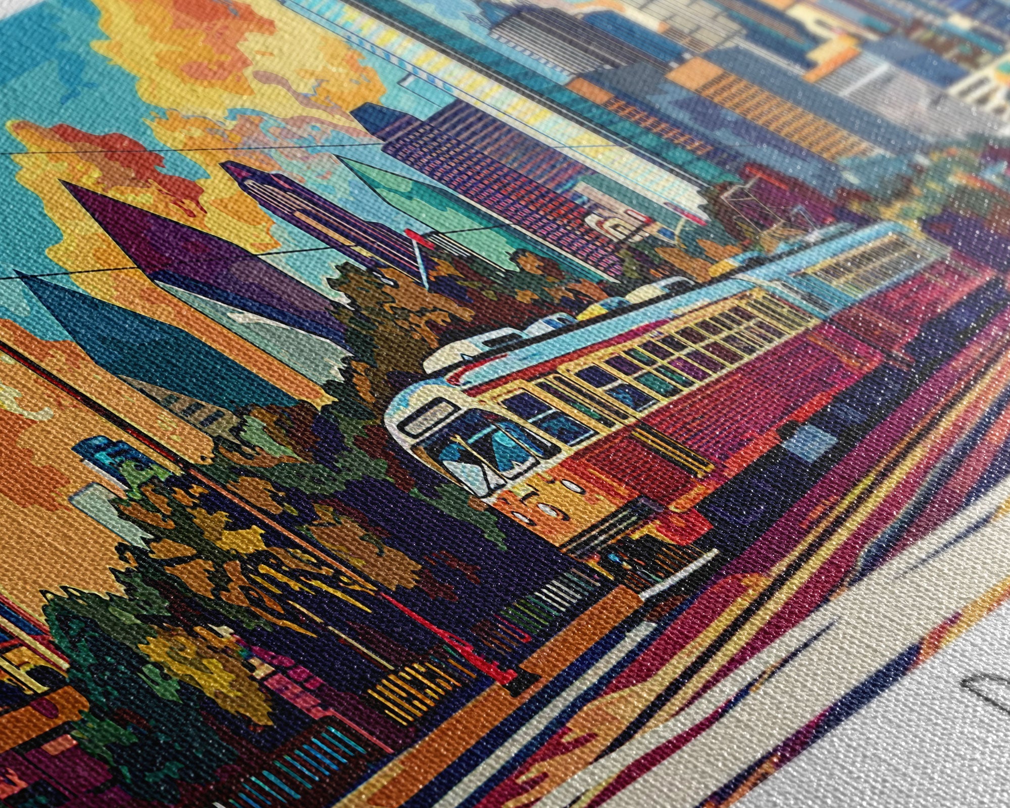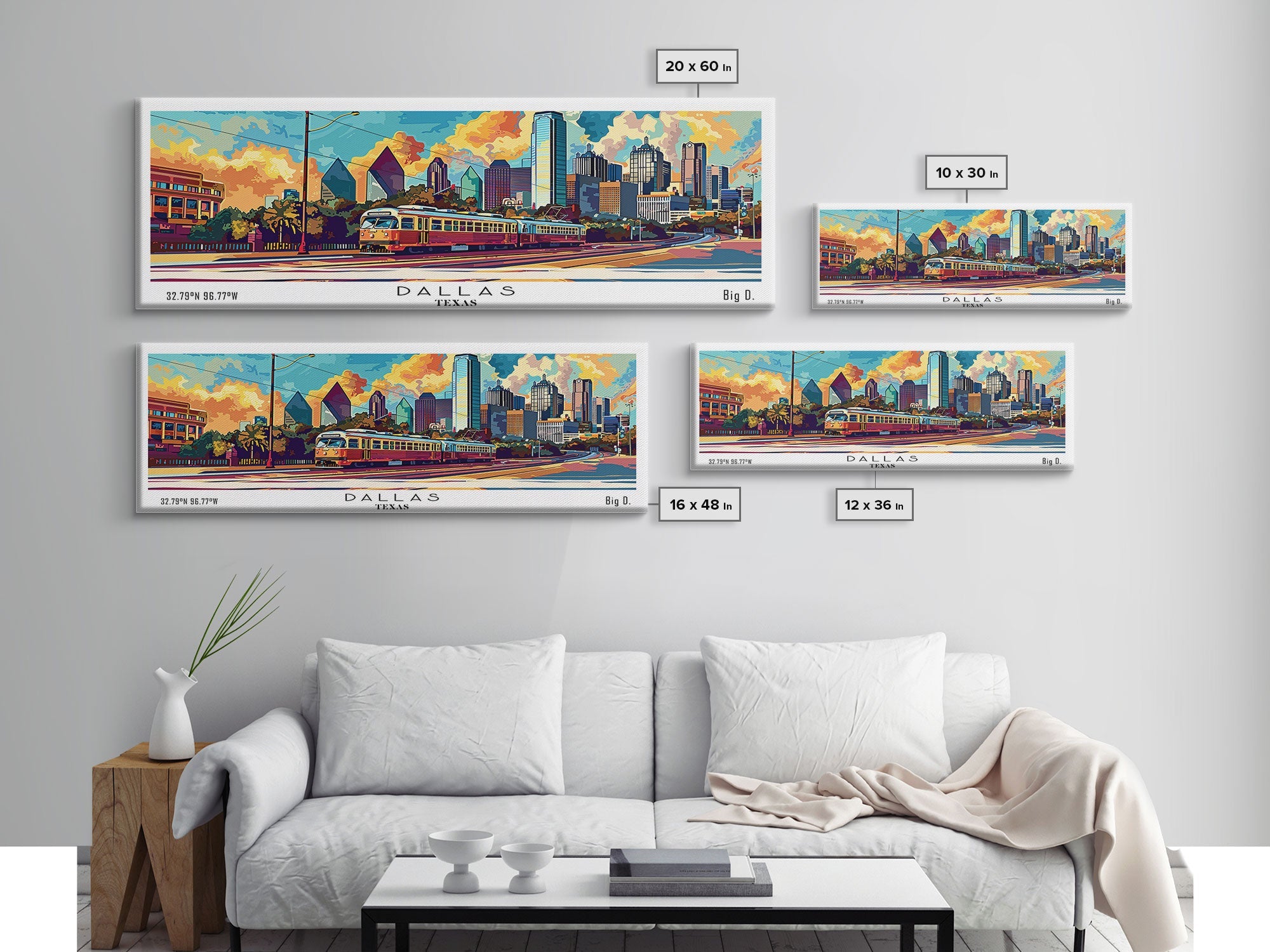 Dallas Texas Panoramic Wall Art Framed Canvas Print, Mid Century Modern Art, Pop Art Style, Travel Poster, Home Decor, Wall Hanging