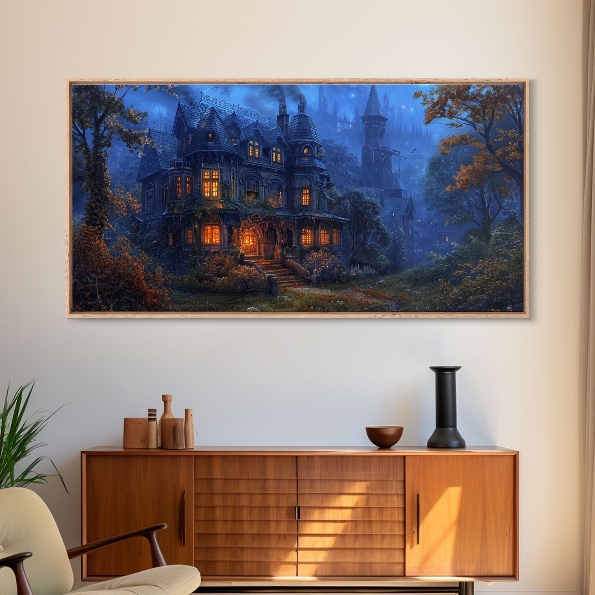 Dark Academia Victorian Mansion Framed Canvas Print, Victorian Oil Painting, Spooky Vibes Halloween Wall Art