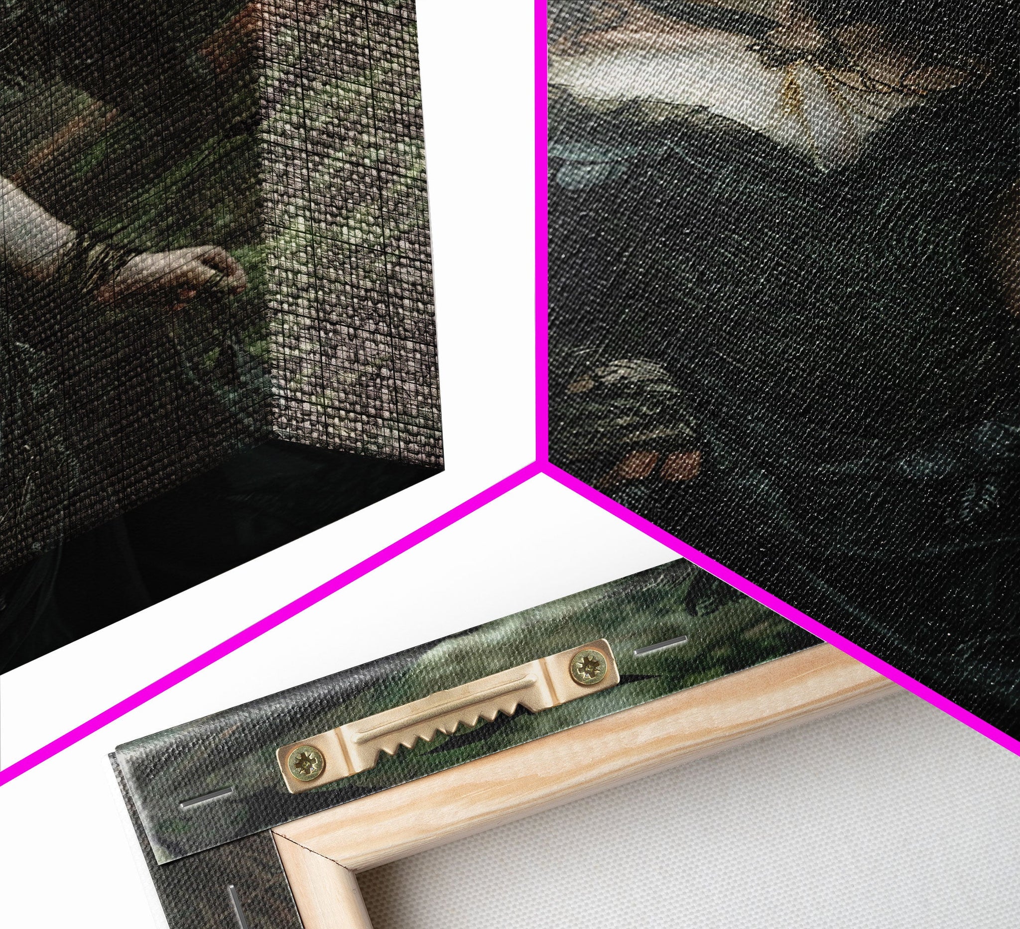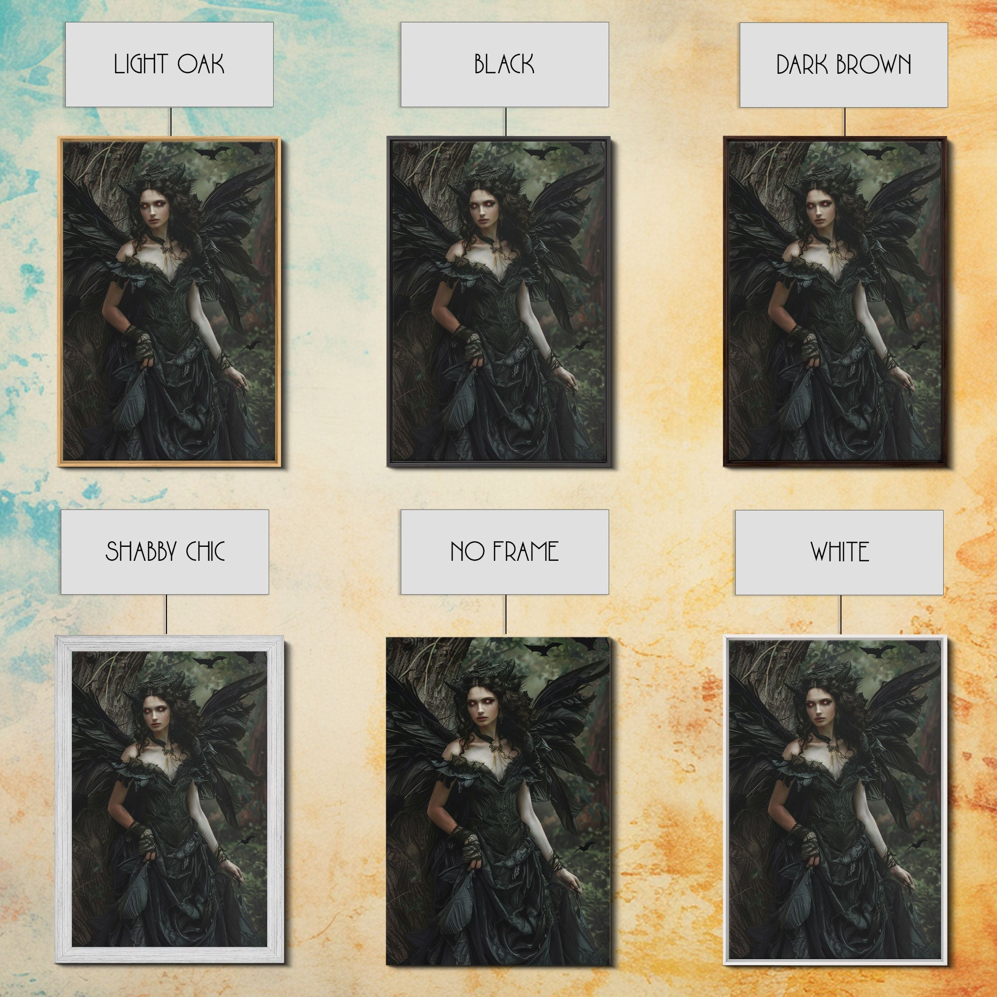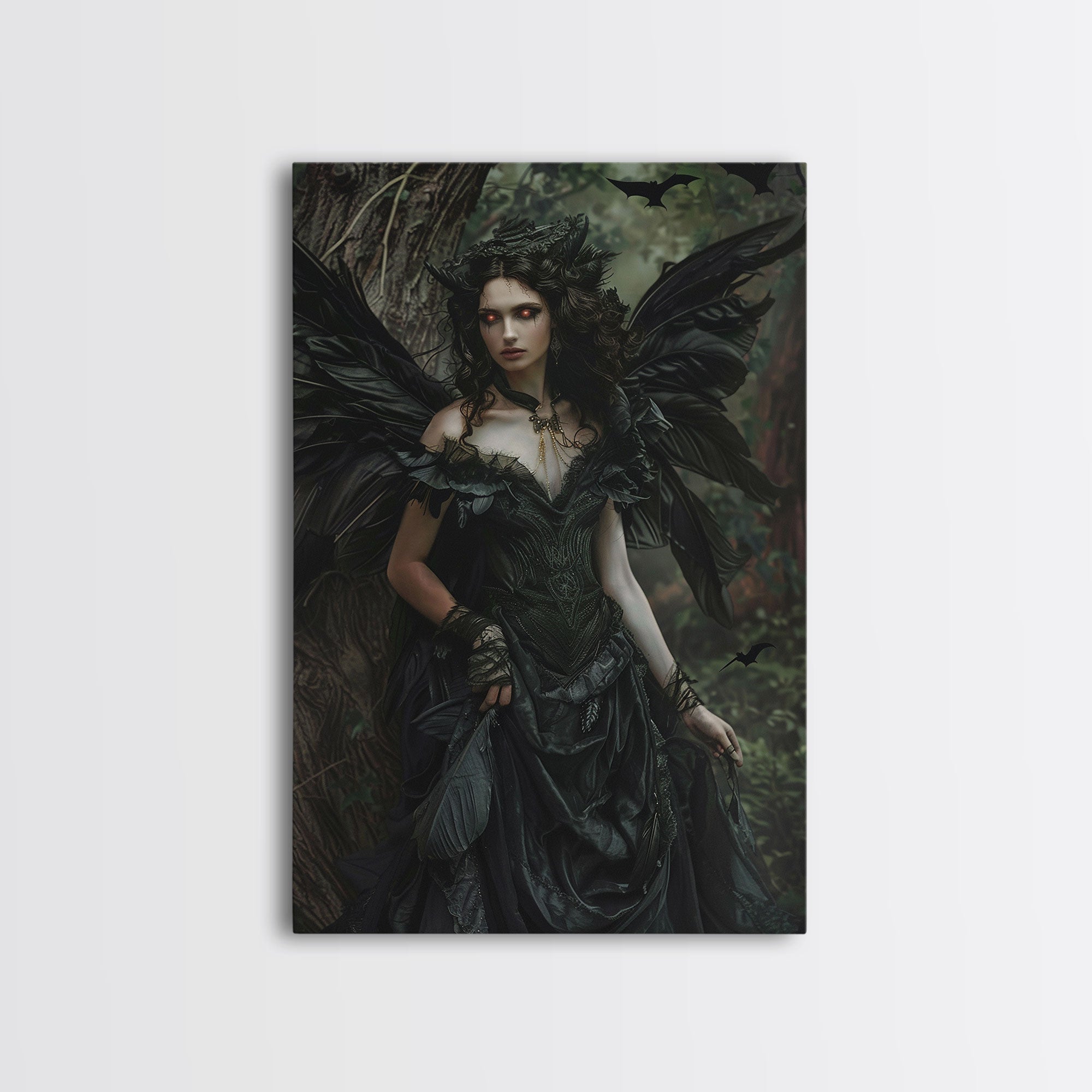 Dark Angel with Glowing Eyes in Haunted Forest - Mysterious Gothic Framed Canvas Print, Halloween Wall Art Decor