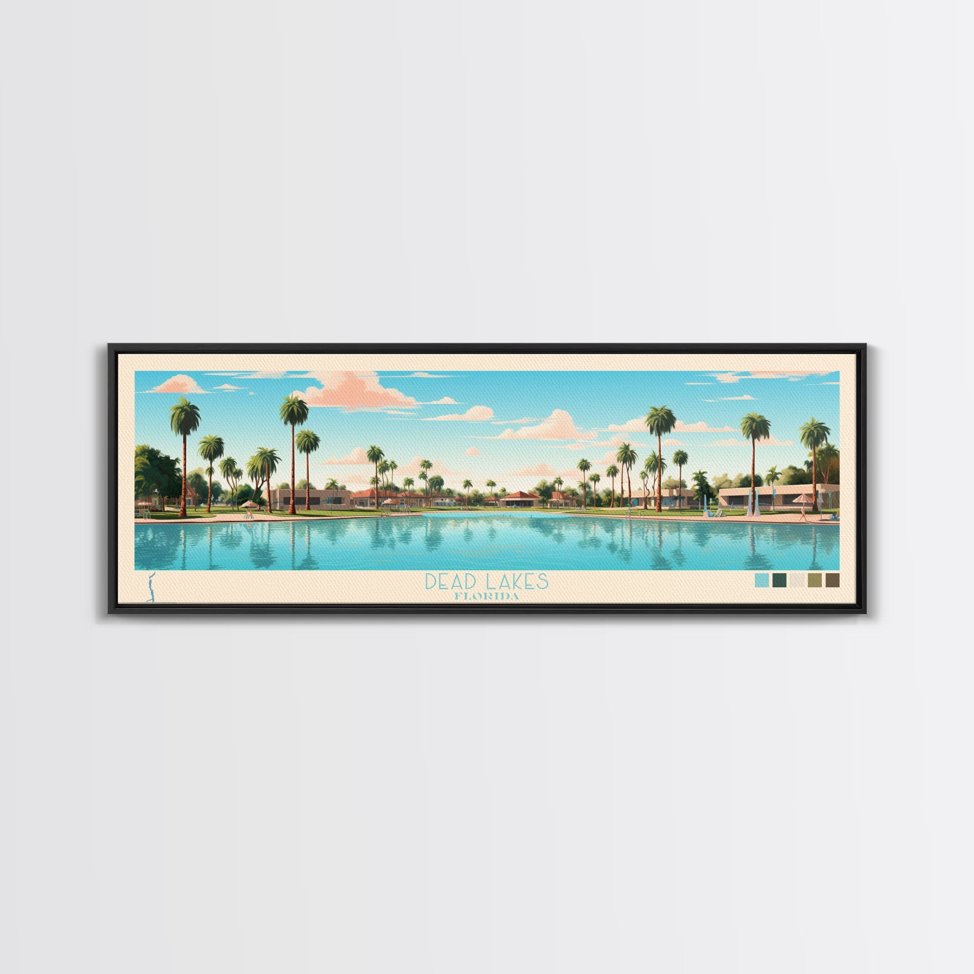 Dead Lakes Florida Framed Canvas Print, Midcentury Modern Panoramic Wall Art, Bedroom Decor, Pop Art, Travel Poster Art, Scenic Nature Painting