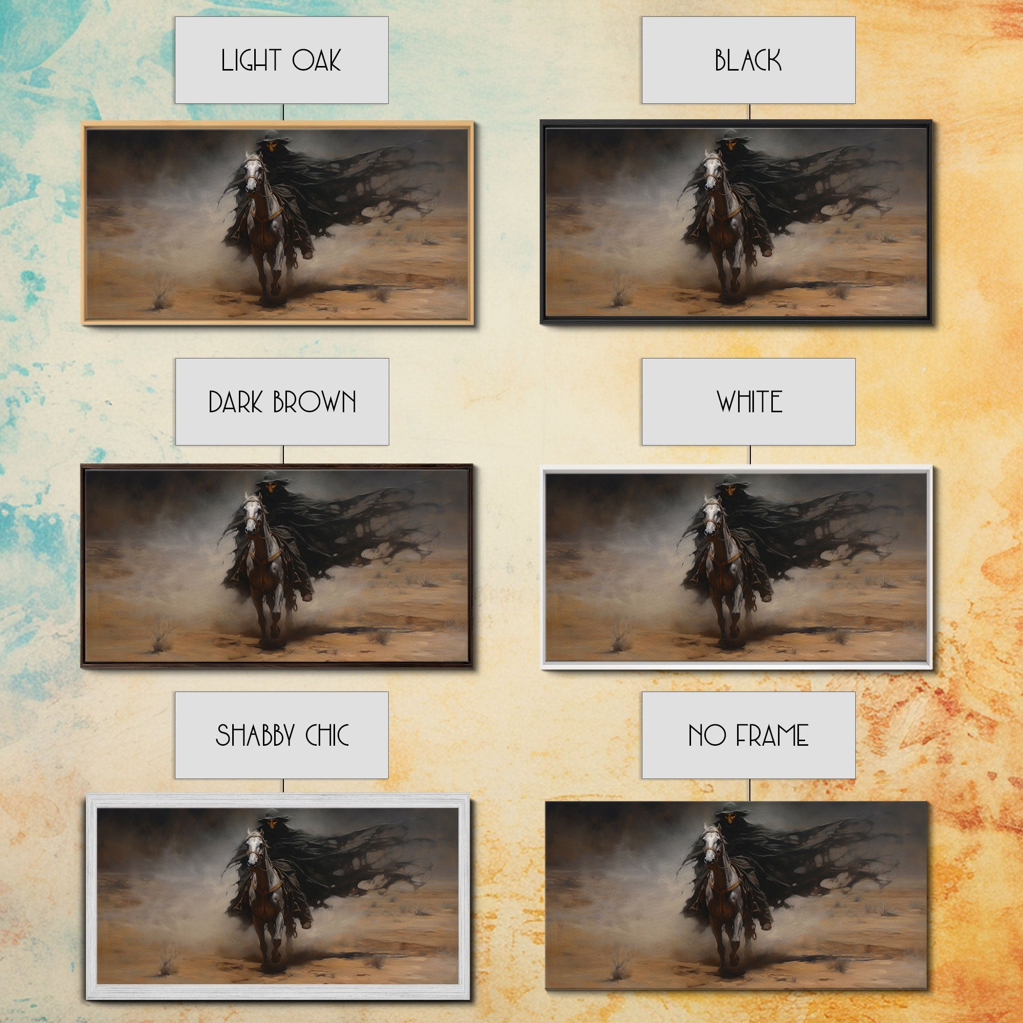 Death Rides A Pale Horse, Framed Canvas Print, Cowboy Grim Reaper, Spooky Halloween Art Print