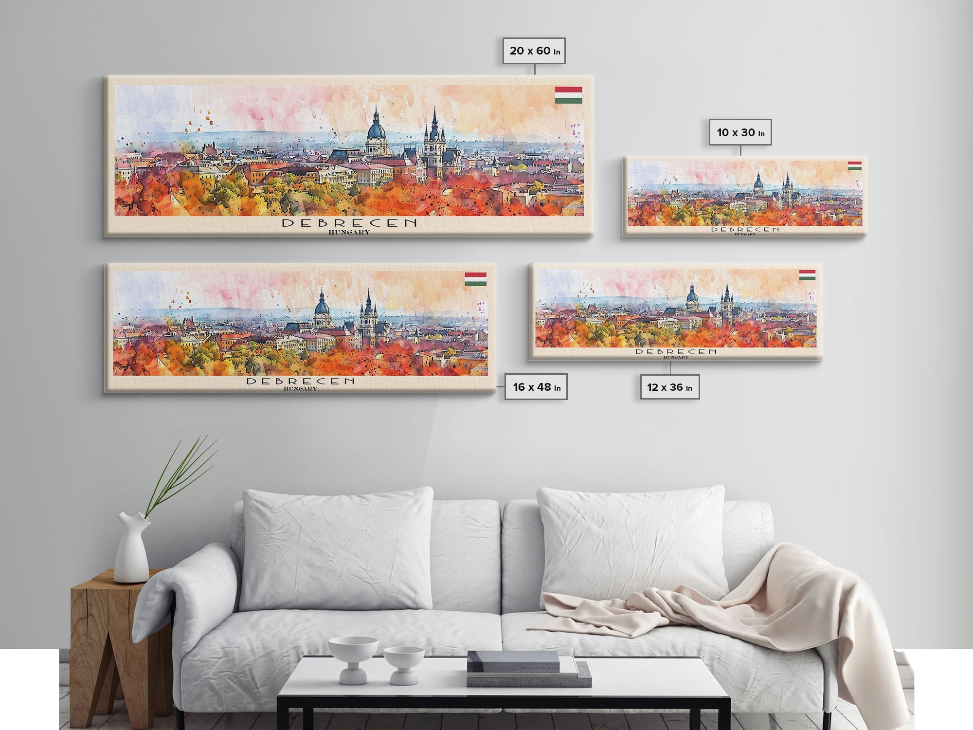 Debrecen Hungary Panoramic Travel Poster, Framed Canvas Print or Metal Wall Art, Travel Art, Home Decor, Panoramic Painting, Midcentury Art