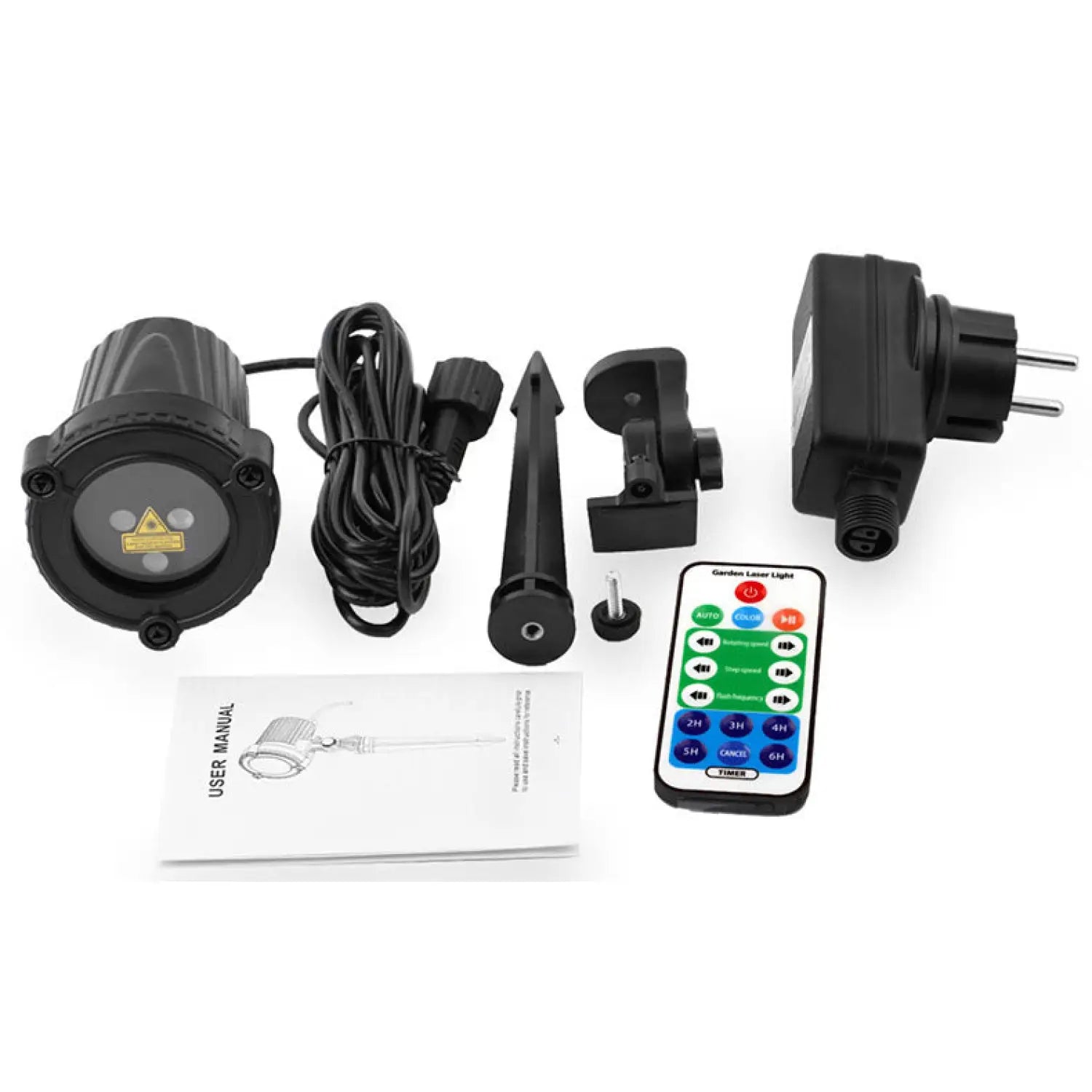The MOD-X12RGB outdoor waterproof laser lamp features a durable rubber construction, vibrant laser functions (red, green, and blue lights), and an IP65 protection grade for all-weather use.