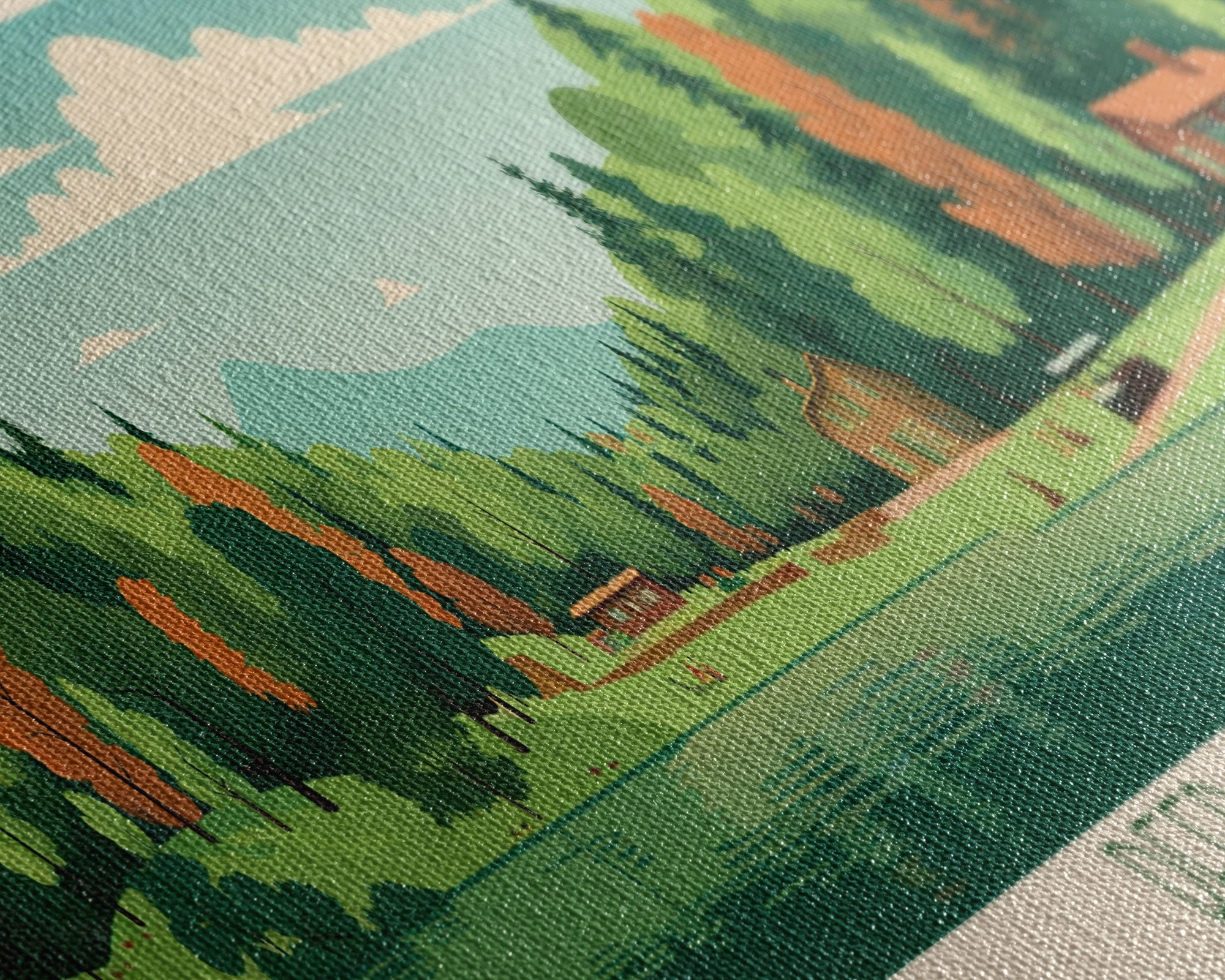Deep Creek Lake Maryland Framed Canvas Print, Midcentury Modern Panoramic Wall Art, Bedroom Decor, Pop Art, Travel Poster Art, Scenic Nature Painting