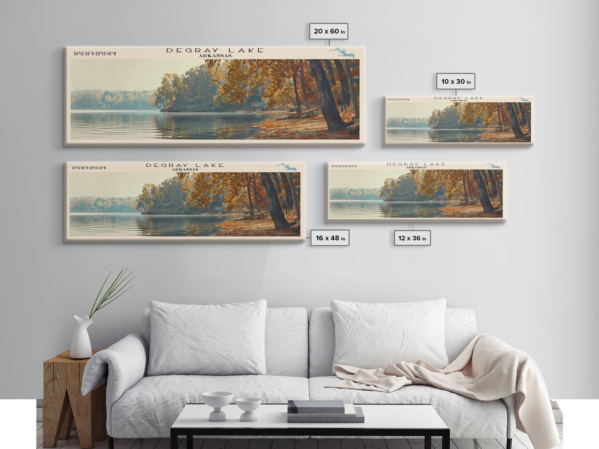 DeGray Lake Arkansas Framed Canvas Print, Lake House Decor, Panoramic Wall Art, Travel Poster, Modern Lake Painting, Nature Art