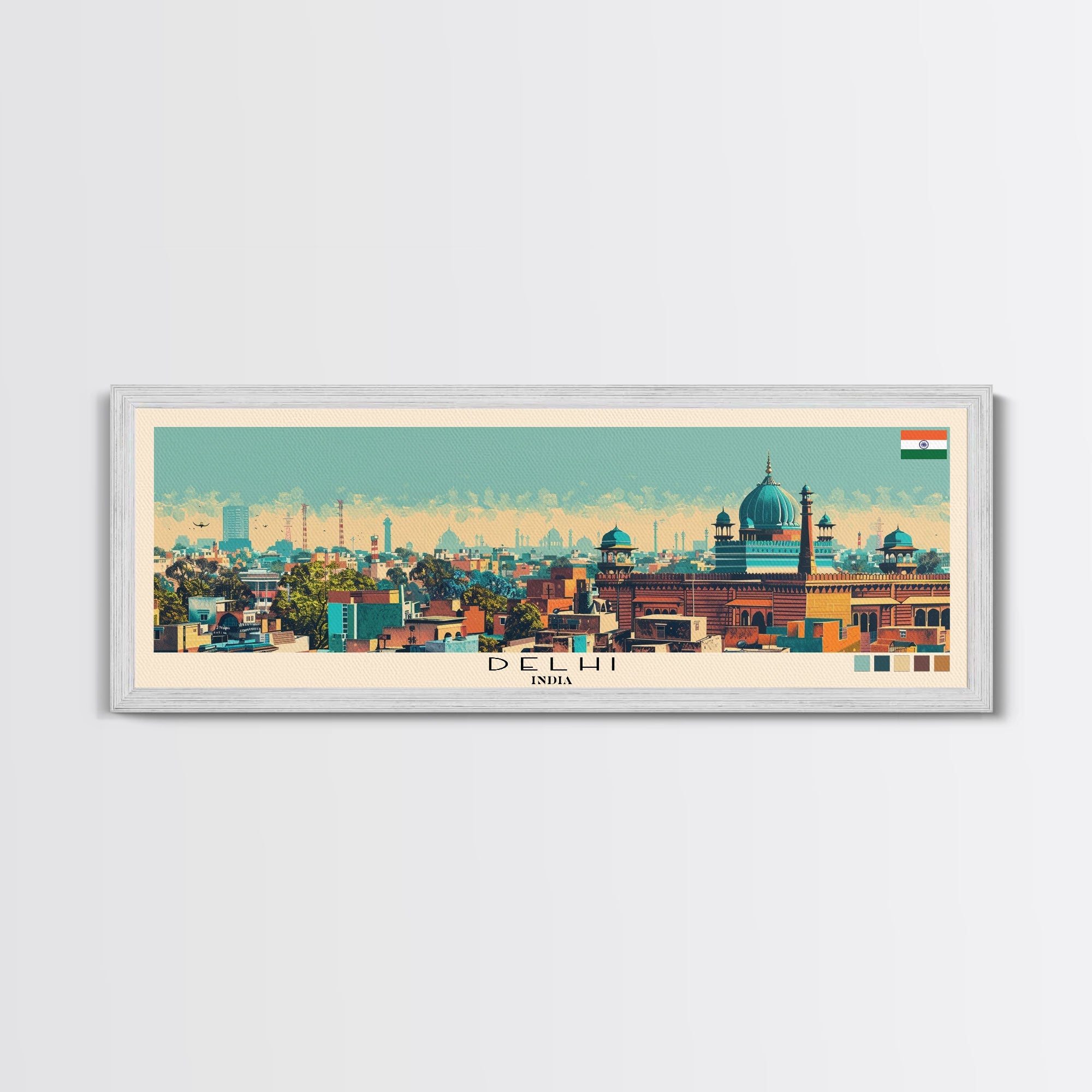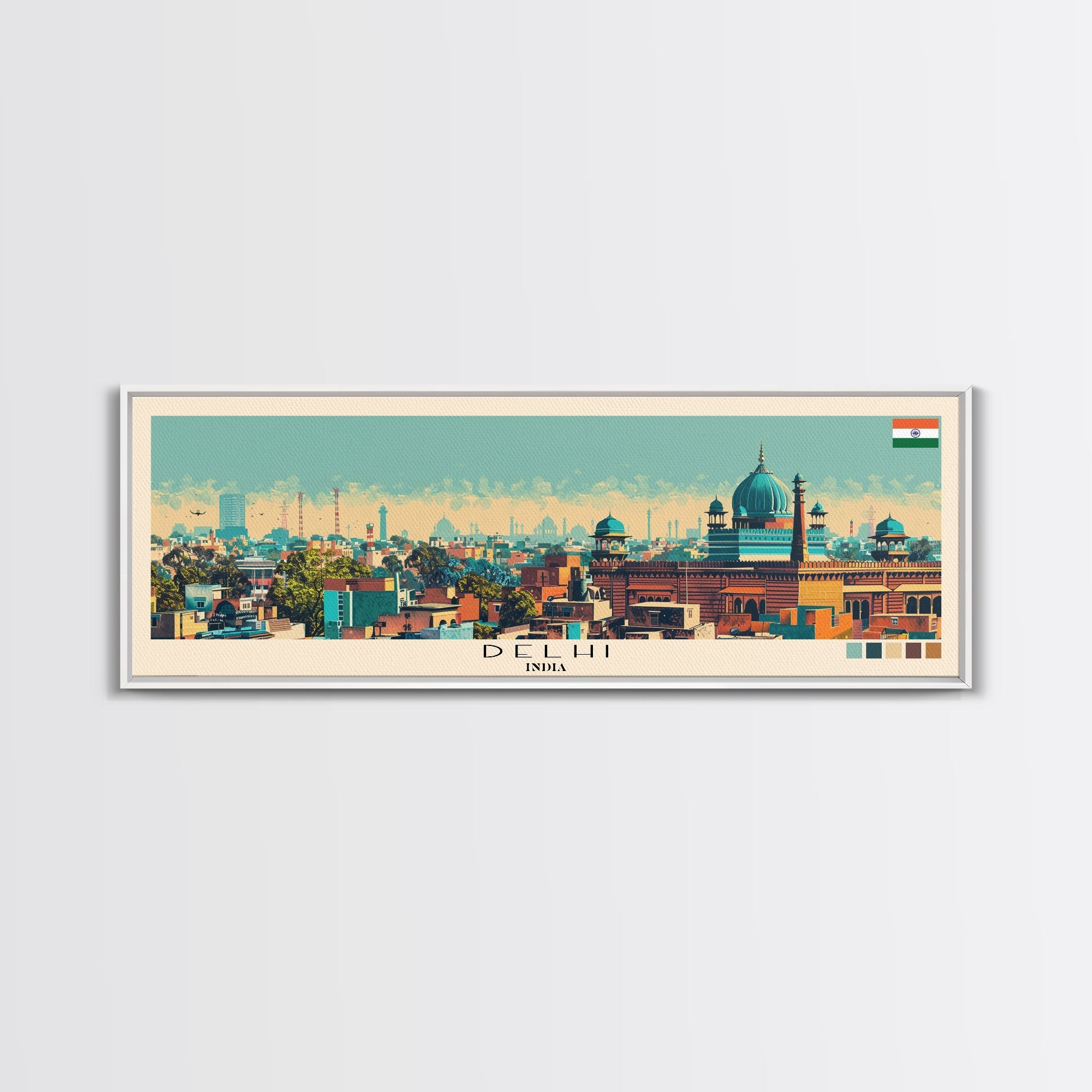 Delhi, India Panoramic Canvas Print, Delhi, India Painting, India Art, Delhi Travel Poster, Travel Art, Guest Room Painting