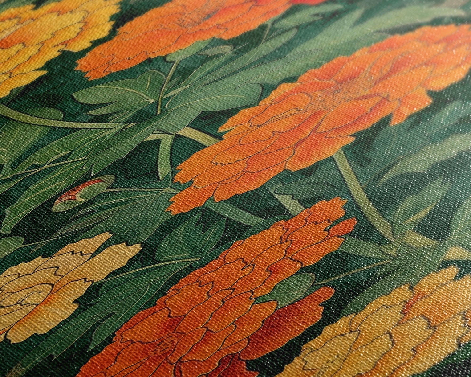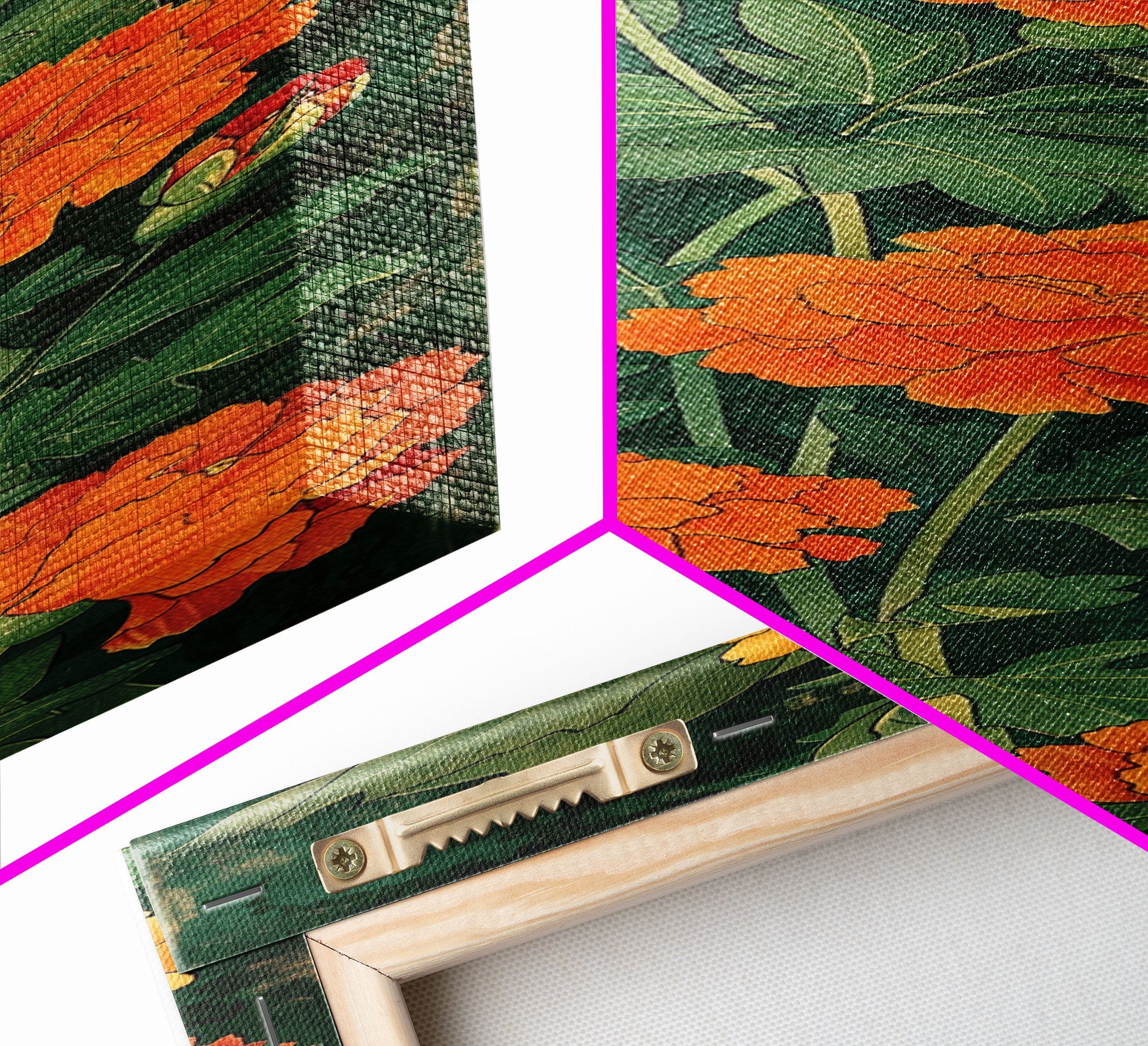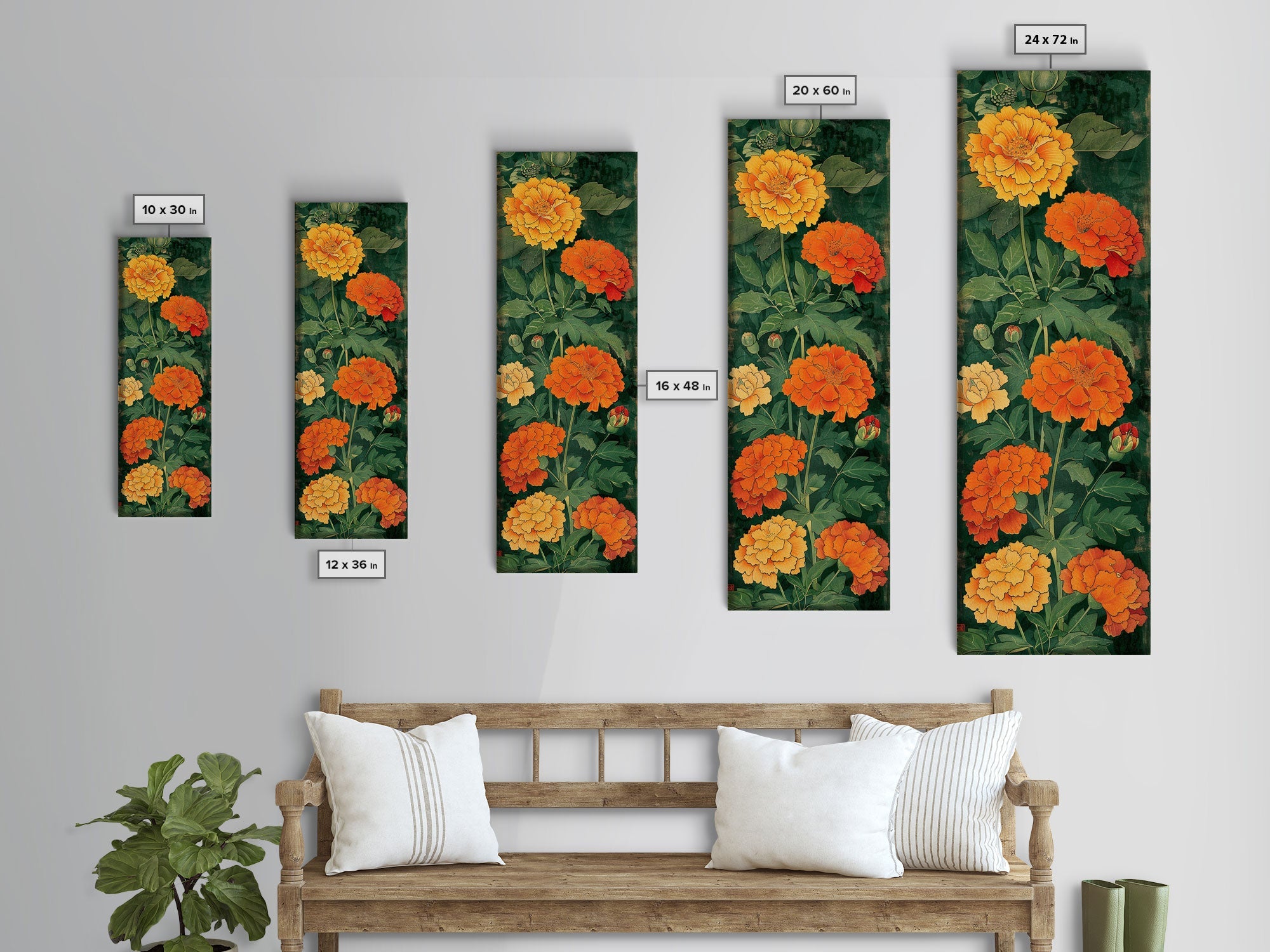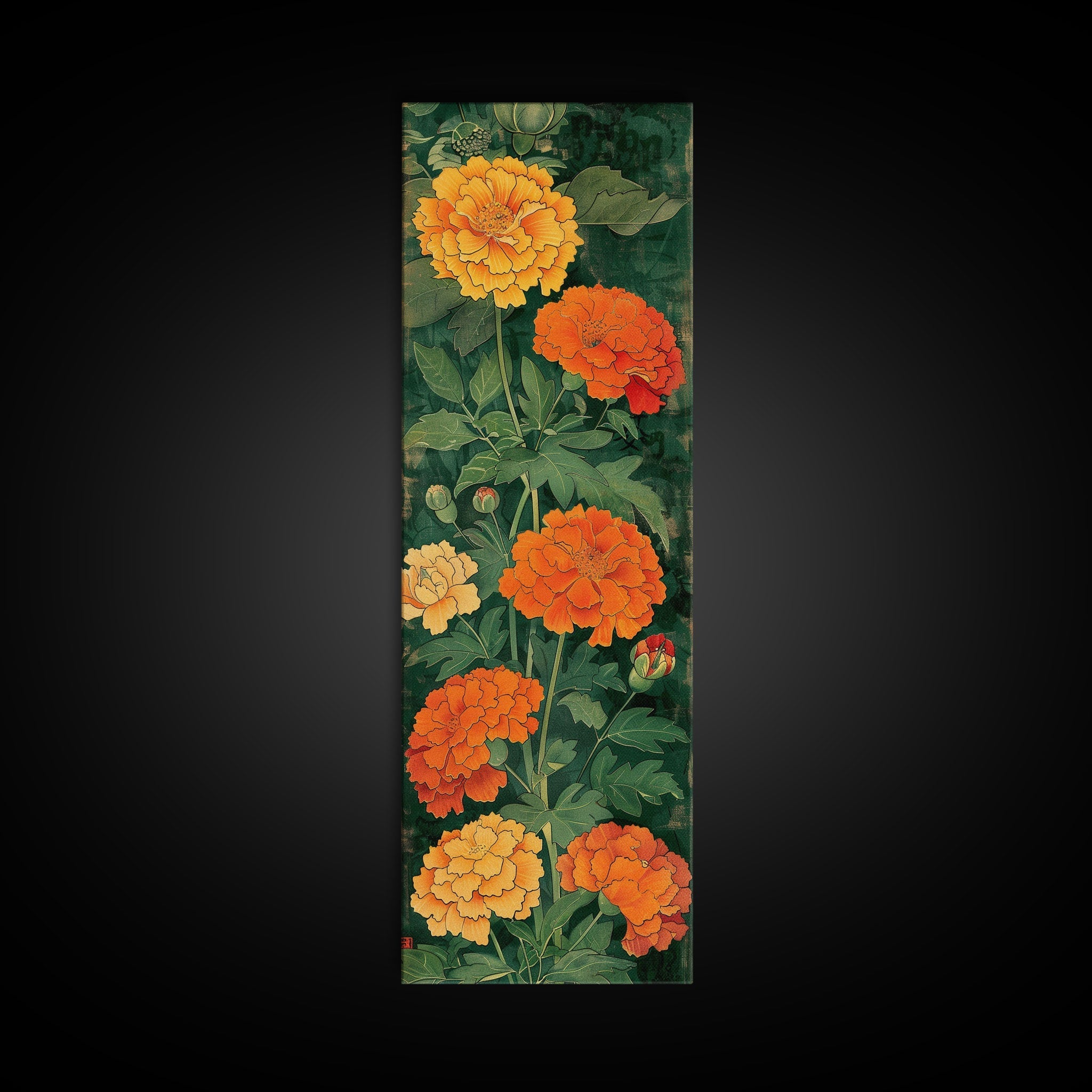 Delicate Pastel Flowers on Tall Stems Framed Canvas Print - Japanese Art Skinny Wall Décor
