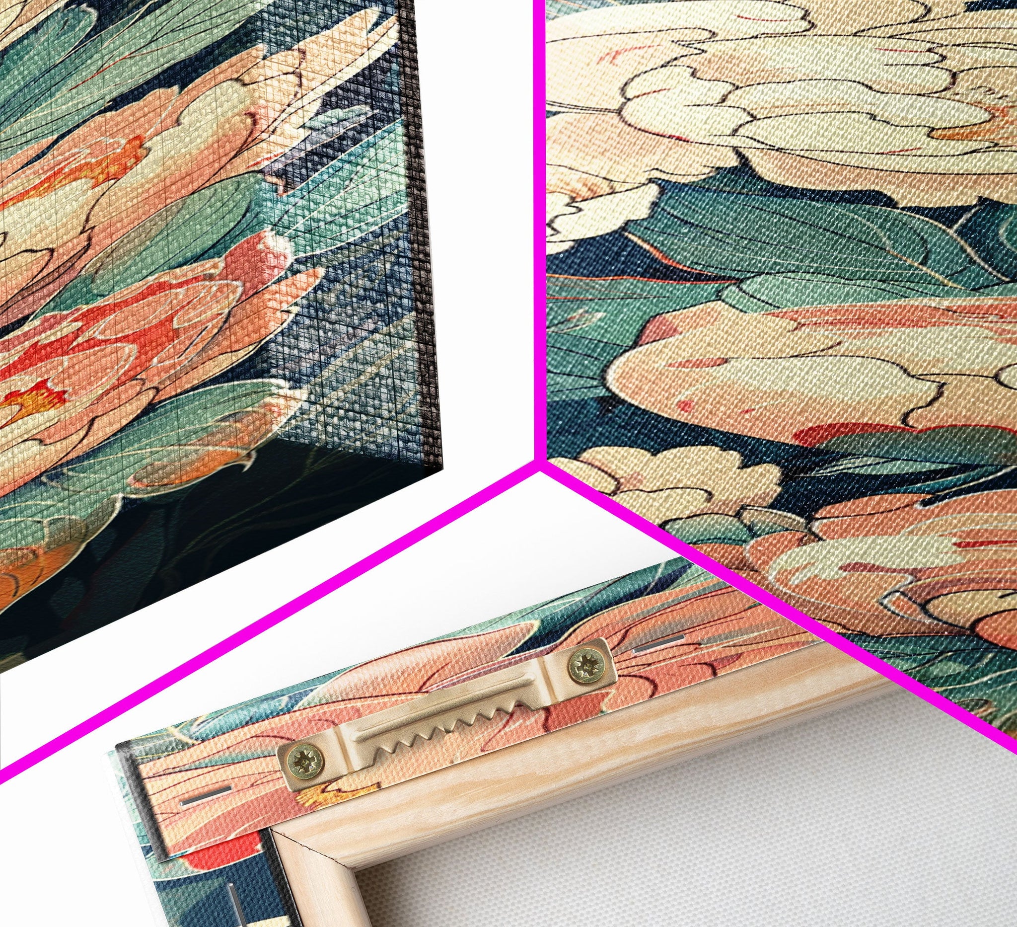 Delicate Peony Blossoms in Soft Pastel Hues on Japanese-Inspired Tall Vertical Canvas Print for Elegant Floral Decor